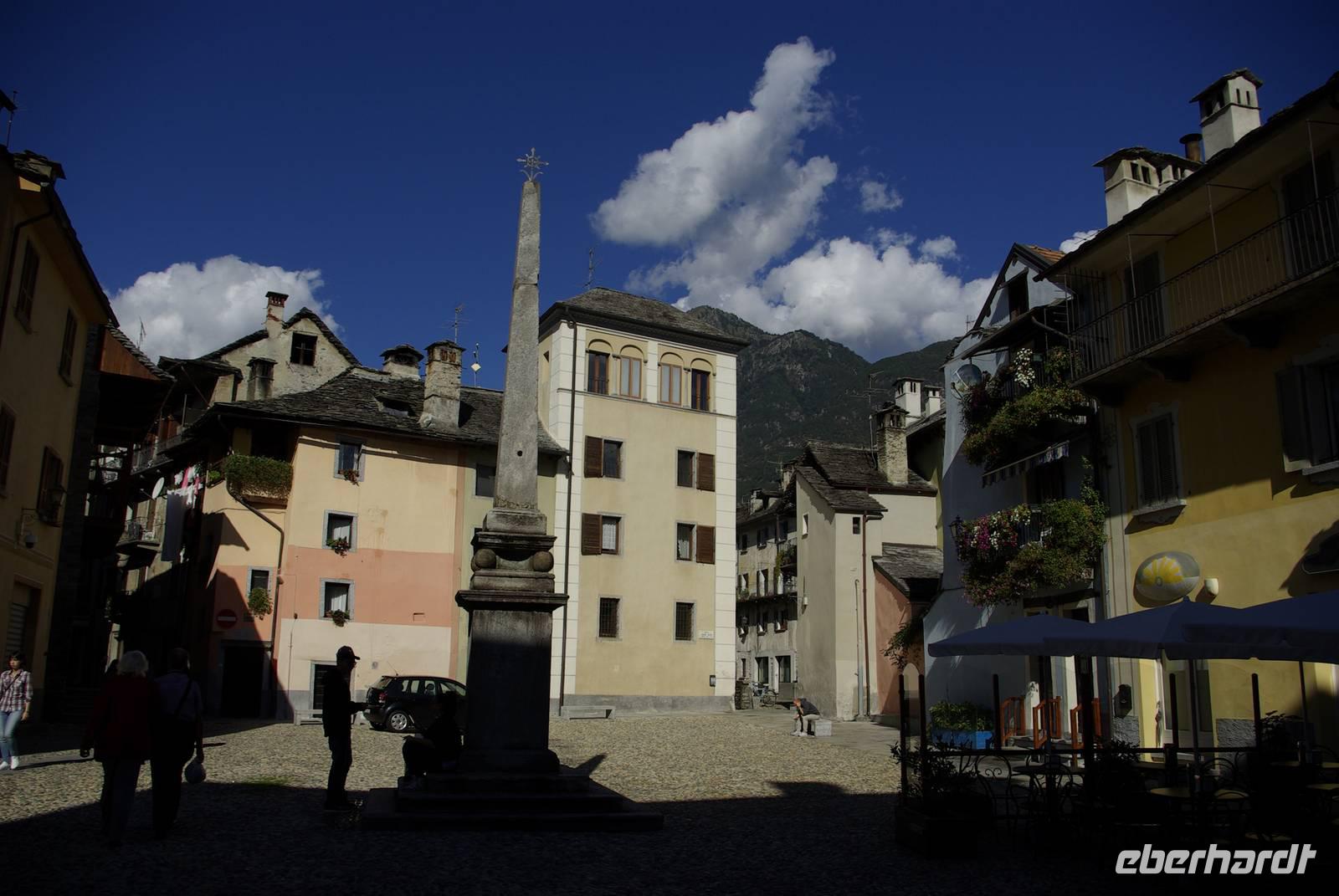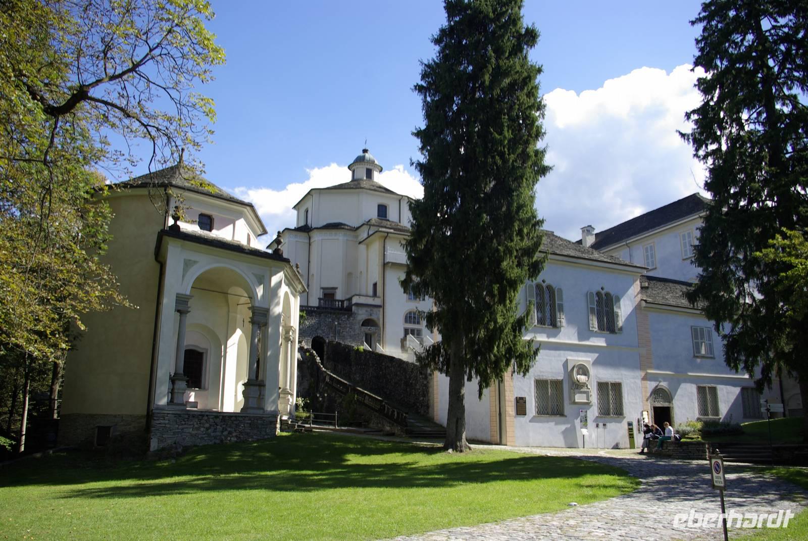 Ausgeruht fuhr uns der Bus entlang am Fluß Toce, der bei Verbania in den Lago Maggiore fließt, nach Domodossola, wo jeden Sonnabend ein weithin frequentierter Wochenmarkt stattfindet. Neben den landwirtschaftlichen Produkten lokaler Erzeuger, wie Wurst, Käse, Wein und Gemüse kann man auch Textilien und Dinge des täglichen Bedarfs kaufen. Nach einem ersten Bummel erklommen die meisten Gäste den am Stadtrand auf einem Berg gelegenen Sacro Monte di Domodossola, der als Teil der Sacri Monti im Piemont und in der Lombardei sind seit 2003 ein Bestandteil des UNESCO-Weltkulturerbes in Norditalien ist. In insgesamt 16 barocken Kapellen wird in überlebensgroßen Figuren der Leidensweg Christi dargestellt. Von der Terrasse des Klosters hatten wir einen herrlichen Blick auf die Stadt und in die Berge bis hin zum schneebedeckten Monte Rosa, dem zweithöchsten Berg der Alpen. Anschließend fuhren wir ins nahe gelegene Masera zur Firma Brencio, in der lokale Lebensmittel vermarktet werden. Nach einer kleinen Betriebsführung servierte man uns ein rustikales und äußerst leckeres Mahl mit einheimischem Schinken, Wurst, Käse und Wein, dazu eingelegte Früchte und Brot. Zur Verdauung gab es natürlich den obligaten Grappa. Anschließend konnte man in Stresa noch die Spätsommersonne genießen.