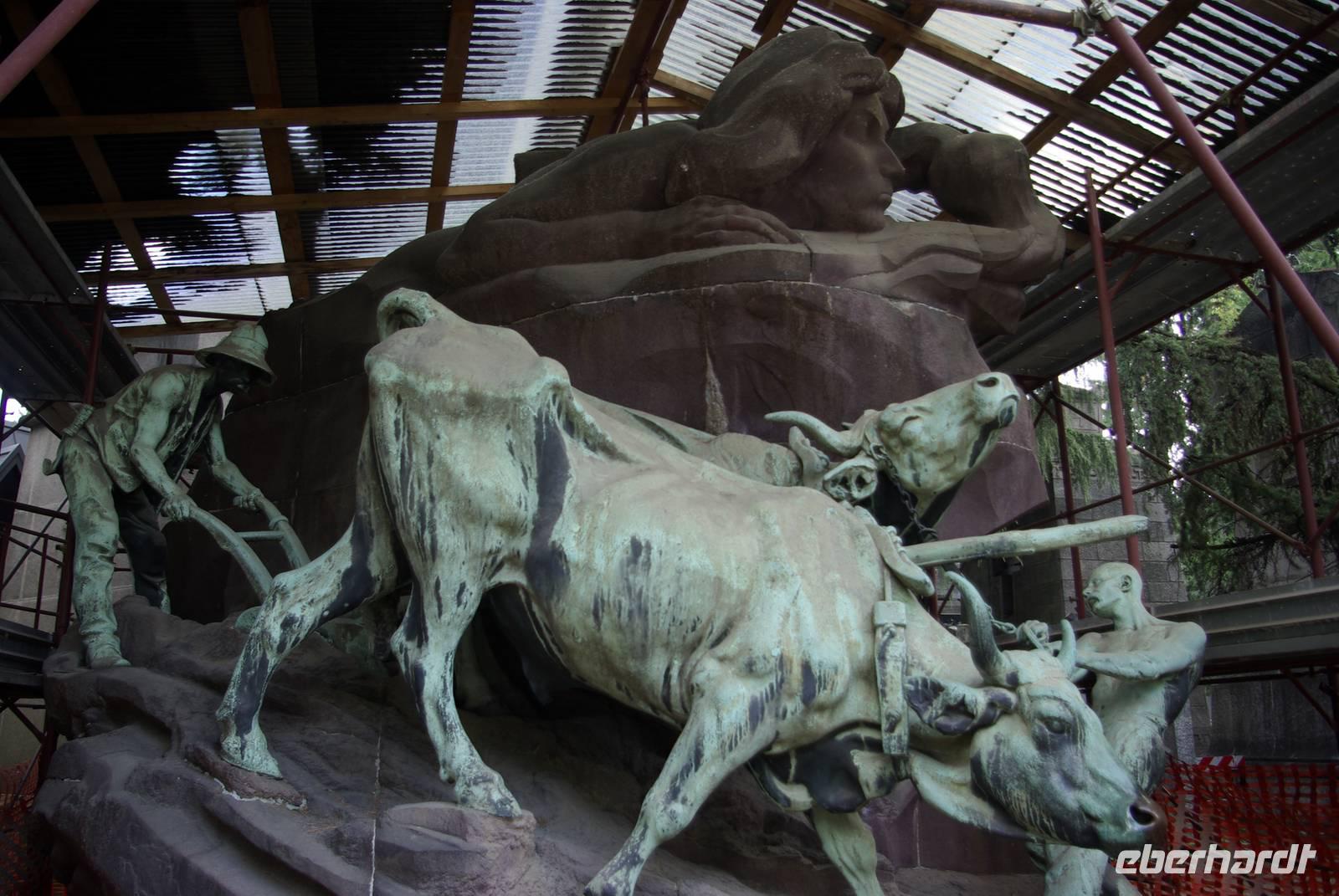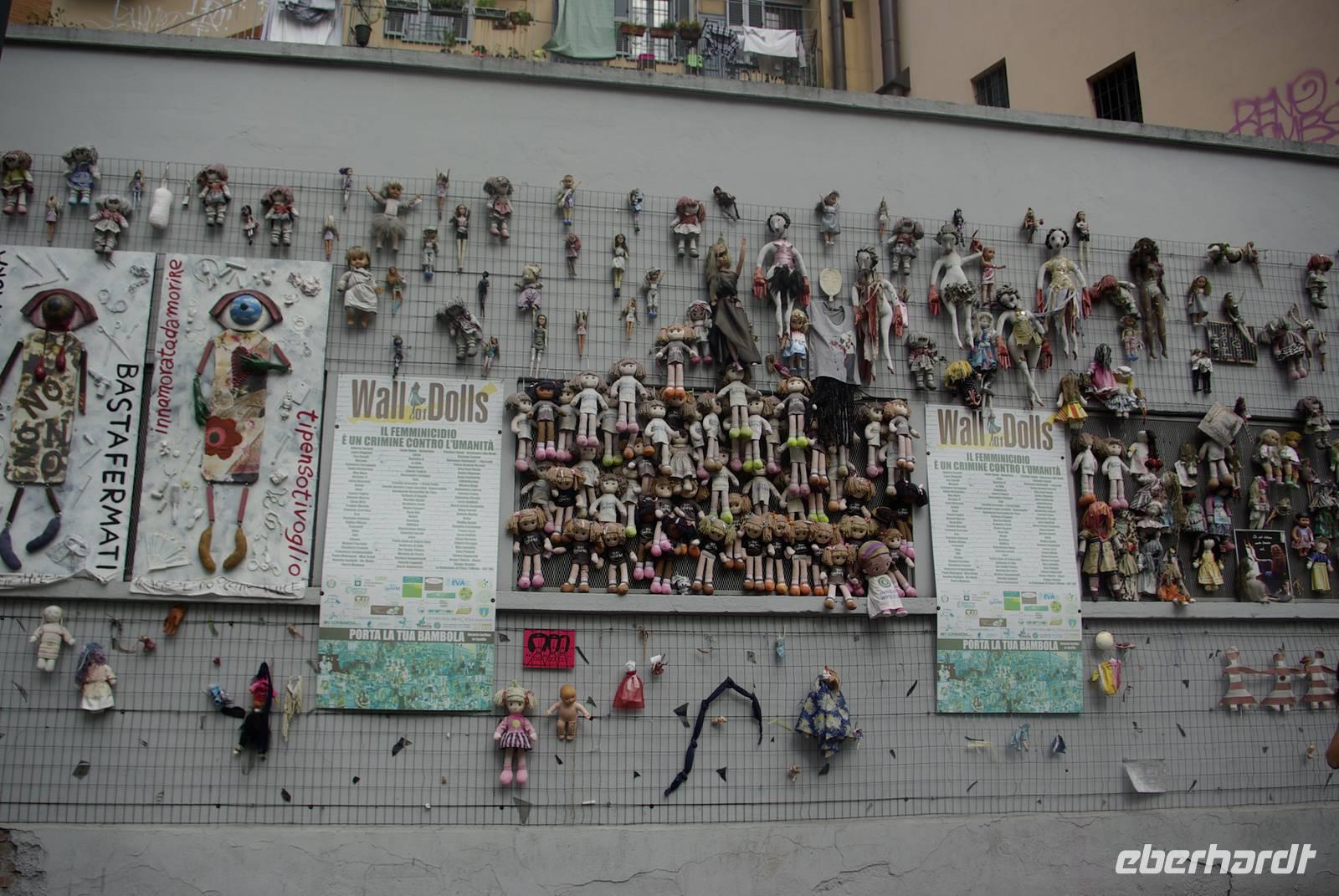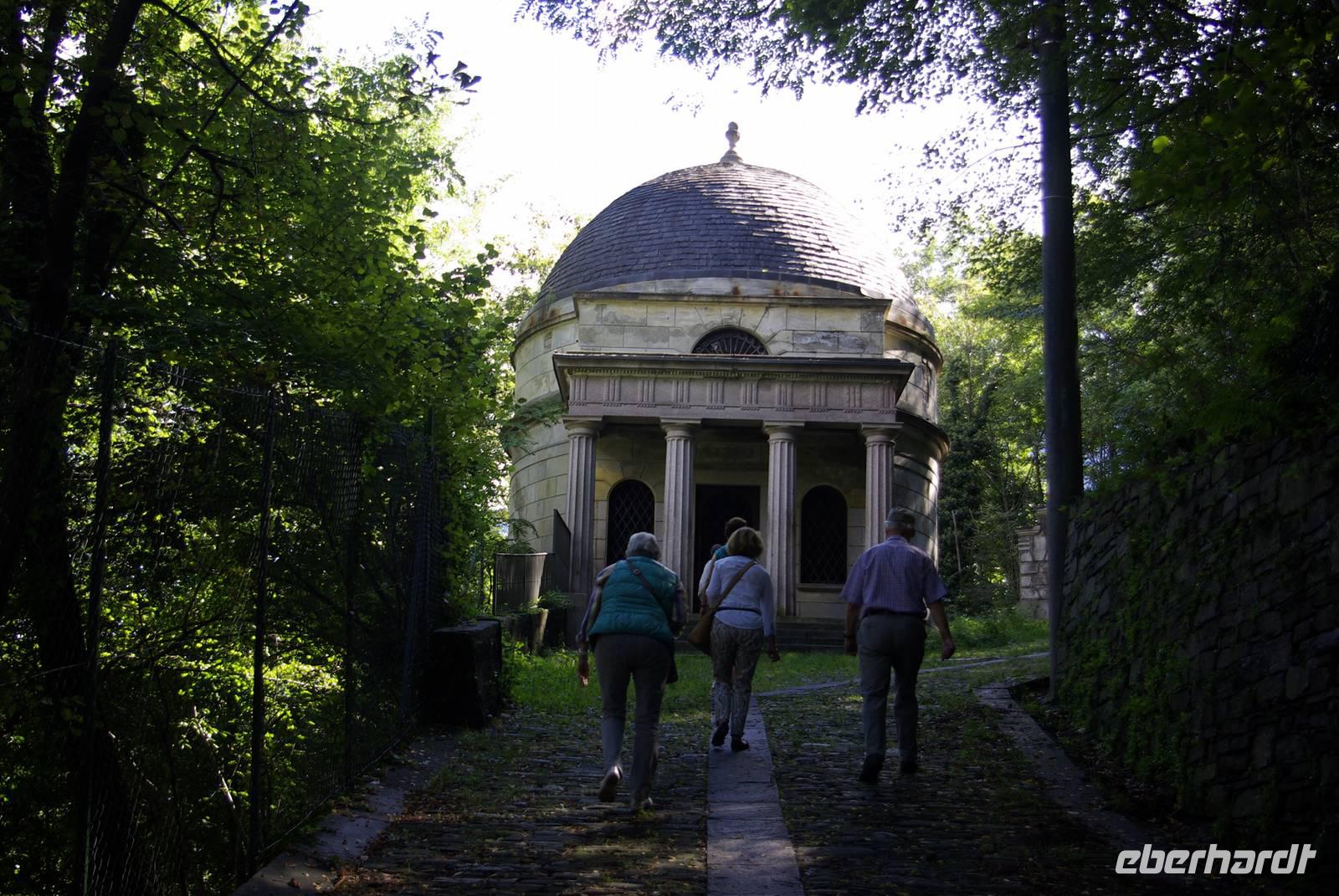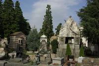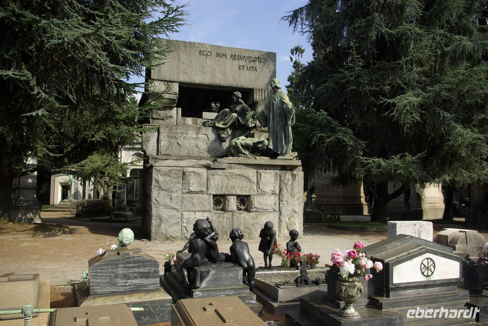 Noch im feuchten Nebel ging es um halbneun los nach Mailand, wo wir vor dem Monumentalfreidhof unsere Führerin Freda trafen, die uns zunächst mit der Geschichte der riesigen Anlage vertraut machte und uns zu schönen und interessanten Gräbern führte. Der Cimitero Monumentale von Mailand ist ein 1866 eröffneter Zentralfriedhof mit zahlreichen künstlerisch interessanten oder sonst berühmten Gräbern. Als Architekt fungierte Carlo Maciachini (1818-1899). Ein Ruhmestempel dient als Grabstätte für einige der berühmtesten Italiener. Von Interesse sind allerdings auch zahlreiche andere Grabstätten, in denen das Mailänder Großbürgertum sich gegenseitig an Prunk und Pomp zu übertreffen suchte. Zu nennen sind etwa die Gräber der Familien Falck, Bocconi, die Gründer des Warenhauskonzerns La Rinascente, sowie das der Familie Campari, die sich ein komplettes Abendmahl in Lebensgröße als Bronzeskulptur auf ihre Grabstätte stellen ließen. Ein weißer Jugendstiltempel aus Carraramarmor steht für die Familie des berühmten Dirigenten Arturo Toscanini, sowie sein Schwiegersohn Wladimir Horowitz. Für eine Zeit lang nahm die Grabstätte auch den Leichnam Giacomo Puccinis auf.