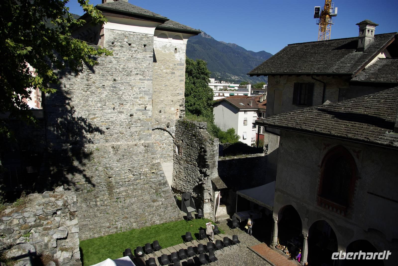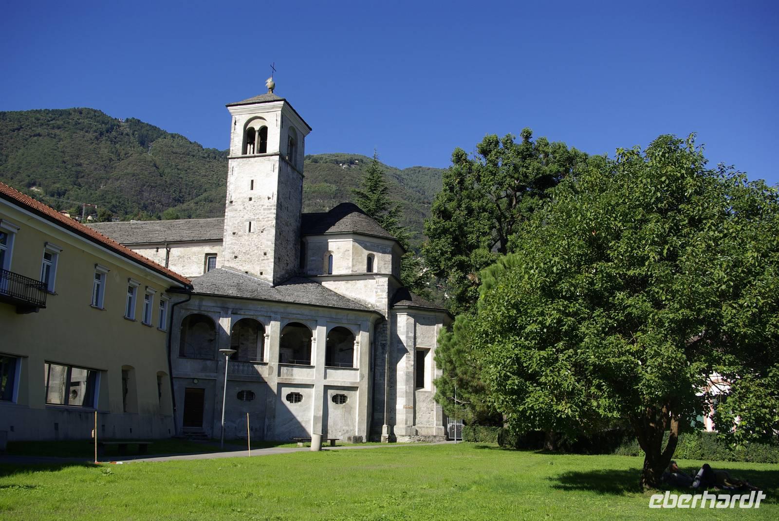 Am 16. Oktober 1925 wurden die Verträge von Locarno zwischen Deutschland, Belgien, Frankreich, Grossbritannien, Italien, Polen und der Tschechoslowakei geschlossen, die den völkerrechtlichen Status Deutschlands nach dem Ersten Weltkrieg neu regelten. Gemeinsam fuhren wir mit dem Bus zum Bahnhof und schlenderten zur nahe gelegenen Standseilbahn, die uns zur Wallfahrtskirche Madonna del Sasso brachte, die auf einem Felsen oberhalb der Stadt liegt. 1480 soll dort ein Franziskanermönch aus Ivrea eine Muttergotteserscheinung gehabt haben, die den Bau von Kapellen und einen Pilgertourismus auslöste. Wie in Domodossola schuf man auch hier Skulpturenensembles, die zum Beispiel ein Abendmahl mit überlebensgroßen Figuren zeigen. Zudem bietet der Berg ein tolles Panorama. Nach der Rückfahrt ging die Gruppe gemeinsam bis zur Piazza Grande, dem Hauptplatz von Locarno. Die meisten Mitreisenden besichtigten anschließend die nahe gelegene Franziskanerkirche, sowie die Santa Maria Assunta mit der imposanten Christophorusfigur am Eingang. Im ehemaligen Schloss der Mailänder Visconti konnte man eine Dauerausstellung zur lokalen Archäologie ansehen oder einfach viele der burgartig angelegten Gemächer erklettern. Gleich hinter dem Busparkplatz am Bahnhof war noch ein Kleinod der Romanik zu finden, die Chiesa San Vittore aus dem 11. Jahrhundert. Ein Juwel die Krypta mit gut erhaltenen Kapitellen, sowie mittelalterliche Fresken.