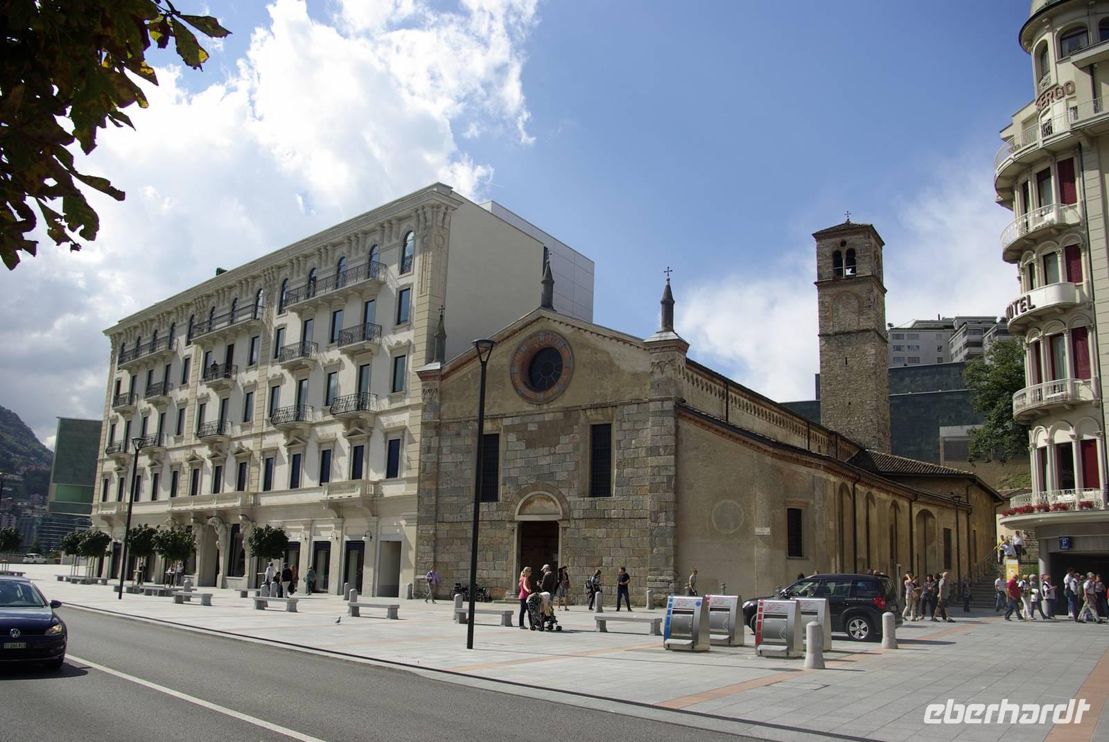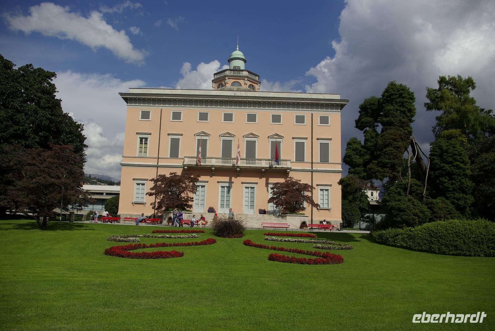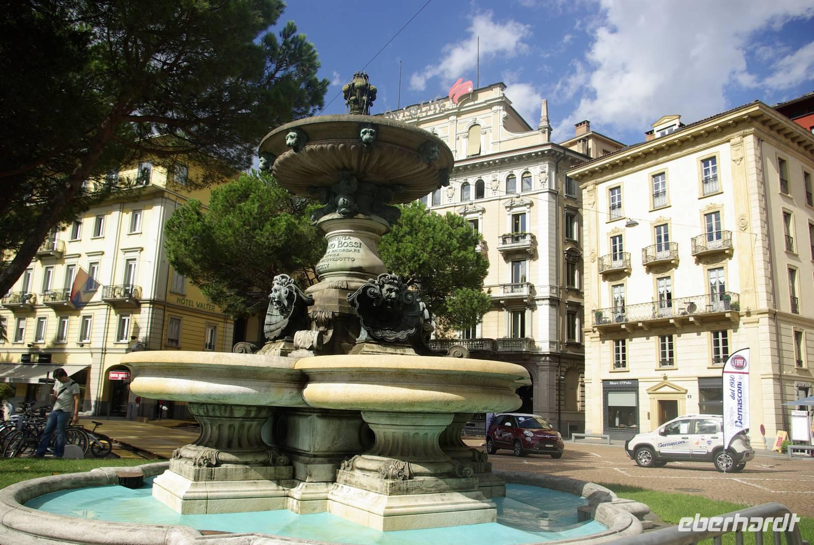 Nach dem Frühstück fuhren wir am Nordwestufer des Lago Maggiore entlang auf die Schweizer Seeseite ins Tessin und über Locarno nach Osten zum Luganer See nach Lugano. Die Stadt ist umgeben von den drei Aussichtsbergen Monte Brè (925 m) im Osten, Monte San Salvatore (912 m) im Westen und dem Sighignola (1314 m) am gegenüberliegenden Seeufer, dessen Gipfel bereits auf italienischem Boden liegt. Im Mittelalter war Lugano von Konflikten zwischen Como und Mailand betroffen, die oft auf Schlachtfeldern auf dem Gebiet des heutigen Kantons Tessin ausgetragen wurden. In der zweiten Hälfte des vierzehnten Jahrhunderts gelangte die Stadt unter die Herrschaft der Mailänder Visconti. Später wurde sie von französischen Söldnern besetzt, die 1513 ihrerseits von den Eidgenossen vertrieben wurden; seither stand Lugano unter eidgenössischer Herrschaft. Mit dem Einrücken französischer Revolutionstruppen 1798 in das Gebiet der Eidgenossenschaft endete der Untertanenstatus des Tessins, und Lugano wurde für ein paar Jahre zum Hauptort des Kantons Lugano der Helvetischen Republik. 1803 kam Lugano zum Kanton Tessin, dessen Hauptort bis 1878 alle sechs Jahre zwischen Bellinzona, Locarno und Lugano wechselte.
