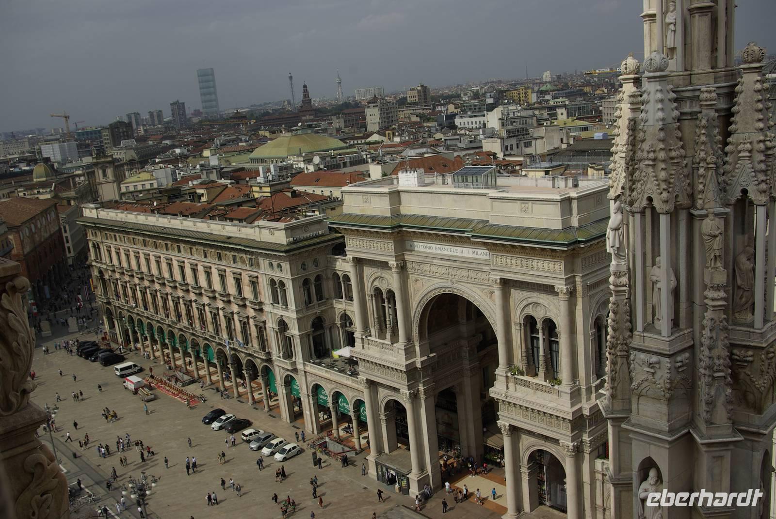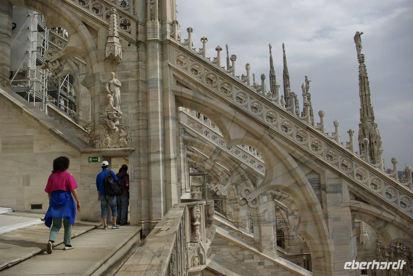 Eine Besonderheit ist das begehbare Dach, von dem aus sich ein überwältigender Ausblick auf die Details der Steinmetzkunst des Domes bietet und man das Panorama der gesamten Stadt sowie an klaren Tagen bis zu den Alpen genießen kann. In der Freizeit hatte jeder Gelegenheit, Dom und Altstadt nach seinen Neigungen zu erkunden. Anschließend traf man sich nahe der Scala am Bus.