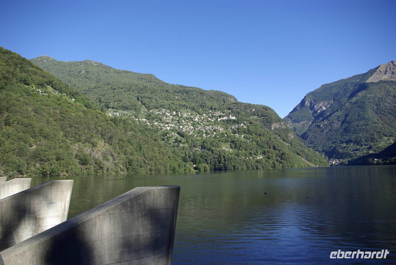 Der zur Elektrizitätserzeugung genutzter Speichersee befindet sich am Ausgang des Tals bei der Gemeinde Gordola. Zwei Kilometer flussabwärts mündet die Verzasca in den Lago Maggiore. Der See wird aufgestaut durch den 1965 fertiggestellten Verzasca- oder Locarnodamm. Mit einer Höhe von 220 Metern ist hier die vierthöchste Staumauer der Schweiz. Mehrere Actionfilme wurden an der Staumauer gedreht, so der James Bond- Krimi „Golden Eye". Bungeespringer nutzen den Damm für ihren adrenalinintensiven Sport.