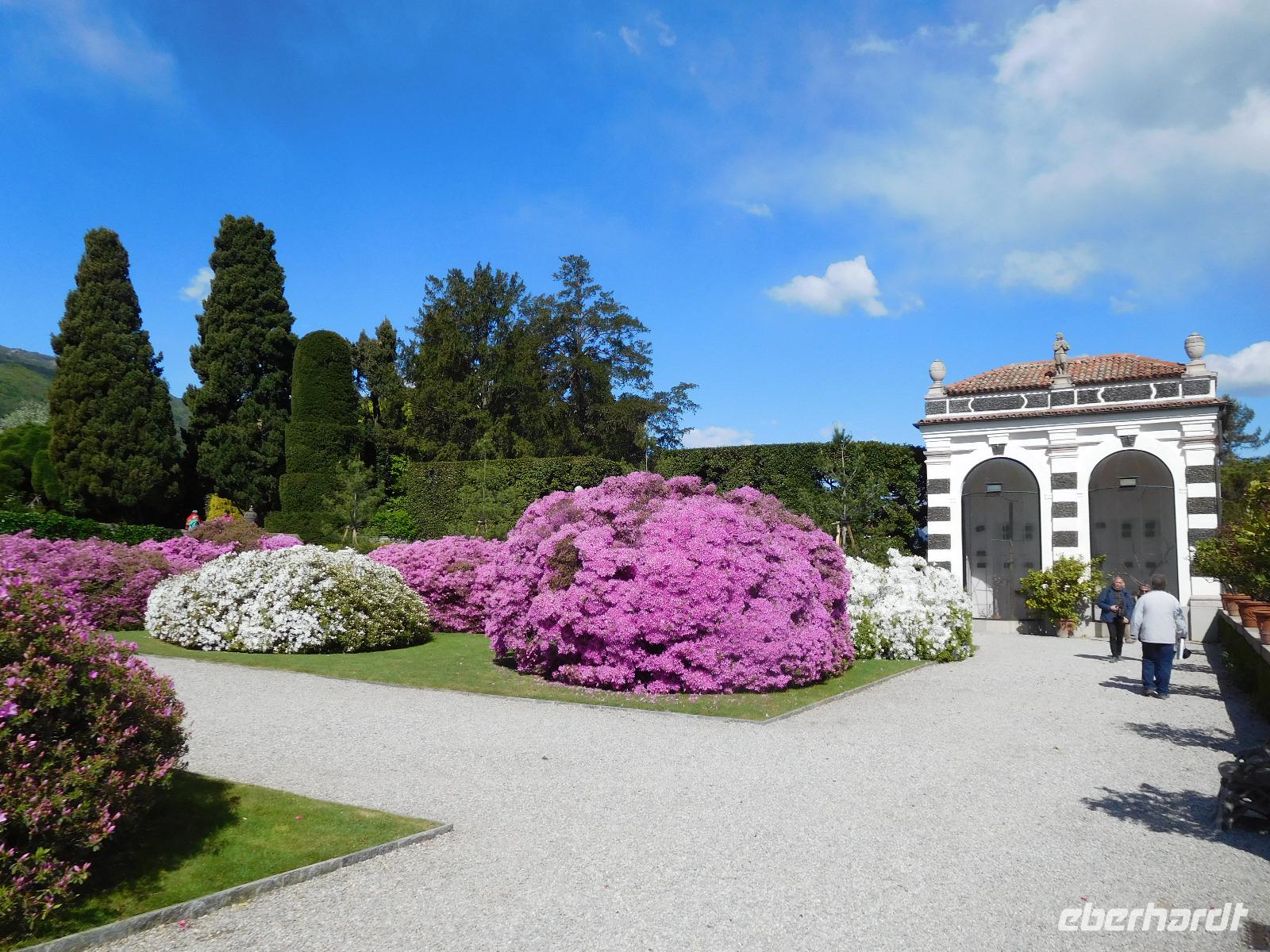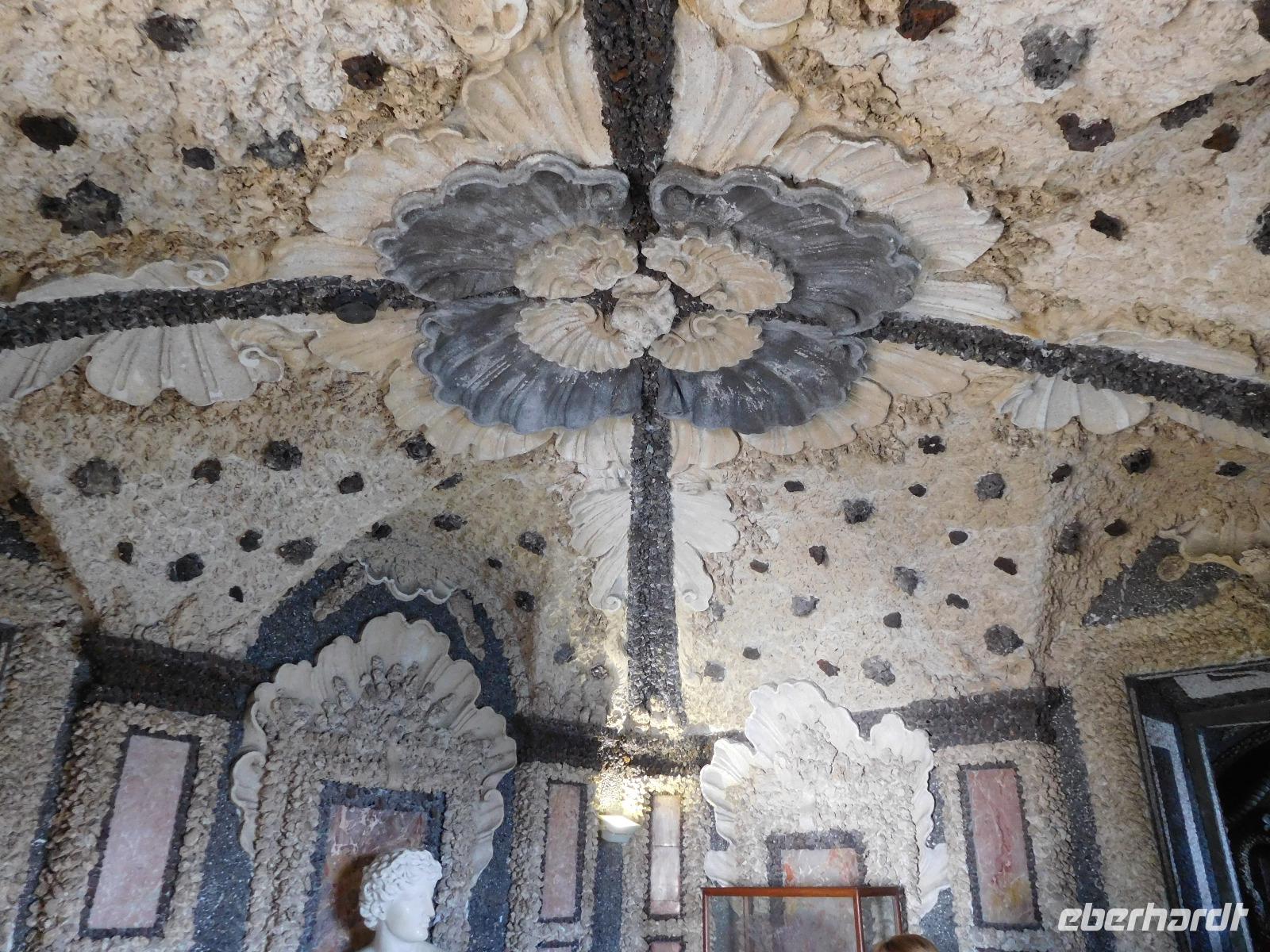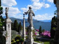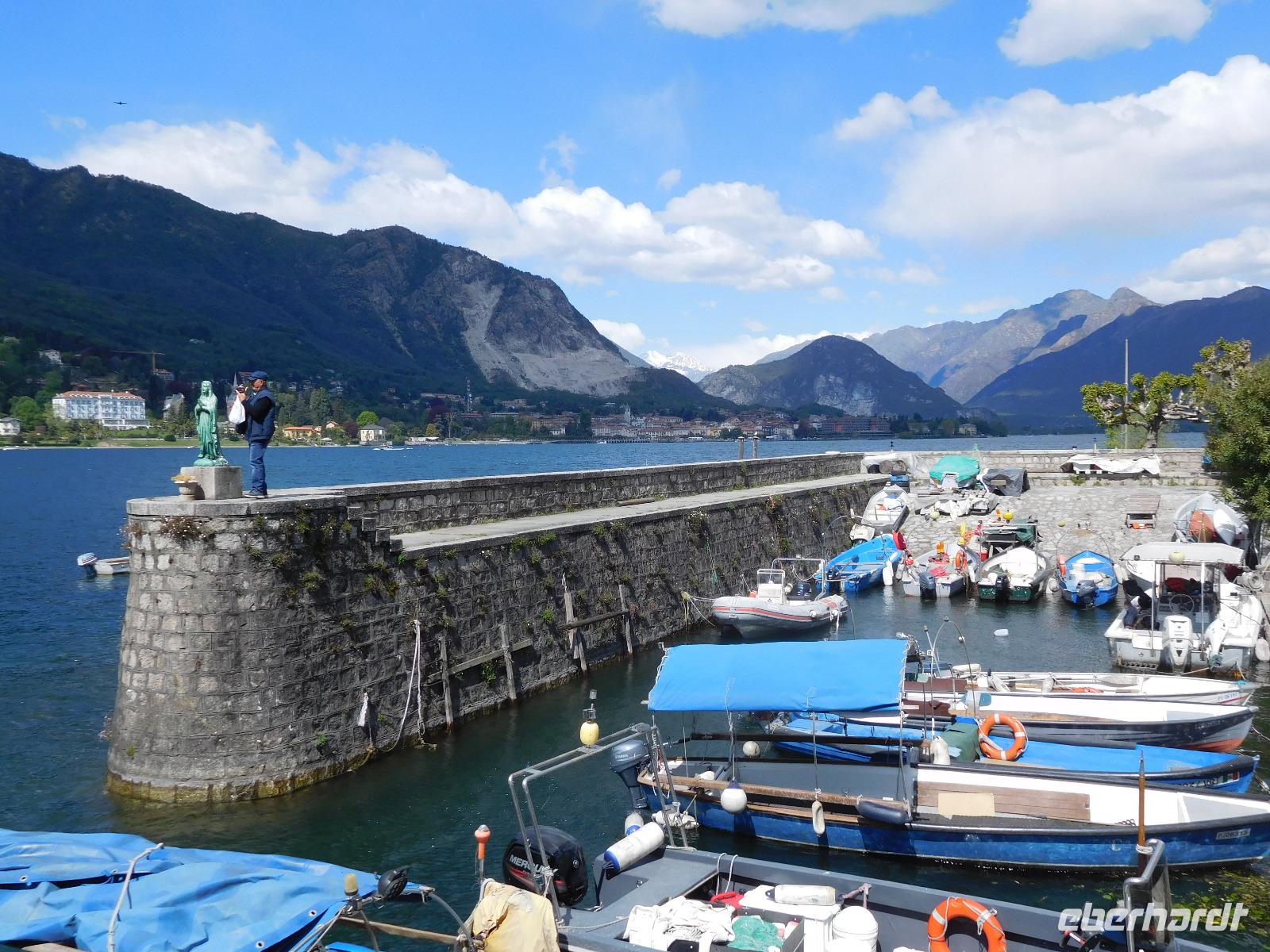 Nach dem Frühstück spazierten alle die paar Schritte zur Pizza di Lido hinter dem Hotel, wo bereits ein Boot wartete, um uns auf die Isola Bella zu bringen.. Sie gehört zu den Borromäischen Inseln, einer Gruppe von fünf Binneninseln im italienischen Teil des Lago Maggiore. Sie liegen im Golf von Verbania, zwischen Verbania im Norden und Stresa im Süden und haben eine Gesamtfläche von 18 Hektar. Ihr Name leitet sich von der Familie Borromeo ab, in deren Besitz die Inseln seit dem zwölften Jahrhundert waren. Die Isola Bella, benannt nach der Comtesse Isabella Borromeo, war ursprünglich ein hauptsächlich unfruchtbarer Felsen. Zwischen 1650 und 1671 baute Vitaliano Borromeo auf der Insel einen attraktiven Sommerpalast. Er ließ große Mengen Erde auf die Insel bringen, um ein pyramidenartiges System von zehn Terrassen für den Garten zu errichten. Das unvollendete Gebäude beherbergt Gemälde von lombardischen Künstlern und flämische Teppiche. Von einem prächtigen Treppenhaus gelangt man in den Raum der Medaillen, der nach den runden Bildern an der Decke benannt ist. Dann folgen das Musikzimmer, ein Konferenzraum und das prächtige napoleonische Zimmer. Dort hat Napoleon eine Nacht verbracht. Ebenfalls sehenswert ist der große Bankettsaal. Auch die „Grotten" des Schlosses sind berühmt für die vielen Steine und die ausgestellten Korallen. Eine Führung machte uns mit den Details der Anlage vertraut und anschließend konnte man individuell das Gartenreich erkunden. Ußer einem hübschen Kirchlein bietet die Insel pittoreske Gassen und viele kleine Bars und Gaststätten und genau das nutzten wir zur Mittagspause.