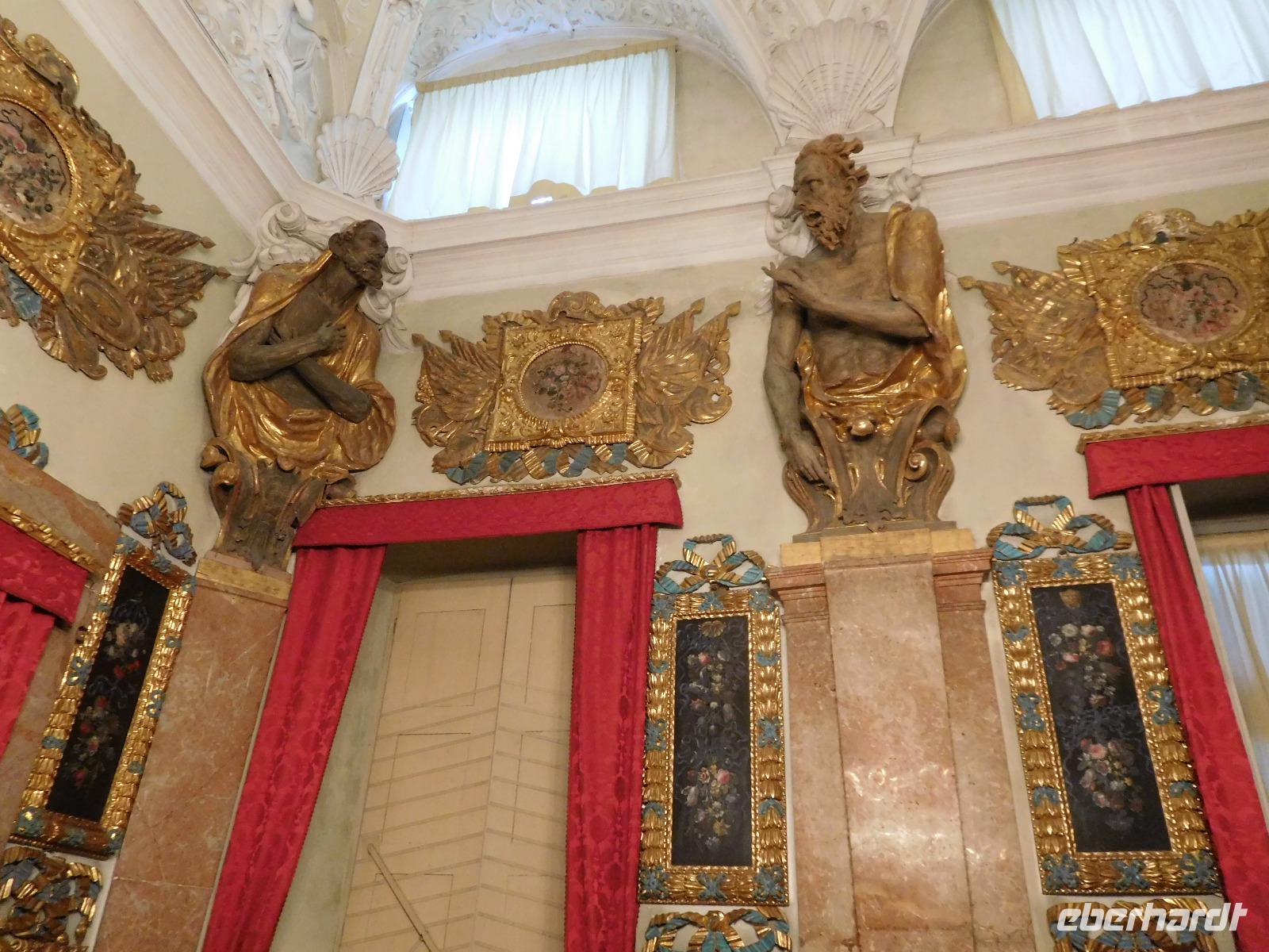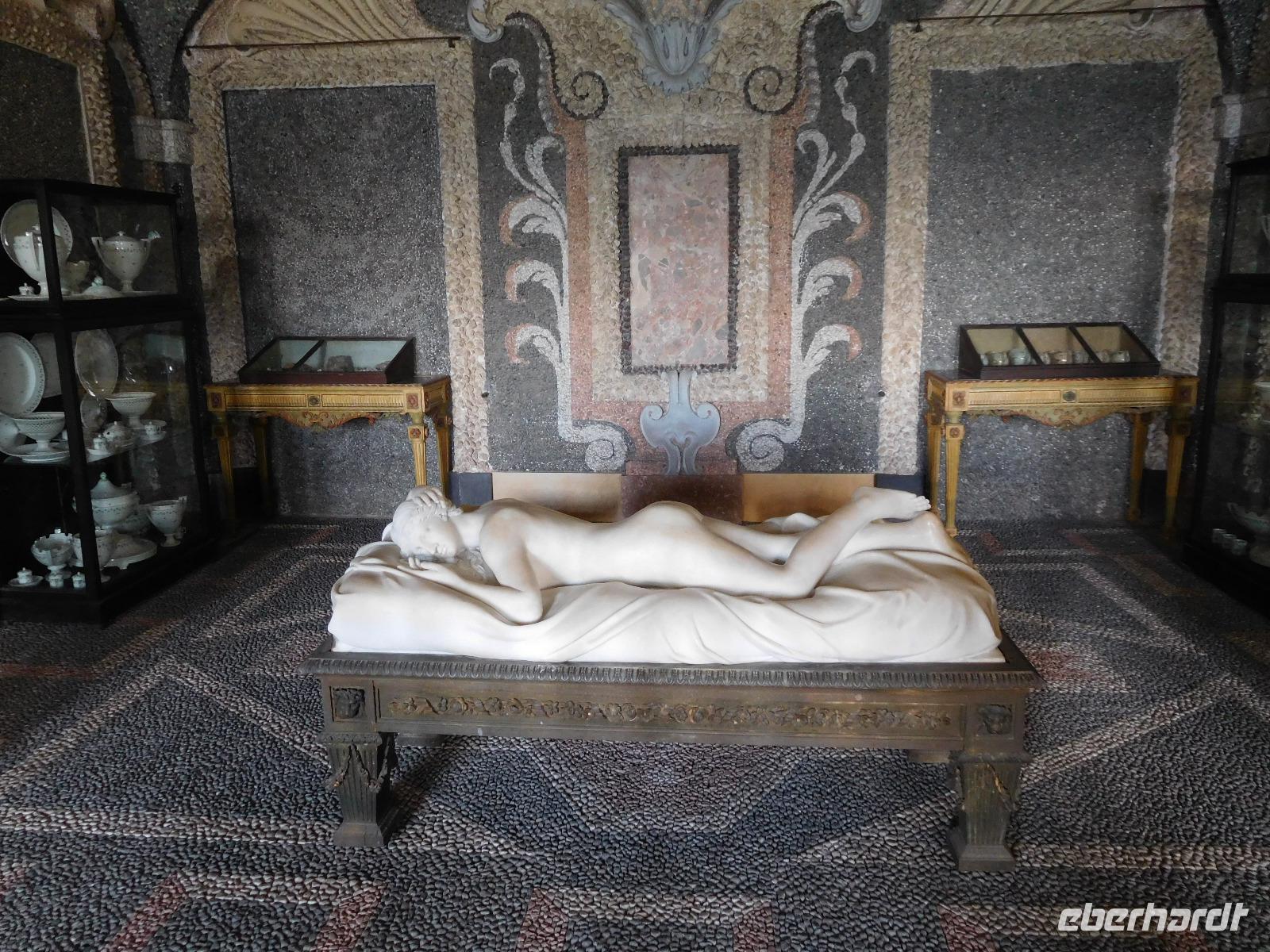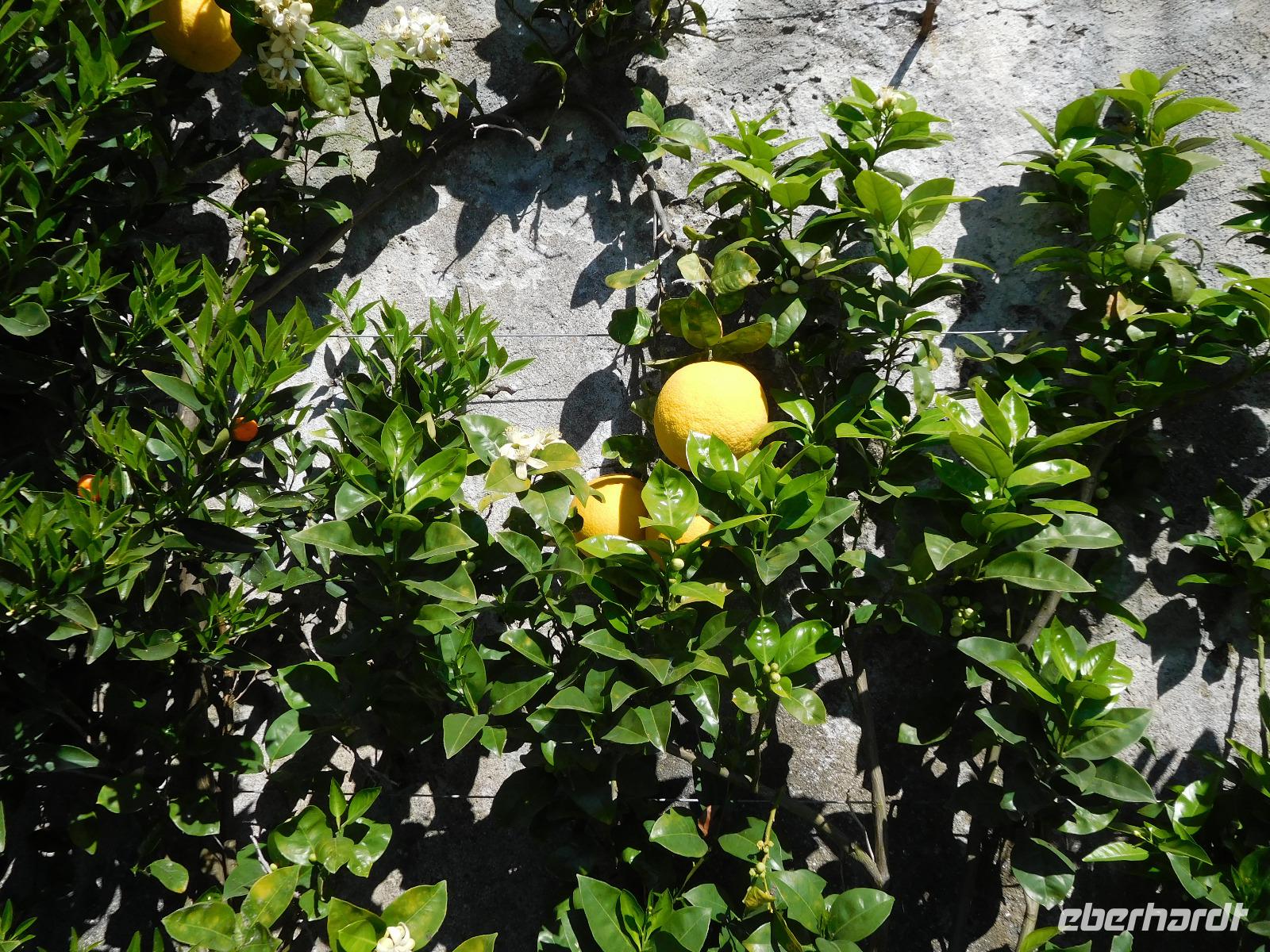 Nach dem Frühstück spazierten alle die paar Schritte zur Pizza di Lido hinter dem Hotel, wo bereits ein Boot wartete, um uns auf die Isola Bella zu bringen.. Sie gehört zu den Borromäischen Inseln, einer Gruppe von fünf Binneninseln im italienischen Teil des Lago Maggiore. Sie liegen im Golf von Verbania, zwischen Verbania im Norden und Stresa im Süden und haben eine Gesamtfläche von 18 Hektar. Ihr Name leitet sich von der Familie Borromeo ab, in deren Besitz die Inseln seit dem zwölften Jahrhundert waren. Die Isola Bella, benannt nach der Comtesse Isabella Borromeo, war ursprünglich ein hauptsächlich unfruchtbarer Felsen. Zwischen 1650 und 1671 baute Vitaliano Borromeo auf der Insel einen attraktiven Sommerpalast. Er ließ große Mengen Erde auf die Insel bringen, um ein pyramidenartiges System von zehn Terrassen für den Garten zu errichten. Das unvollendete Gebäude beherbergt Gemälde von lombardischen Künstlern und flämische Teppiche. Von einem prächtigen Treppenhaus gelangt man in den Raum der Medaillen, der nach den runden Bildern an der Decke benannt ist. Dann folgen das Musikzimmer, ein Konferenzraum und das prächtige napoleonische Zimmer. Dort hat Napoleon eine Nacht verbracht. Ebenfalls sehenswert ist der große Bankettsaal. Auch die „Grotten" des Schlosses sind berühmt für die vielen Steine und die ausgestellten Korallen. Eine Führung machte uns mit den Details der Anlage vertraut und anschließend konnte man individuell das Gartenreich erkunden. Ußer einem hübschen Kirchlein bietet die Insel pittoreske Gassen und viele kleine Bars und Gaststätten und genau das nutzten wir zur Mittagspause.