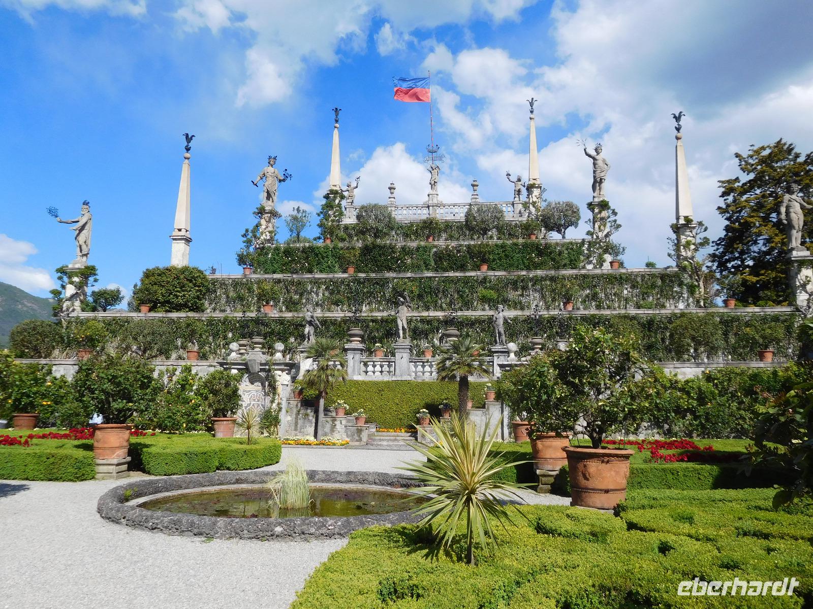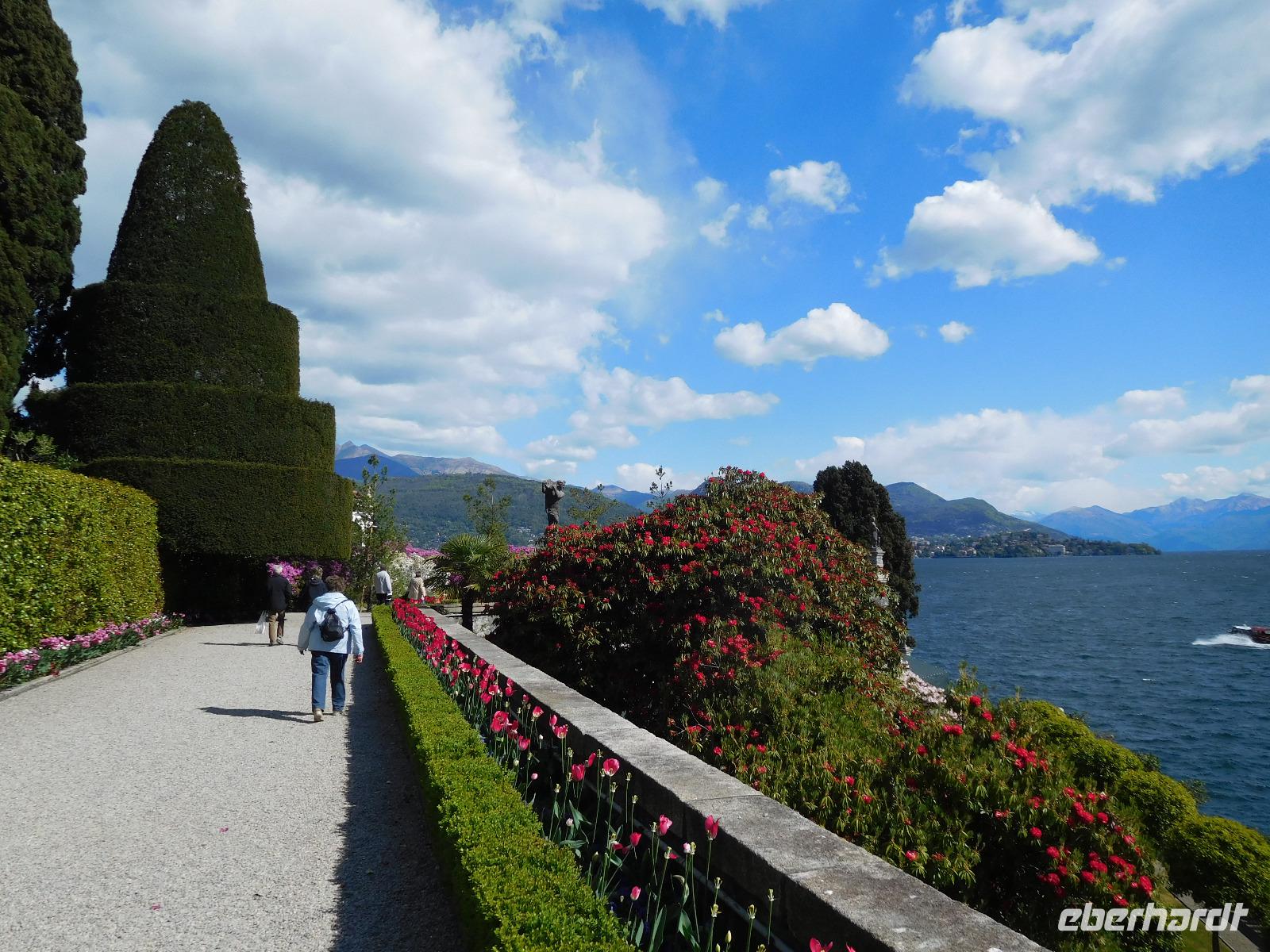 Ab 1501 begann Lancilotto Borromeo, einer der fünf Söhne von Giovanni III Borromeo und Cleofe Pio di Carpi, auf der Insel Zitrusfrüchte zu züchten, die er zusammen mit einem Gärtner aus Ligurien kommen ließ. Er befahl außerdem den Bau eines Herrenhauses, das zum Kern der Palastanlagen werden sollte, die ab 1580 unter Renato I. Borromeo im Renaissancestil erweitert wurden. Ab etwa 1823 bis 1825 wandelten Giacomo und Francesco Rovelli, Gartenbauer aus Monza, die kultivierten Teile der Insel in einen Landschaftsgarten im Englischen Stil um und bewahrten damit auch den ursprünglich erhaltenen Wald im Nordwesten der Insel. Dies geschah auf Anregung der Grafen Giberto V Borromeo und Vitaliano IX Borromeo Arese. Der Englische Garten auf der Isola Madre gilt als herausragendes Beispiel von Gartenbaukunst in Italien. Nach einer humorvollen Palastführung konnte man den Garten mit seinen seltenen Gehölzen und den exotischen Vögeln noch kurz individuell erkunden, bevor das Boot wieder zurück nach Stresa fuhr.