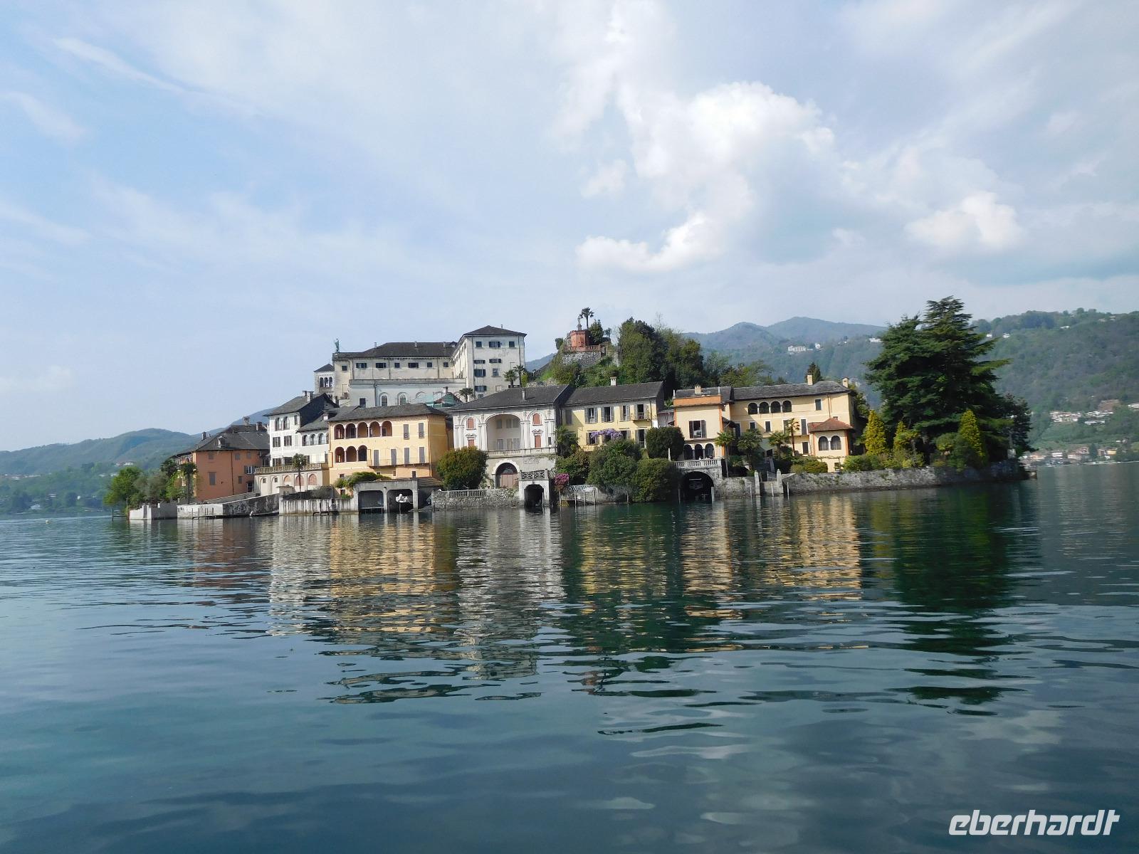 Am Karsamstag ging es nach dem Frühstück zum nahe gelegenen Ortasee. Er bedeckt bei 13,4 km Länge und 2,5 km Breite eine Fläche von 18,136 km². Gemessen an seinem Volumen von 1,286×106 m³ und einer größten Tiefe von 143 Metern ist er in beiden Kategorien der siebtgrößte See Italiens. In der Mitte des Sees liegt die Isola San Giulio, benannt nach dem griechischen Diakon Julius, der hier am Ende des 4. Jahrhunderts lebte und eine kleine Kirche errichtete. Die Insel ist an der längsten Stelle 275 Meter lang, an der breitesten Stelle 143 Meter breit und hat einen Umfang von etwa 700 Meter. Im Mittelalter beherbergte sie vermutlich einen Sitz der Bischöfe von Novara und war als Festung ausgebaut. Auf der Insel thronen die Basilica di San Giulio, ein Nonnenkloster, die Abtei Mater Ecclesiae und ein Glockenturm.