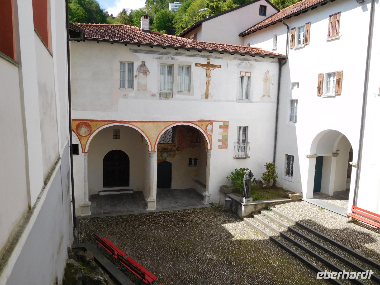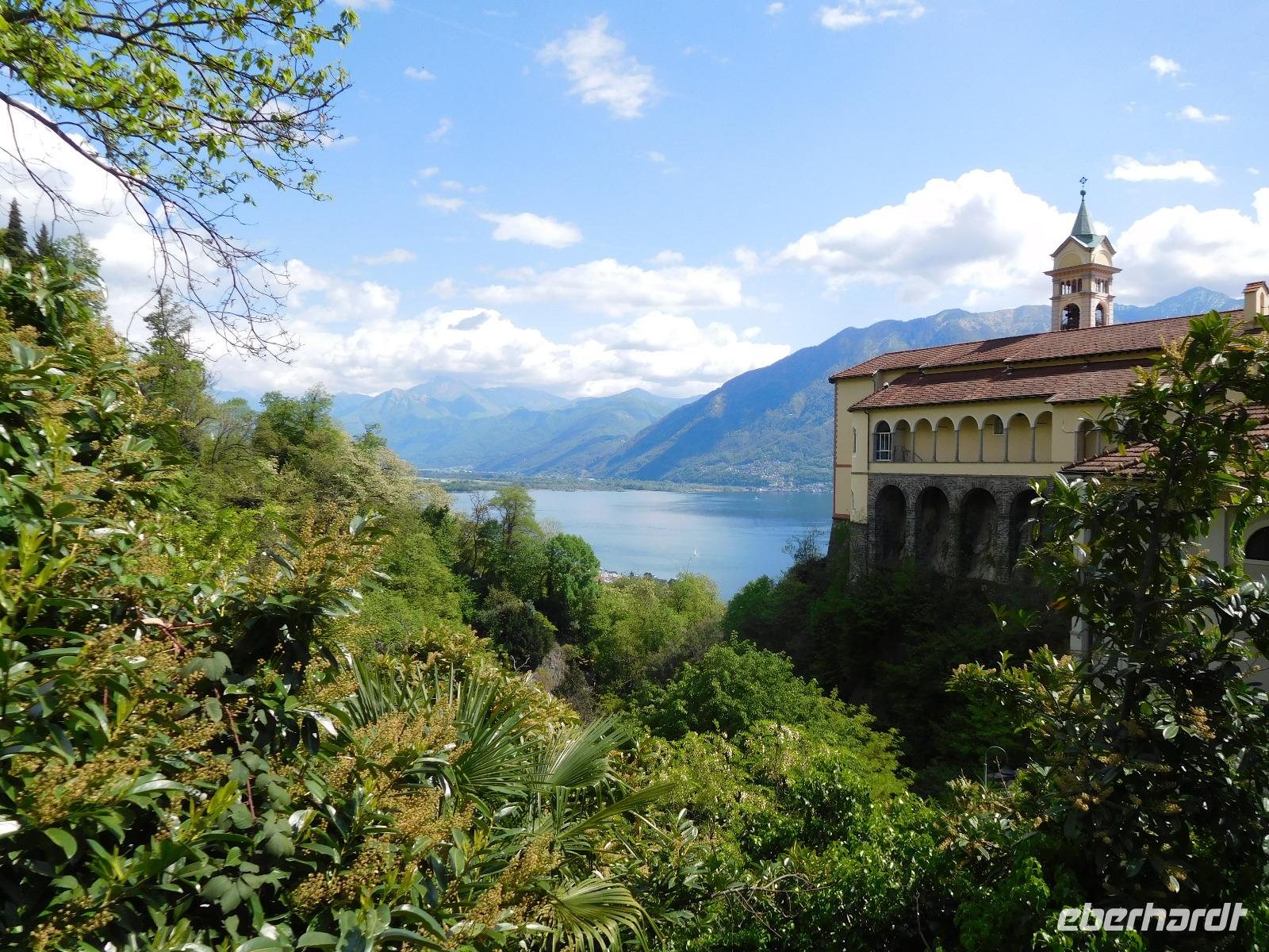 Am 16. Oktober 1925 wurden die Verträge von Locarno zwischen Deutschland, Belgien, Frankreich, Grossbritannien, Italien, Polen und der Tschechoslowakei geschlossen, die den völkerrechtlichen Status Deutschlands nach dem Ersten Weltkrieg neu regelten. Gemeinsam fuhren wir mit dem Bus zum Bahnhof und schlenderten zur nahe gelegenen Standseilbahn, die uns zur Wallfahrtskirche Madonna del Sasso brachte, die auf einem Felsen oberhalb der Stadt liegt. 1480 soll dort ein Franziskanermönch aus Ivrea eine Muttergotteserscheinung gehabt haben, die den Bau von Kapellen und einen Pilgertourismus auslöste. Wie in Domodossola schuf man auch hier Skulpturenensembles, die zum Beispiel ein Abendmahl mit überlebensgroßen Figuren zeigen. Zudem bietet der Berg ein tolles Panorama. Nach der Rückfahrt ging die Gruppe gemeinsam bis zur Piazza Grande, dem Hauptplatz von Locarno. Die meisten Mitreisenden besichtigten anschließend die nahe gelegene Franziskanerkirche, sowie die Santa Maria Assunta mit der imposanten Christophorusfigur am Eingang. Gleich hinter dem Busparkplatz am Bahnhof war noch ein Kleinod der Romanik zu finden, die Chiesa San Vittore aus dem 11. Jahrhundert. Ein Juwel die Krypta mit gut erhaltenen Kapitellen, sowie mittelalterliche Fresken. Auf der Heimfahrt legten wir noch einen kleinen Stopp im Nachbarort Baveno ein, wo die den Heiligen Gervasius und Protasius geweihte romanische Kirche die Ortsmitte bildet. Eine lange Seepromenade lädt zum Flanieren ein. Beim Abendessen konnten alle auf ein sonniges und erlebnisreiches Osterfest blicken.