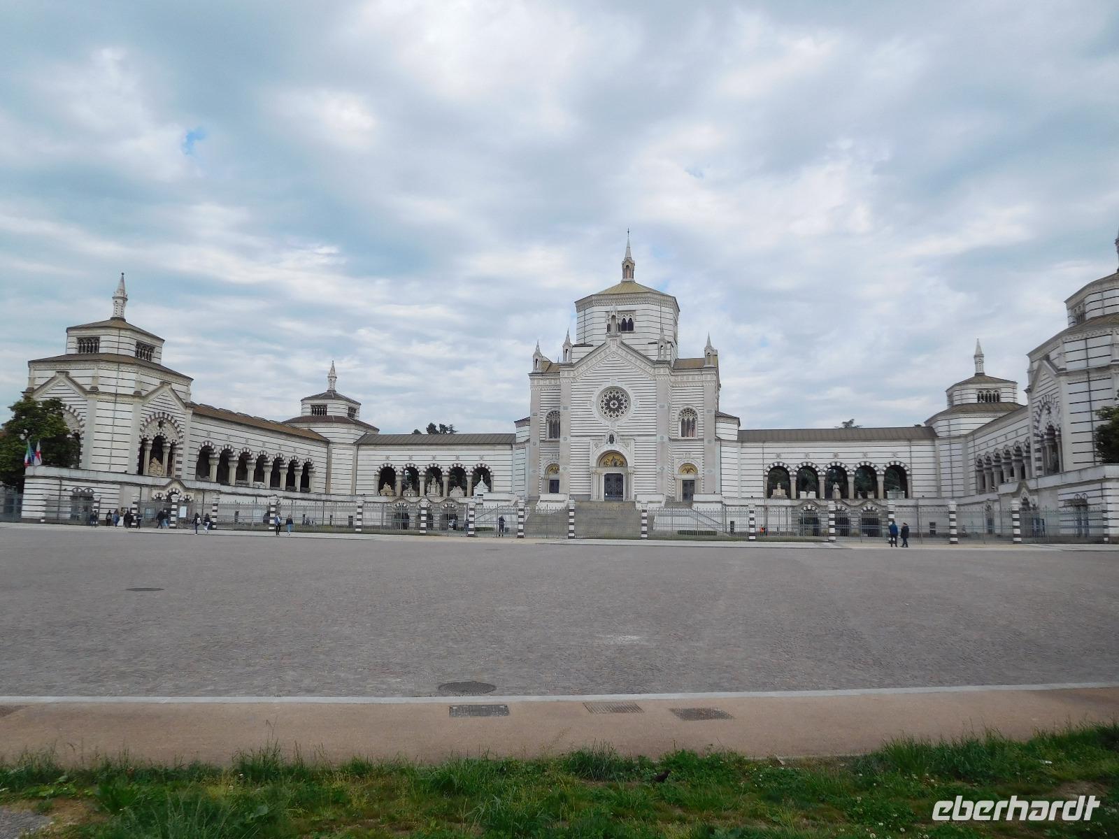 In der Morgensonne ging es um halbneun los nach Mailand, wo wir vor dem Monumentalfreidhof unsere Führerin Freda trafen, die uns zunächst mit der Geschichte der riesigen Anlage vertraut machte und uns zu schönen und interessanten Gräbern führte. Der Cimitero Monumentale von Mailand ist ein 1866 eröffneter Zentralfriedhof mit zahlreichen künstlerisch interessanten oder sonst berühmten Gräbern. Als Architekt fungierte Carlo Maciachini (1818-1899). Ein Ruhmestempel dient als Grabstätte für einige der berühmtesten Italiener. Von Interesse sind allerdings auch zahlreiche andere Grabstätten, in denen das Mailänder Großbürgertum sich gegenseitig an Prunk und Pomp zu übertreffen suchte. Zu nennen sind etwa die Gräber der Familien Falck, Bocconi, die Gründer des Warenhauskonzerns La Rinascente, sowie das der Familie Campari, die sich ein komplettes Abendmahl in Lebensgröße als Bronzeskulptur auf ihre Grabstätte stellen ließen. Ein weißer Jugendstiltempel aus Carraramarmor steht für die Familie des berühmten Dirigenten Arturo Toscanini, sowie sein Schwiegersohn Wladimir Horowitz. Für eine Zeit lang nahm die Grabstätte auch den Leichnam Giacomo Puccinis auf.