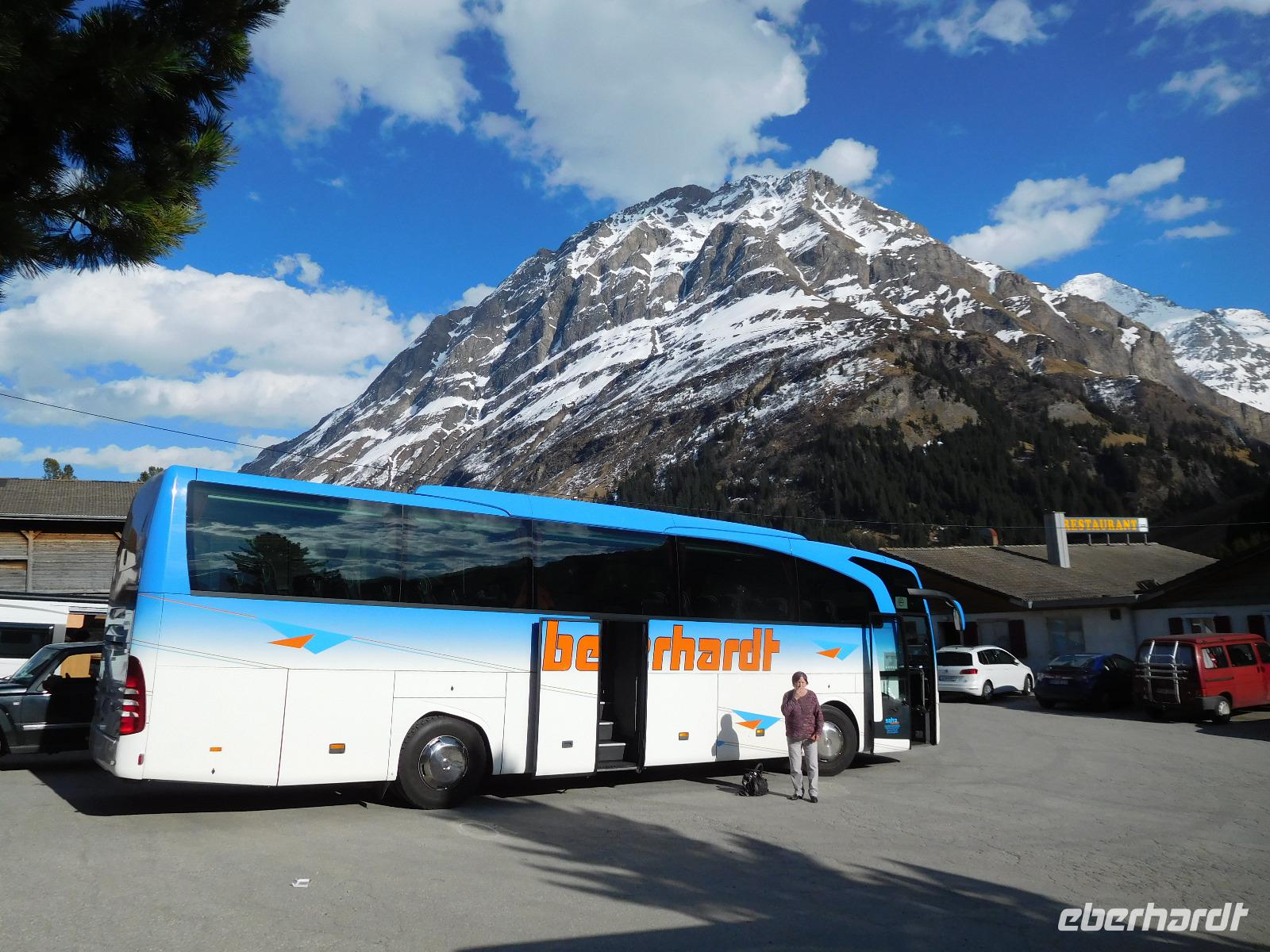 Die Anfahrt klappte perfekt bis in die Schweiz hinein, eine Mitreisende aus Pforzheim stieg pünktlich noch am Nachmittag in Ulm zu, doch in der Schweiz vor dem San- Bernardino- Tunnel erwischte uns doch der Feiertagsverkehr. Kurz vor dem Tunnel legten wir noch bei herrlichem Sonnenschein im malerischen Milchbauerndörfchen Nufenen eine längere Pause ein. Bis zum Ziel ging es dann eher schleppend voran, allerdings entschädigte auf der letzten Etappe der ständige Blick auf den Lago Maggiore im Abendlicht. Trotz einiger Verspätung erwartete man uns im Hotel mit einem ersten Abendmenu.