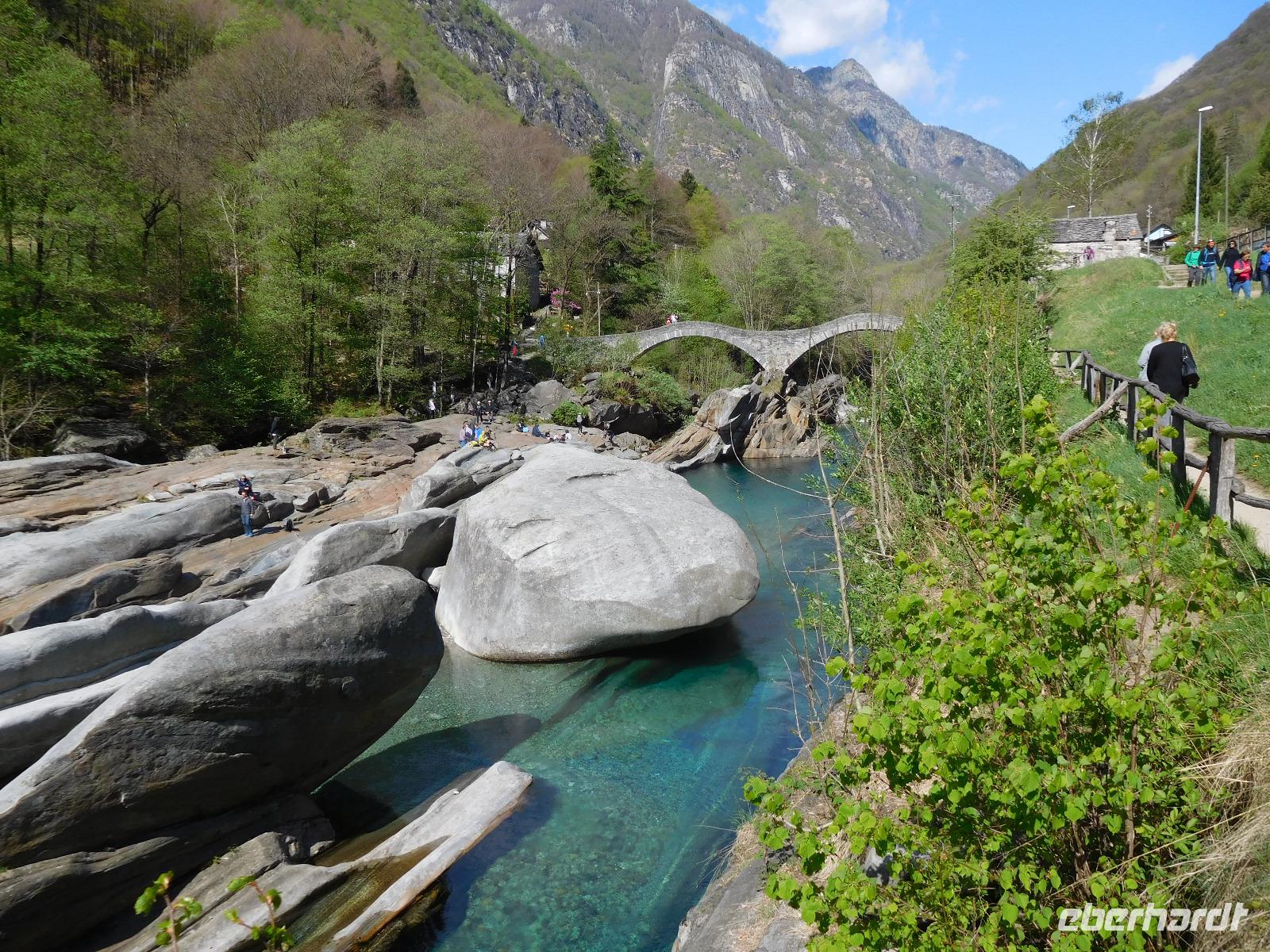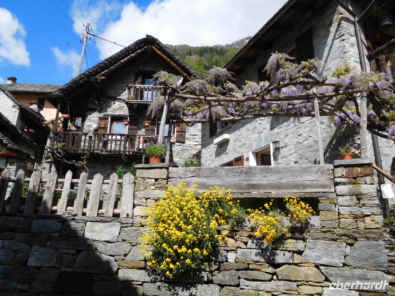 Gleich nach dem Frühstück fuhren wir ins noch urtümlich schroffe Verzascatal, eine wilde ursprüngliche Gegend mit steilen Hängen und unzähligen Wasserfällen. Die Rustici aus grauem Stein mit weißen Umrandungen an den Fenstern und schweren Steinplattendächern sind typisch für das Tal. Kapellen entlang der Wege zeugen vom religiösen Glauben der Bewohner.