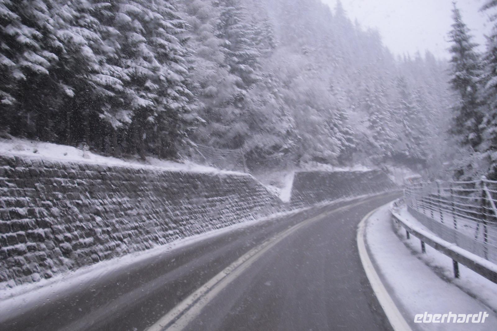 Ob als Sparzustieg oder mit einem Haustürtransfer gebucht, alle 40 Reisegäste waren pünktlich an den Zustiegsstellen eingetroffen. Mit regelmäßigen Pausen als Fahrtunterbrechung, auch für den Busfahrer Frank, fuhren wir durch eine winterliche Schweiz
