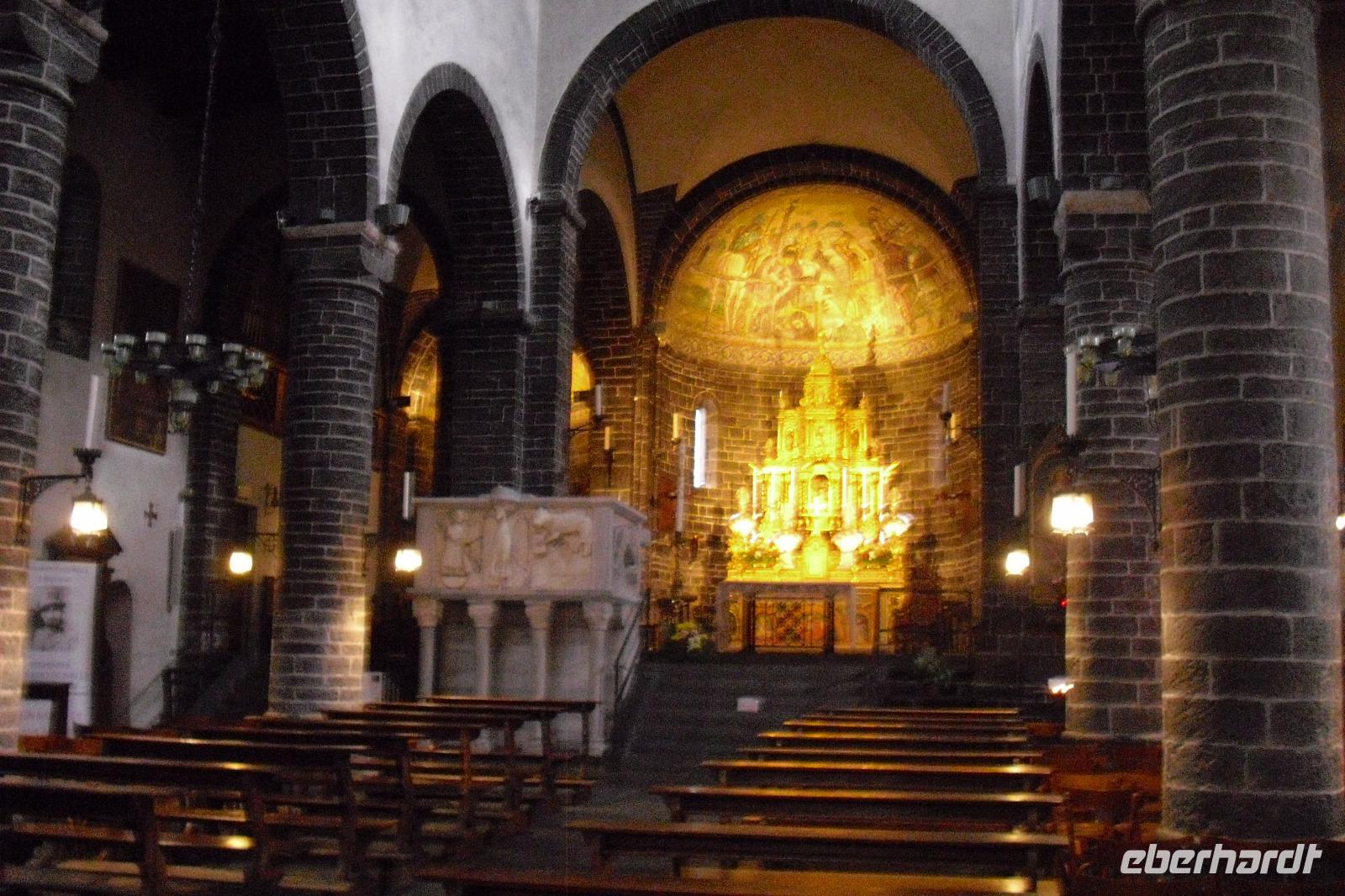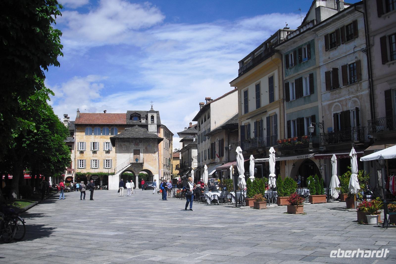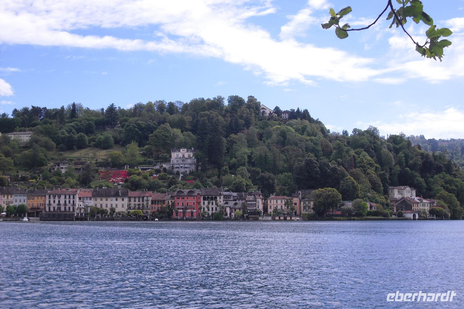 Ein erstes Frühstück in Italien, dann die Abfahrt mit dem Bus nach Orta. Am Ortsrand stiegen wir um in eine kleine Bimmelbahn - Trenino di Orta- und fuhren in Richtung Ortsmitte. Am Minigolfplatz aussteigend legten wir den Weg zum Hauptplatz Piazza Mario Motta zu Fuß zurück und setzten mit zwei Booten über zur Isola San Giulio. Hier erwartete uns mit der Basilika von San Giulio ein Meisterwerk der Kirchenbaukunst. 390 n.Chr. zeichnete San Giulio am Ufer des Sees. Eines Tages warf er seinen Umhang auf das Wasser, legte sich auf ihn und schwamm zur damals aus nacktem Felsen bestehenden Insel hinüber. Er verscheuchte mit bloßer Hand einen Drachen, die vorhandenen Schlangen und entschied sich zum Bau einer kleinen Kirche als seinen letzten Bestimmungsort. Noch heute ruhen hier seine sterblichen Überreste obwohl die Kirche selbst über die Jahrhunderte nach Zerstörung, Wiederaufbau, Umbau und Erweiterung eine veränderte Architektur bekam. Als wichtigste Arbeit in der Basilika wird die mittelalterliche Kanzel aus schwarzem Marmor genannt, entstanden zu Beginn des 12. Jahrhunderts.Wir besichtigten die Basilika und spazierten anschließend auf dem Weg der Stille. Bei unserer Rückkehr mit den Booten hatten wir einen herrlichen Blick auf den heiligen Berg von Orta, den Sacro Monte di San Francesco.