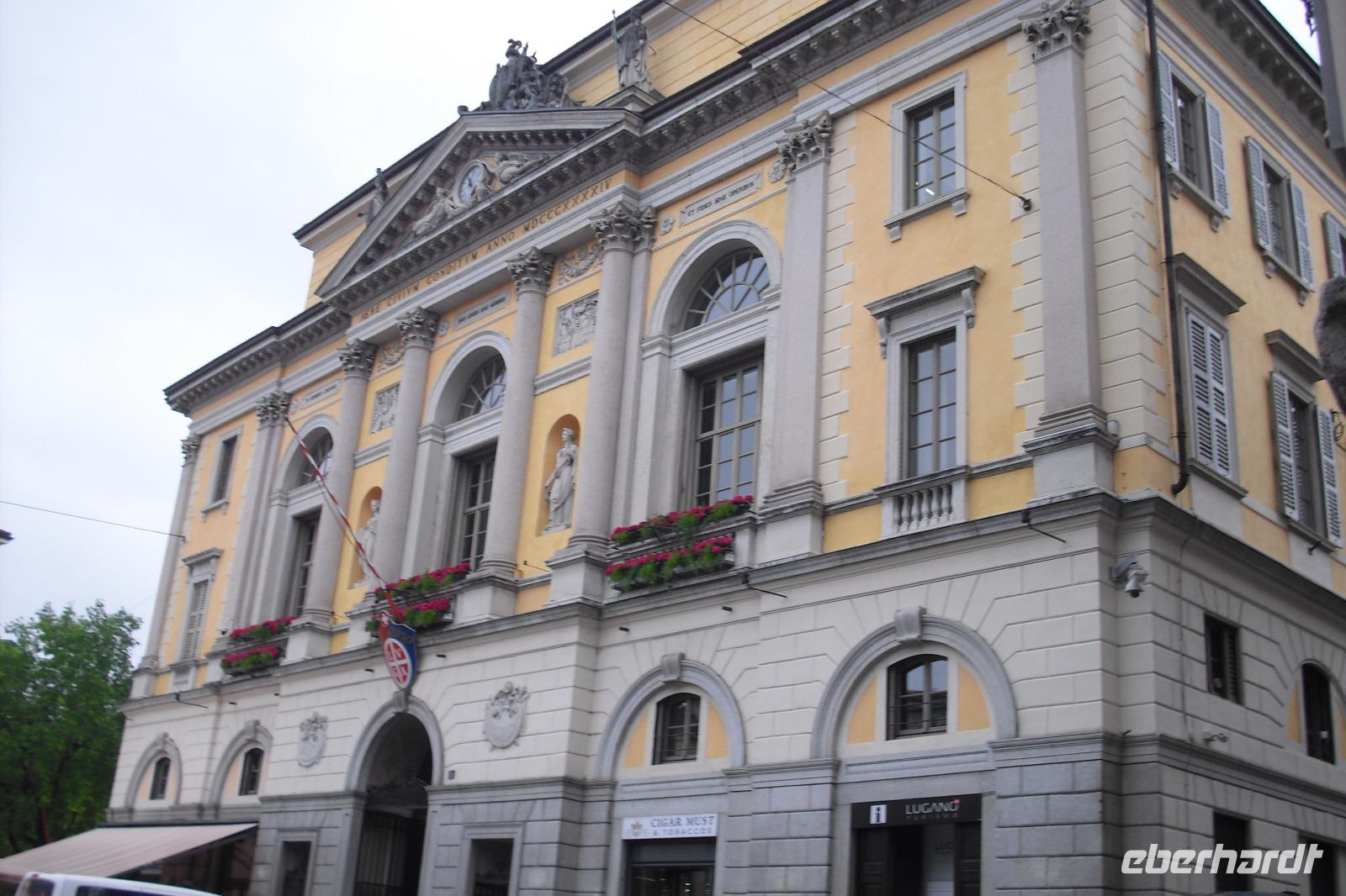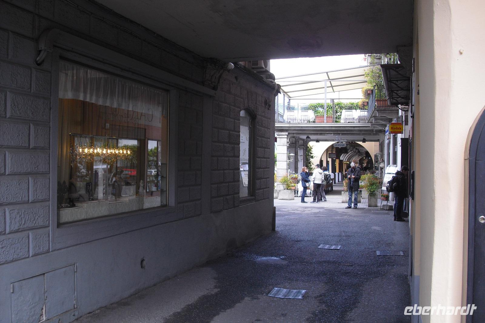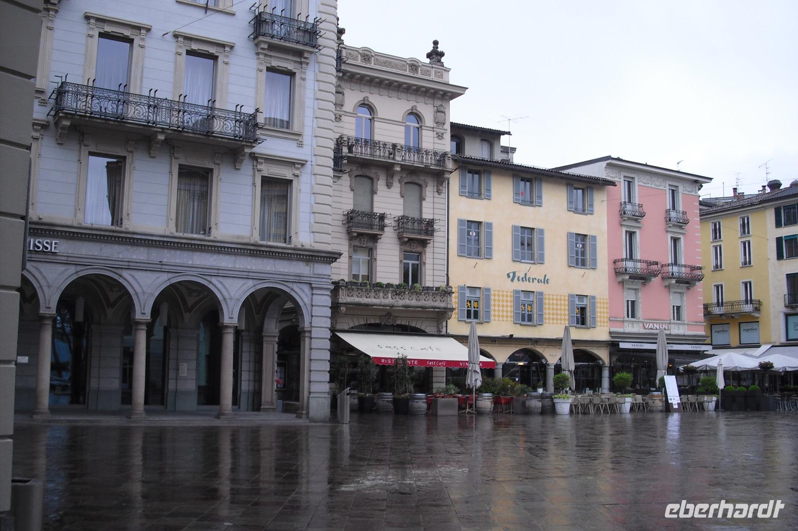 Ein zweites Frühstück in Italien und dann fuhren wir mit unserem Bus nach Lugano. Stau bei der Anfahrt und Regen in Lugano ließen nur wenige Eindrücke von dieser mondänen Stadt zu. Bei einem kleinen Bummel durch die Via Nassa konnten wir aber schon erkennen: Hier in Lugano braucht jeder die richtige Kreditkarte bei einer Einkaufstour. Wir sahen aber auch die kleine Kirche Santa Maria degli Angioli mit Fresken von Bernardino Luini, das im neoklassizistischen Stil 1844 erbaute Rathaus, das 2015 eröffnete neue Kulturzentrum und hatten einen guten Blick auf die "Hausberge" von Lugano, den Monte Bre und den Monte San Salvatore.