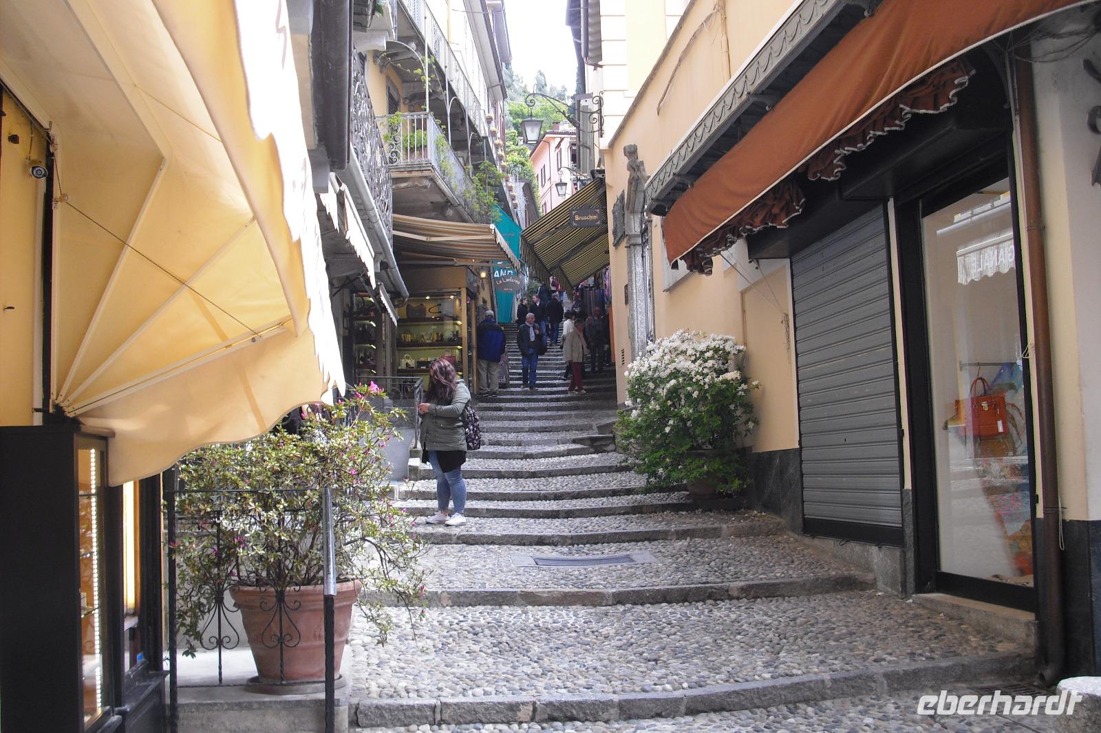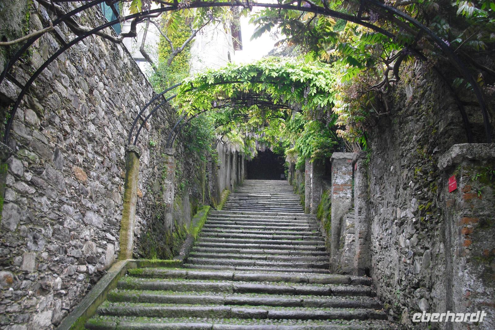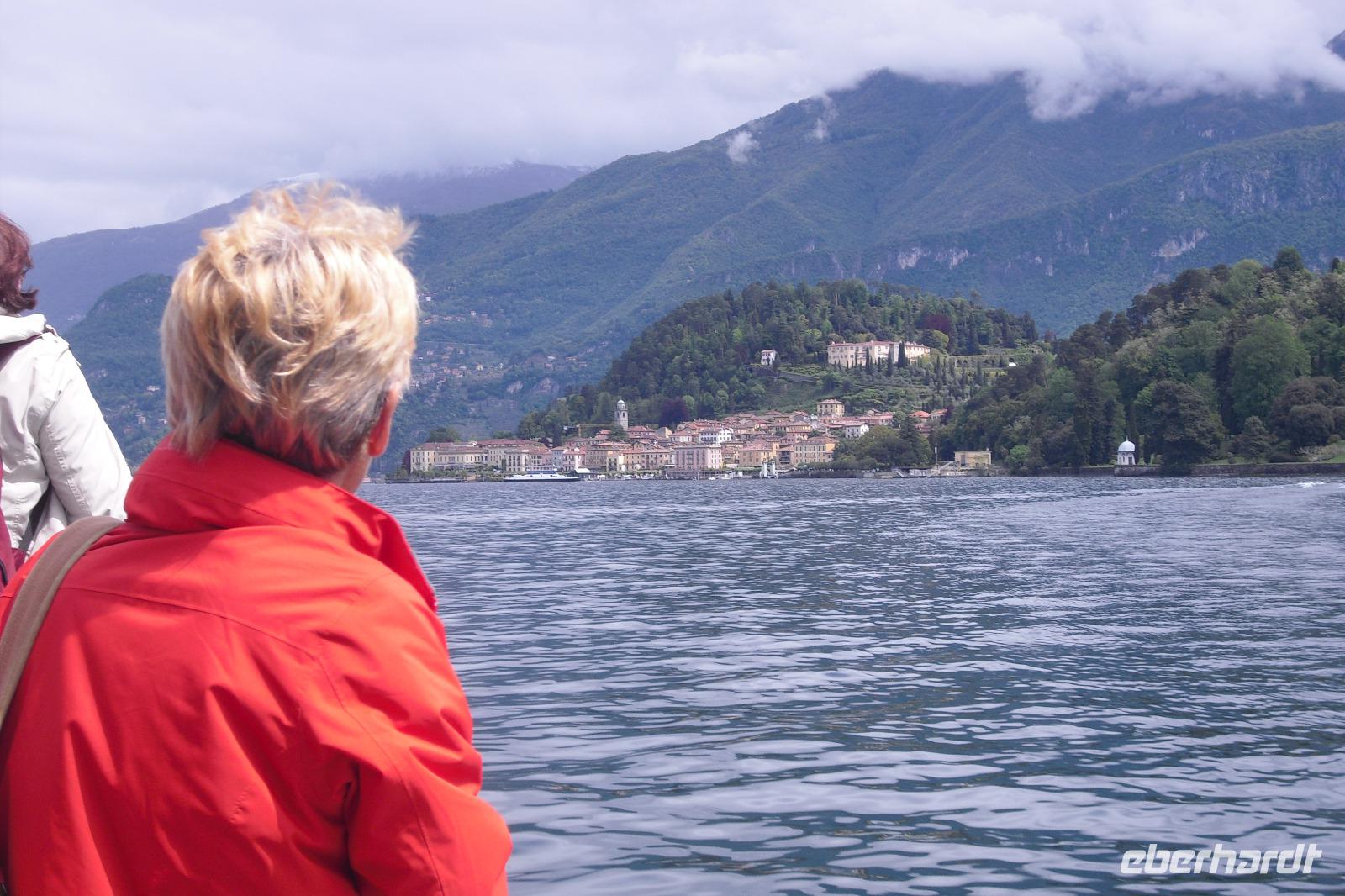 Es wurde schließlich Zeit aus Lugano abzufahren denn es erwartete uns in Tremezzo ein Linienschiff, das uns über den Comer See nach Bellagio übersetzte. Hier in Bellagio nahmen wir uns etwas mehr Zeit zur Erkundung dieses kleinen und auch feinen Ortes. Kleine italienisch typische enge Gassen, feine Läden für Touristen - und auch Einheimische - mit breitem Warensortiment, eine gut aufgestellte Gastronomie für ein Mittagessen, herrliche Ausblicke über den Comer See und nicht zuletzt die St. Jakob-Basilika von Bellagio. Sie gilt als eines der besten Beispiele römisch-lombardischer Baukunst und wurde 1904 mit einem Ministerialerlaß zum Nationaldenkmal erklärt. Nach diesem Besuch brachte uns das Linienschiff zurück nach Tremezzo. Da der Mai schönster Monat des Jahres ist, da einige Reisegäste auf dieser Reise ihren Geburtstag feierten und andere zwar nicht auf dieser Reise, aber doch im Mai, dazu, das Lugano am Vormittag etwas kurz kam, entschloß sich der Reiseleiter zu einer Zugabe: Ein Besuch der Villa Carlotta am Comer See. Dankbar wurde diese Geste angenommen.