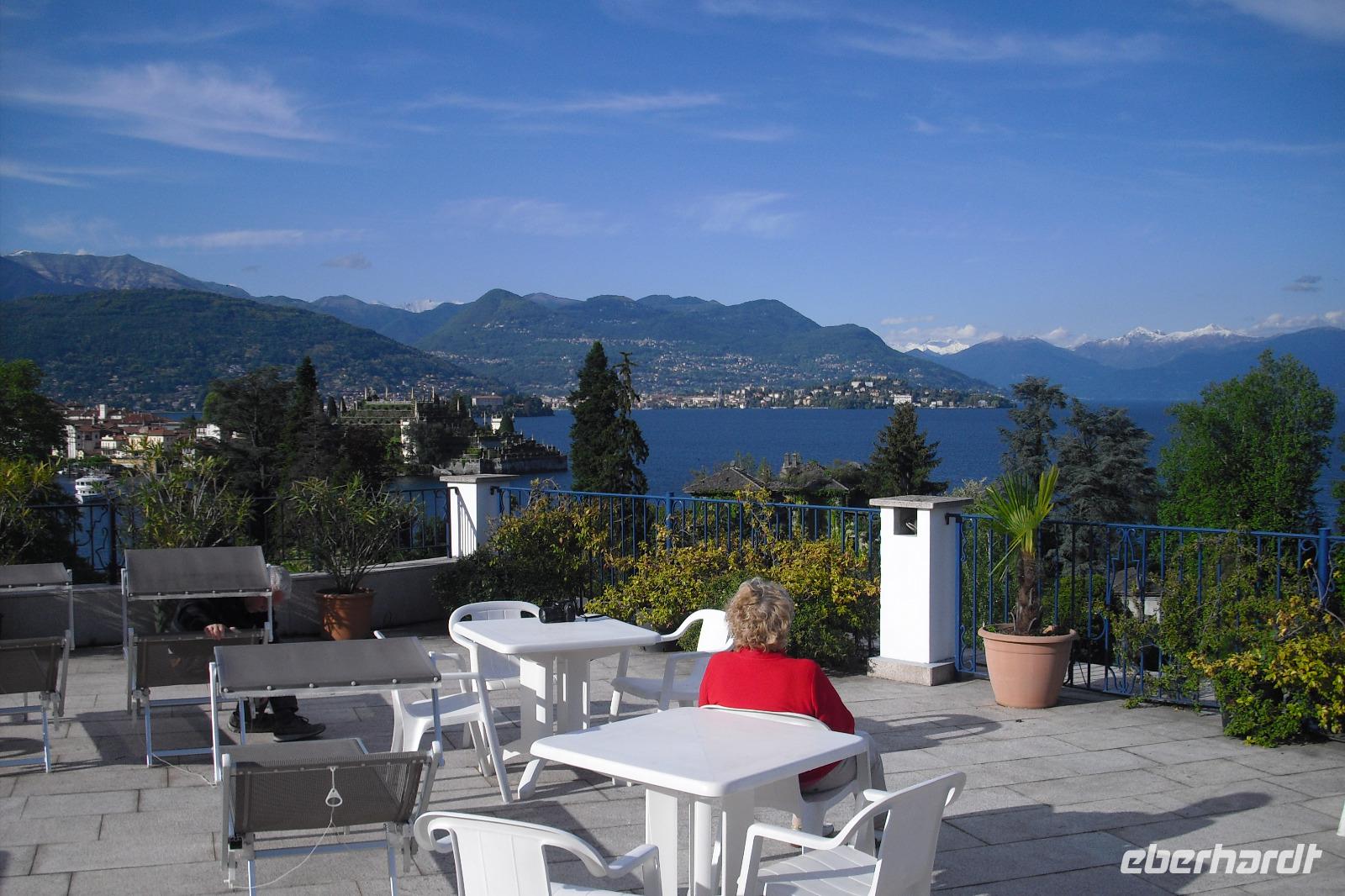 Heute konnte jeder Reisegast sich sein eigenes Programm zusammenstellen. Der Reiseleiter bot an, sich zu treffen und gemeinsam zum Markt in Stresa zu spazieren. Es wurde gut angenommen. Für die Mittagszeit bot der Reiseleiter an, sich zu treffen und gemeinsam zur Talstation der Seilbahn (hinauf zum 1491 m hohen Mottarone ) zu laufen. Es wurde sehr gut angenommen und so wurde jeder mit einem Hin- und Rückfahrticket ausgerüstet. Die Auffahrt wurde bei schönstem Wetter und einer fantastischen Sicht zu einem besonderen Erlebnis. Alle waren zum Ende des Tages wieder vereint - beim gemeinsamen Abendessen im Hotel.