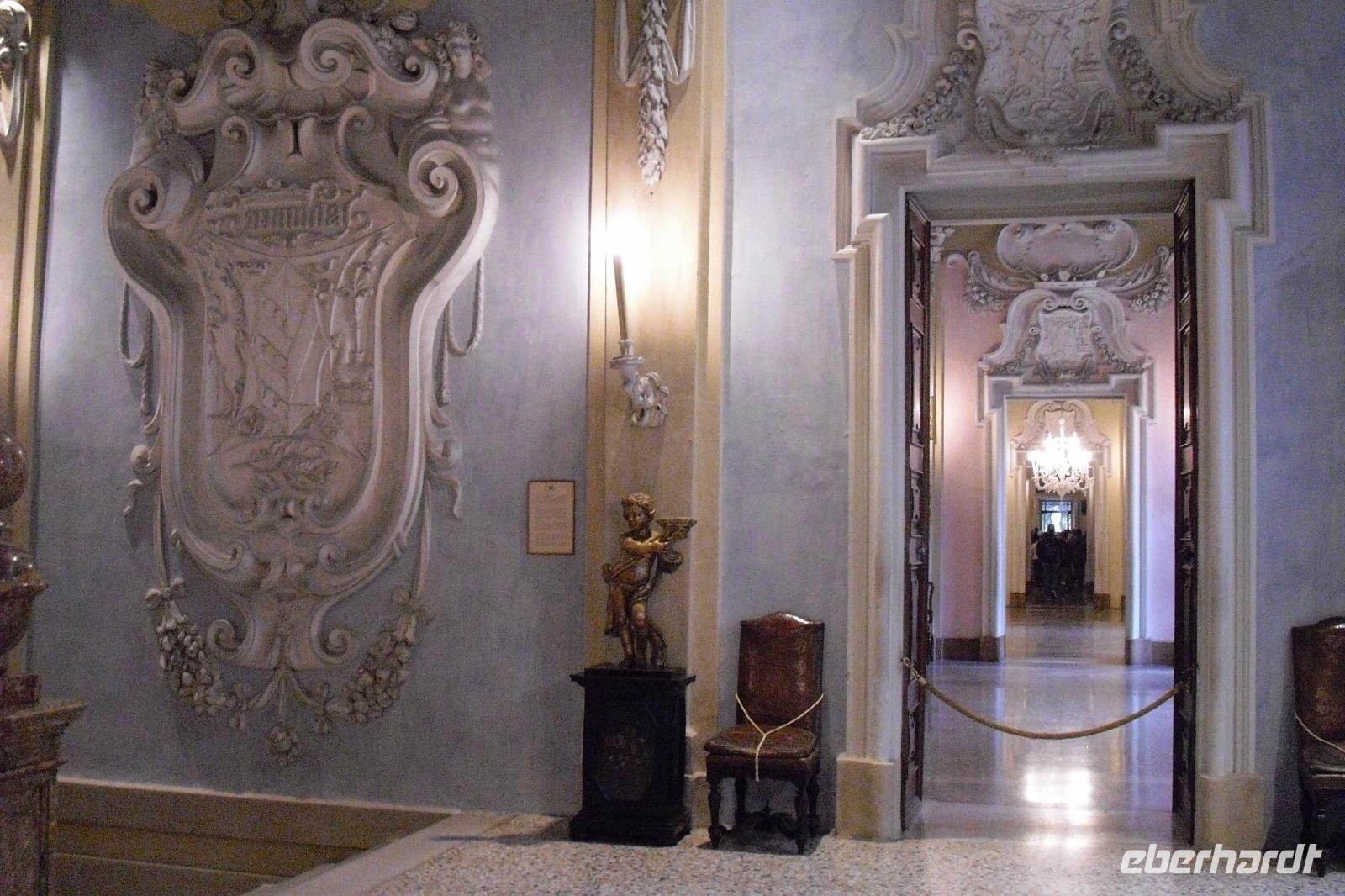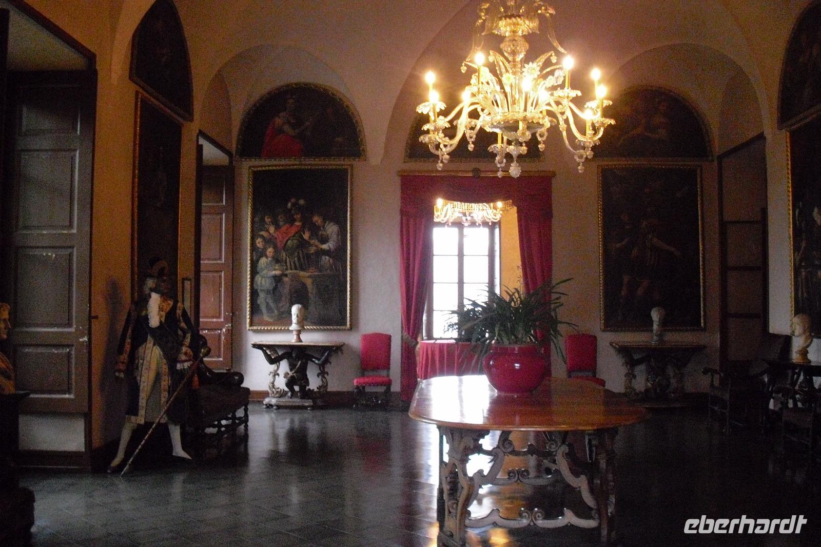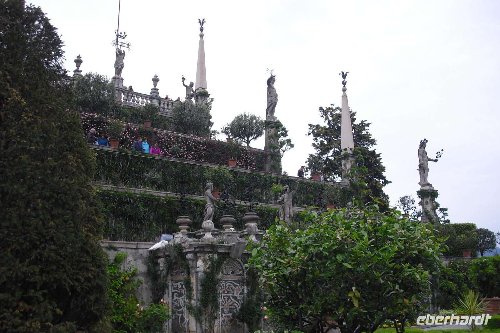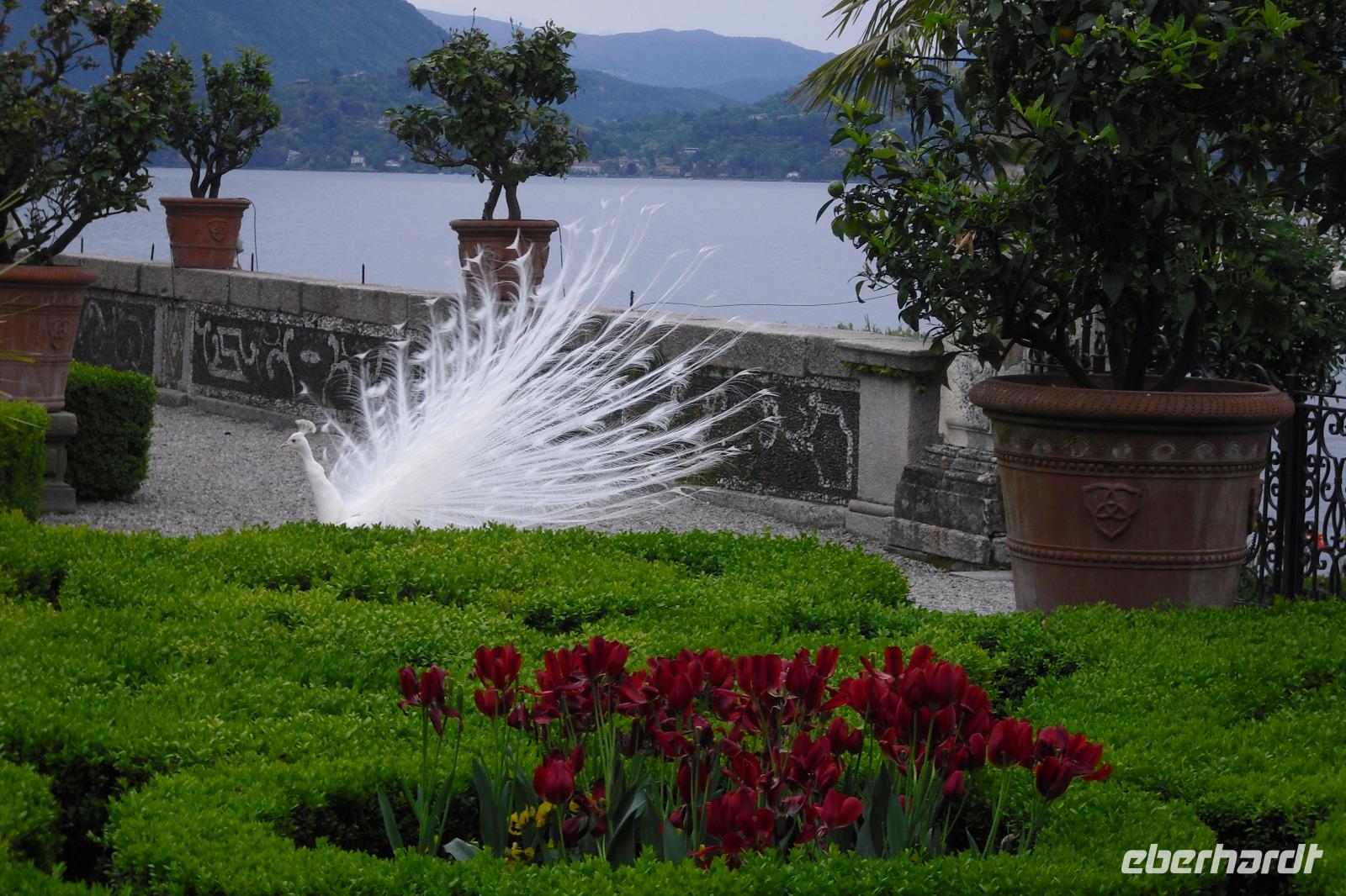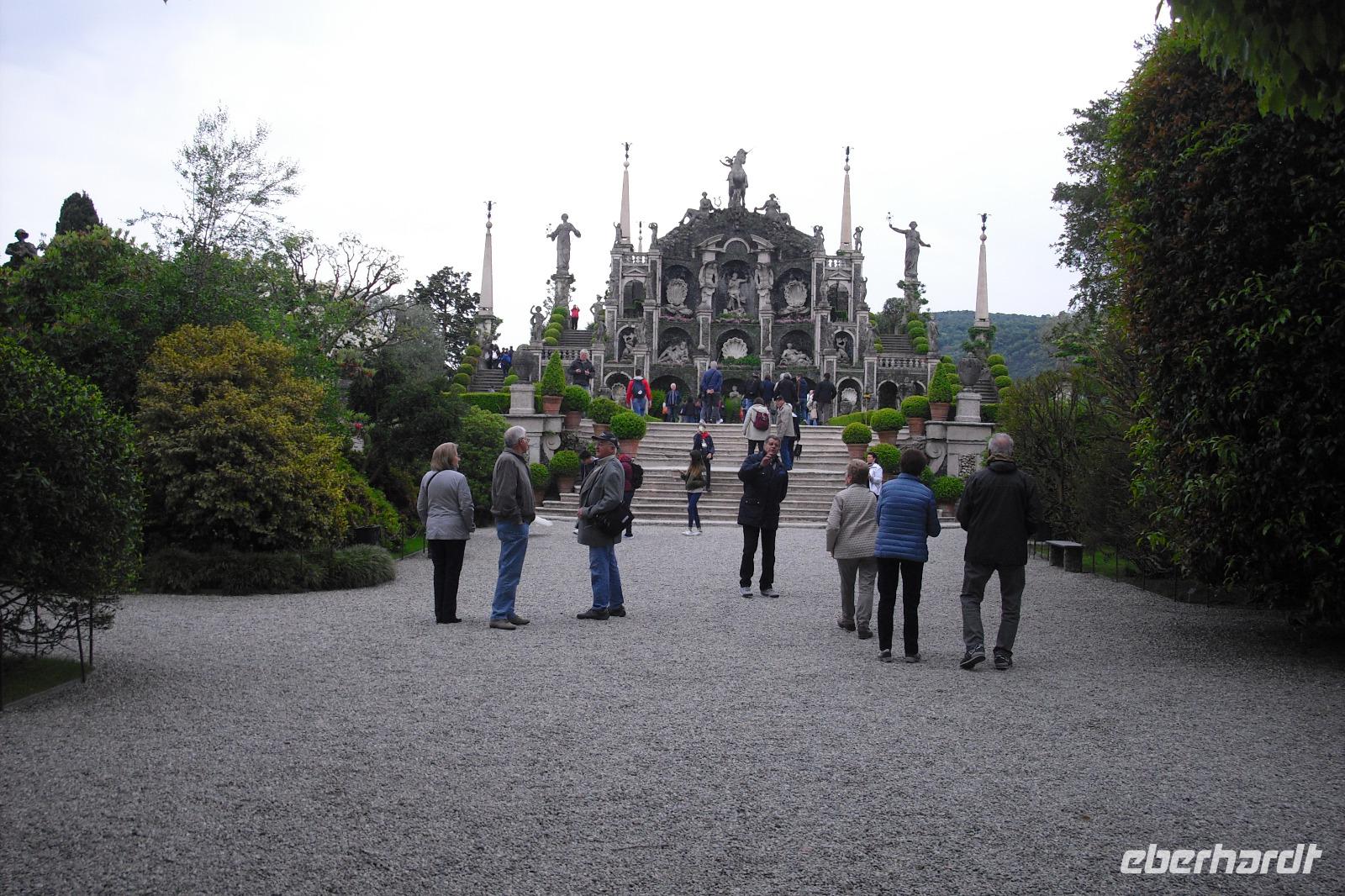 Mit 37 von 40 Reisegästen ging es nach dem Frühstück zum Bootsanleger. Hier erwarteten uns zwei Capitanos zum Übersetzen auf die Isola Bella. Diese Insel liegt wie ein Boot auf dem Wasser des Lago Maggiore und es ist schwer, ihre harmonische Schönheit in Worte zu fassen. Das tat dann Michaela, die uns in ca.70 Minuten bei einer Führung durch den Palazzo Borromeo recht Wissenswertes vermittelte. Fortgesetzt wurde es dann durch ein individuelles Erkunden im italienischen Garten mit seiner Blütenpracht, seiner Abfolge von Terrassen, Blumenbeeten, Statuen und Brunnen. Herrlich auch das Radschlagen eines Pfaues mitten in der Gartenanlage, wenn man es denn erleben konnte. Die Mittagspause verbrachten wir noch auf der Isola Bella und leider begann es zu regnen . Unsere Capitanos holten uns zur Überfahrt auf die Isola Madre pünktlich ab. Auf der etwas weiter im Lago Maggiore gelegenen Insel erwartete uns Alfredo zu einer Garten- und Palastführung. Wir wandelten mit ihm durch einen üppigen botanischen Garten englischen Stils, sahen eine Fülle an Azaleen, Rhododendron, Kamelien, Palmen, Zitruspflanzen und Magnolien. Wir bewunderten die gerettete Kaschmir-Zypresse und waren auf die Erklärungen von Alfredo bei der Palastführung gespannt. Humorvoll brachte er uns Borromäische Familiengeschichte im Empfangssaal oder in den verschiedenen Schlafzimmern oder in den Sälen des Marionettentheaters näher. Prachtvoll ausgestaltet auch der Speisesaal, die Bibliothek, der Familiensaal und der venezianische Saal. Auf Alfredo, der uns auch viel Spaß gab, wartete im Anschluß eine neue Gruppe und er verabschiedete sich von uns. Wir wandelten noch ein wenig durch die wundervolle Gartenlandschaft, fanden schließlich alle den Schiffsanleger und unsere Capitanos. Die setzten uns wieder über nach Stresa und wir hatten noch ein wenig freie Zeit bis zum Abendessen.
