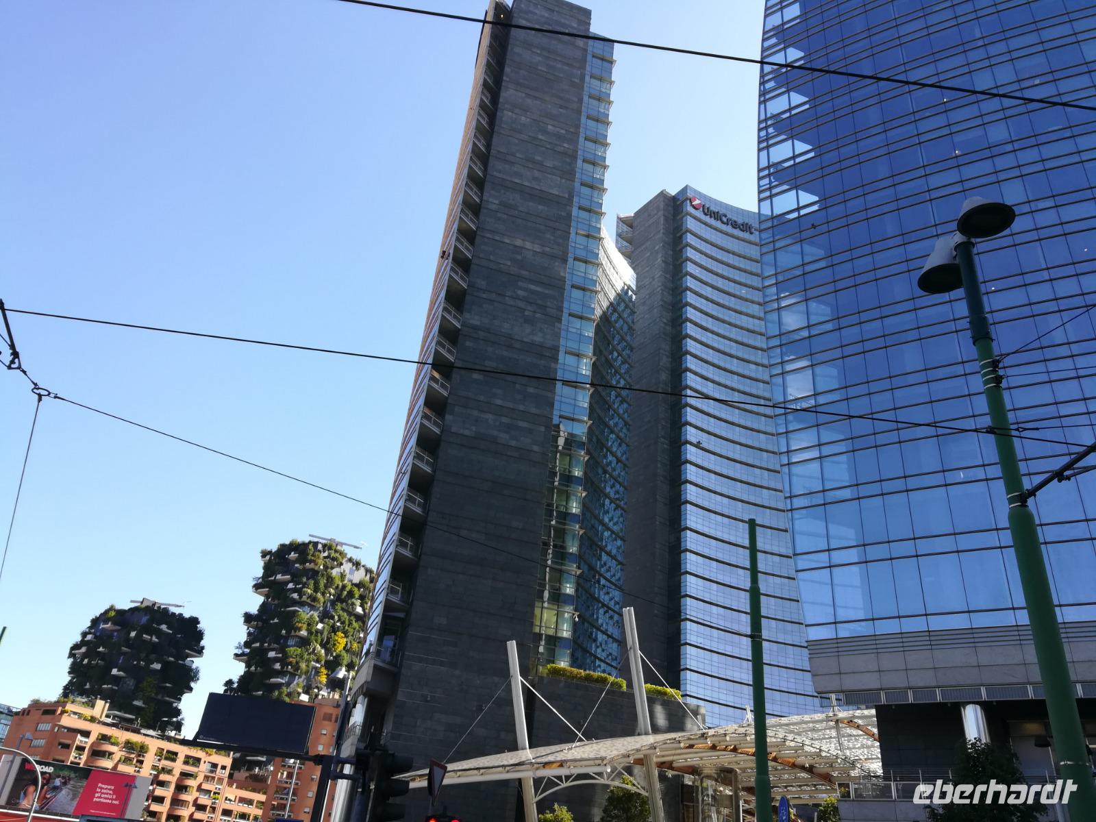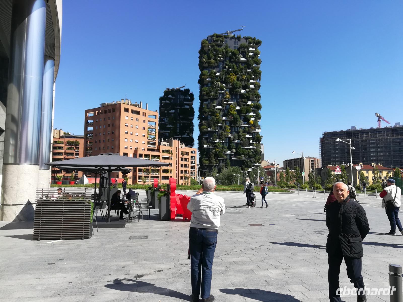 Dem Vorschlag unseres freundlichen Stadtführers Giorgio folgen wir gern und fahren mit unserem Bus als Erstes zum hochmodernen Stadtteil Porta Nuova. Hier verwirklichen Architekten die modernste zeitgenössische Architektur Italiens. Natur und Technik stellen eine harmonische Symbiose dar z.B. mit Wohnhochhäusern, deren Etagen von unten bis zum obersten Stockwerk mit Bäumen ringsherum bepflanzt wurden. Die Bewässerung dafür erfolgt automatisch. Bosco verticale, senkrechter Wald, werden diese begrünten Zwillingstürme genannt.