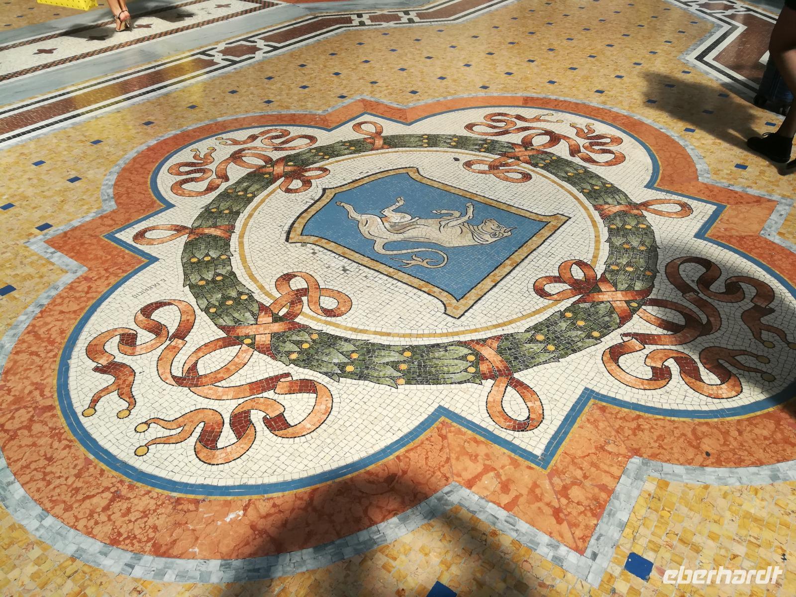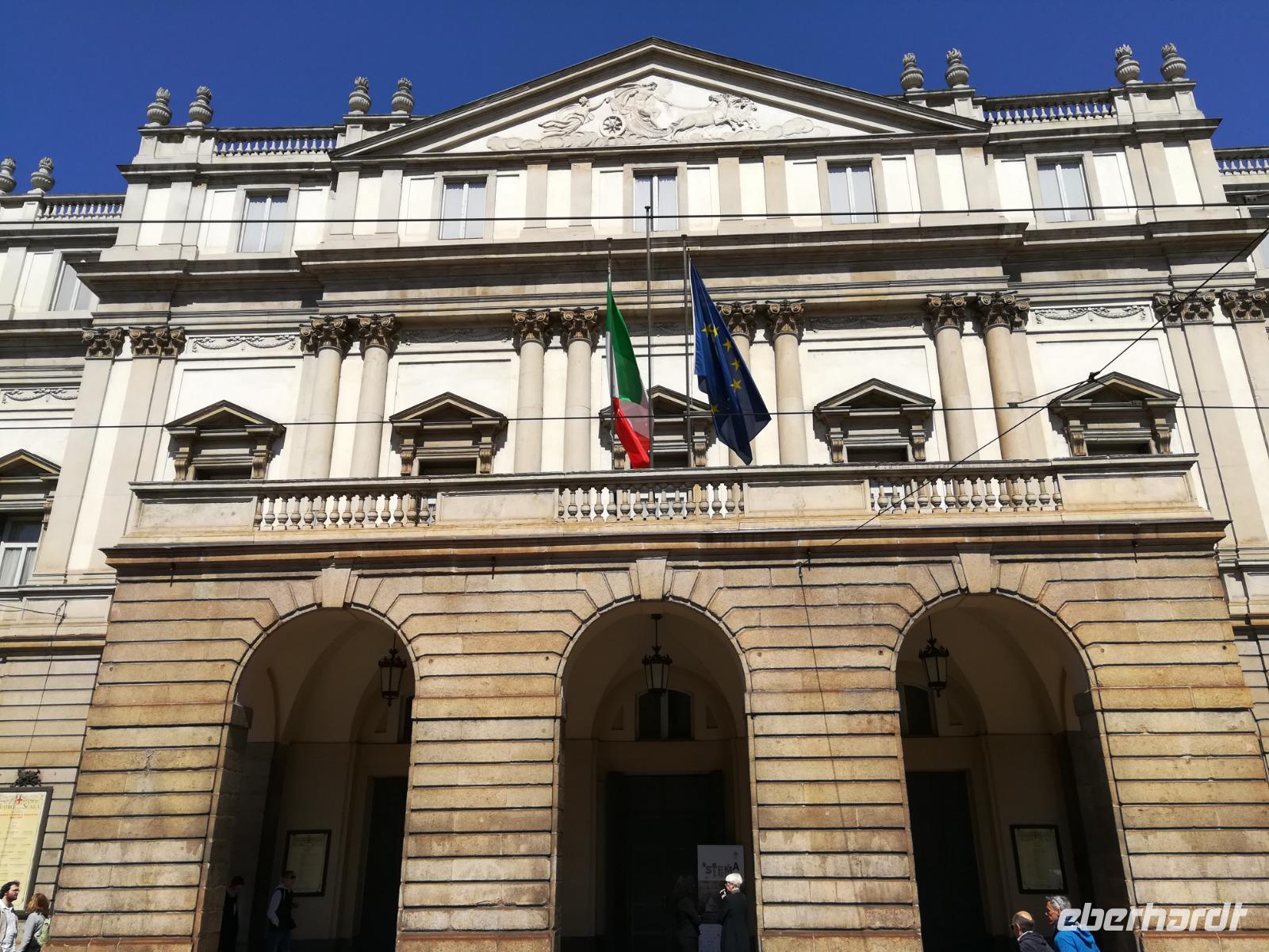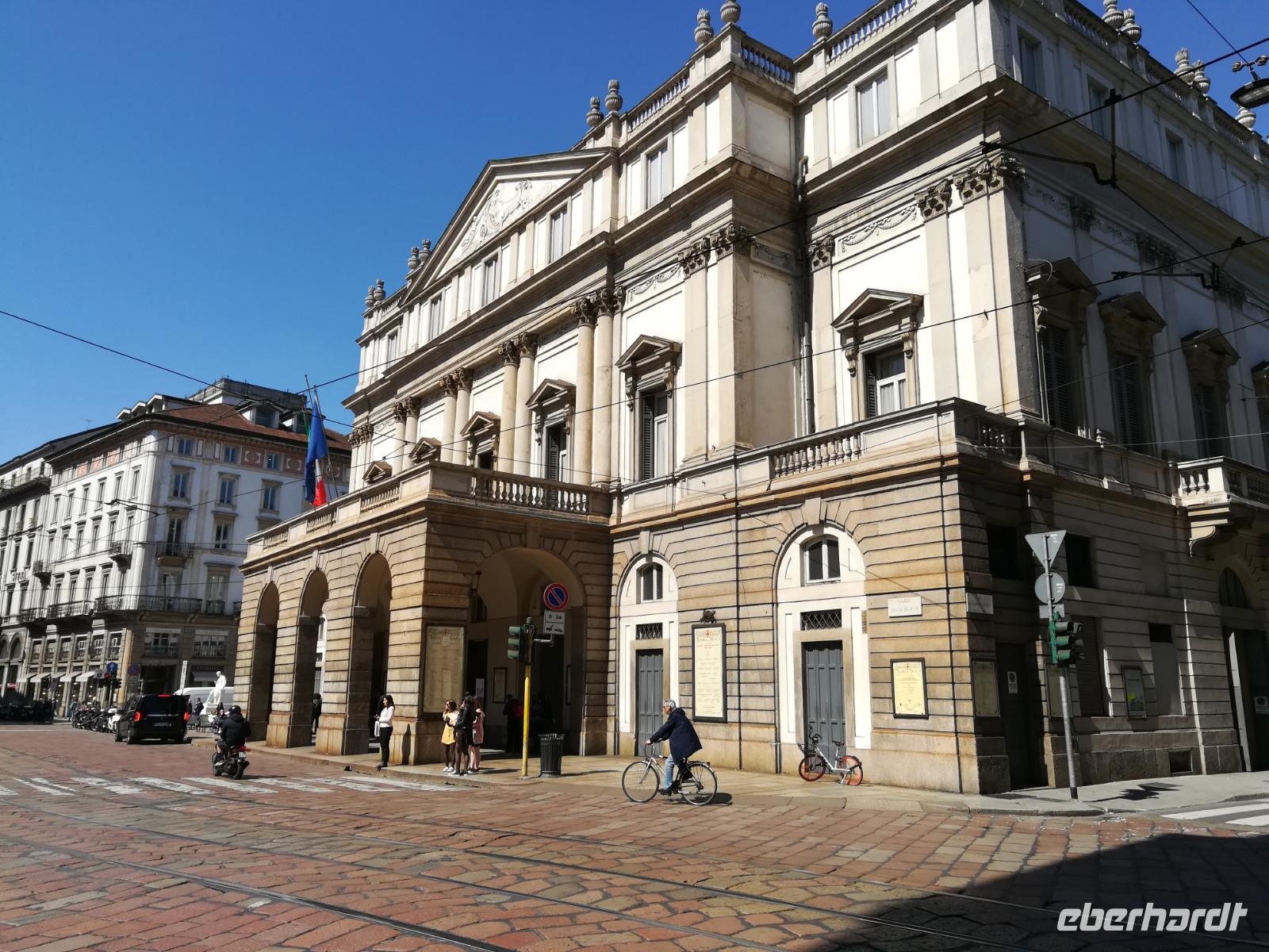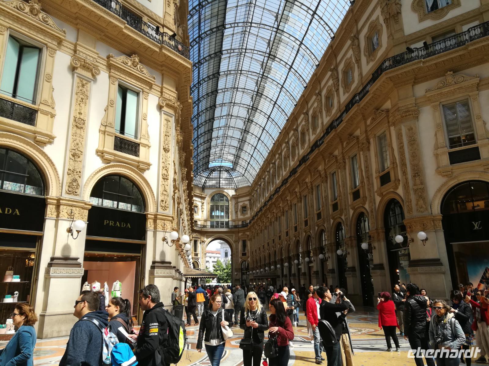 Nach dieser grandiosen Eröffnung der Stadtführung geht die Fahrt weiter zur Altstadt und bald stehen wir vor der Scala di Milano. Besichtigung war leider nicht möglich, da kurzfristig Proben angesetzt worden waren. Einer Außenbesichtigung der Scala folgte der Spaziergang durch die Galleria Vittorio Emanuele II. eine Einkaufspassage, die schon 1867 vom König eingeweiht wurde und die für mehrere europäische Einkaufszentren zum Vorbild genommen worden war. Von Giorgio erfuhren wir mit Audiotechnik viel Wissenswertes darüber und dann stehen wir vor dem Mailänder Dom.