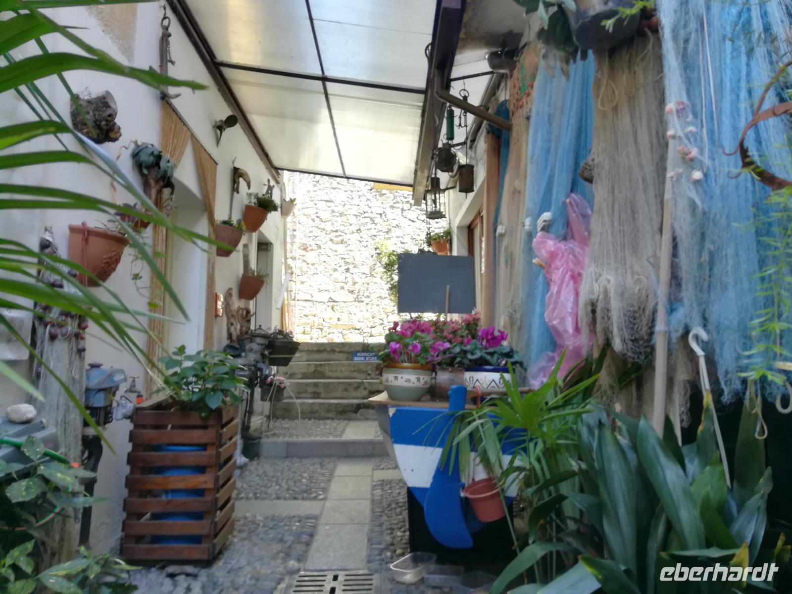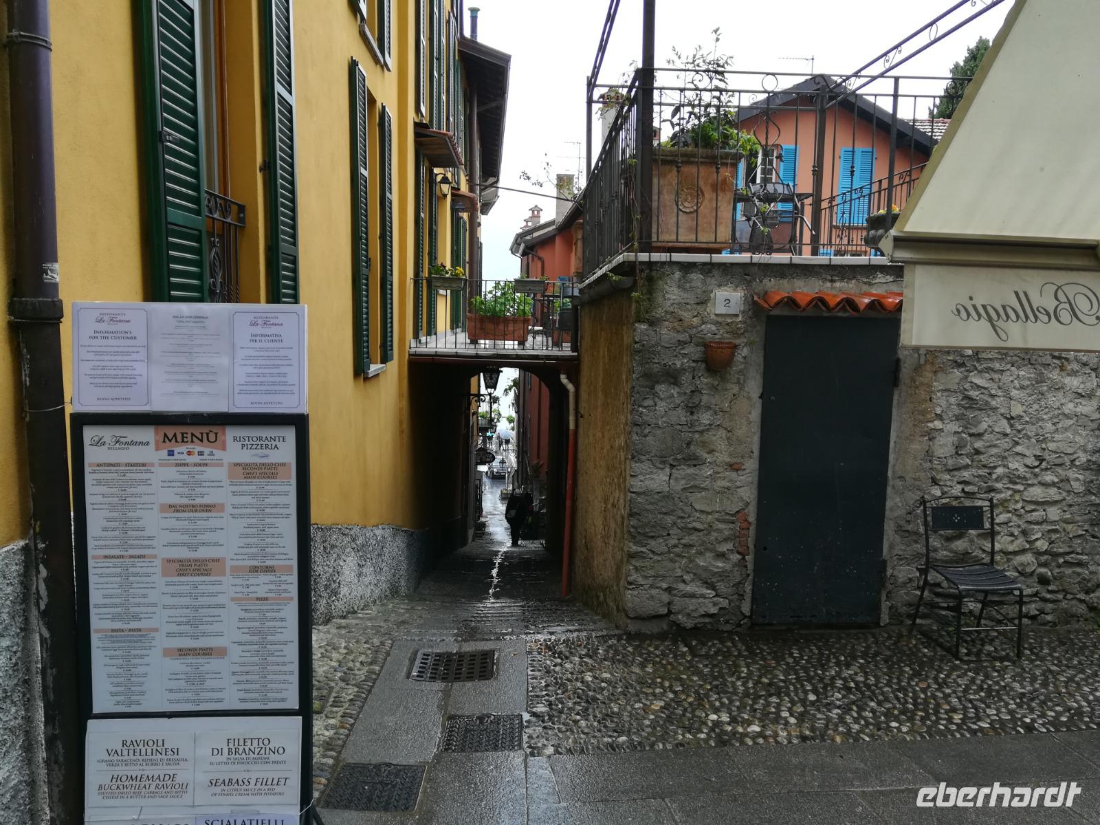 In Cadenabbia warten wir auf die Fähre, die uns nach Bellagio bringt, einen zauberhaften Ort auf der Spitze einer Halbinsel, die zwischen den beiden Seearmen des Leccosees und des Comersees liegt. In Bellagio geht es gemeinsam eine ziemich steile Treppe hinauf zur Via Garibaldi, die wir entlang laufen, um schließlich zur romanischen Stadtkirche San Giacomo zu gelangen. Jetzt ist gut Zeit für einen Espresso oder einen kleinen Snack in einem der zahlreichen Cafés in den vielen alten Gassen von Bellagio.