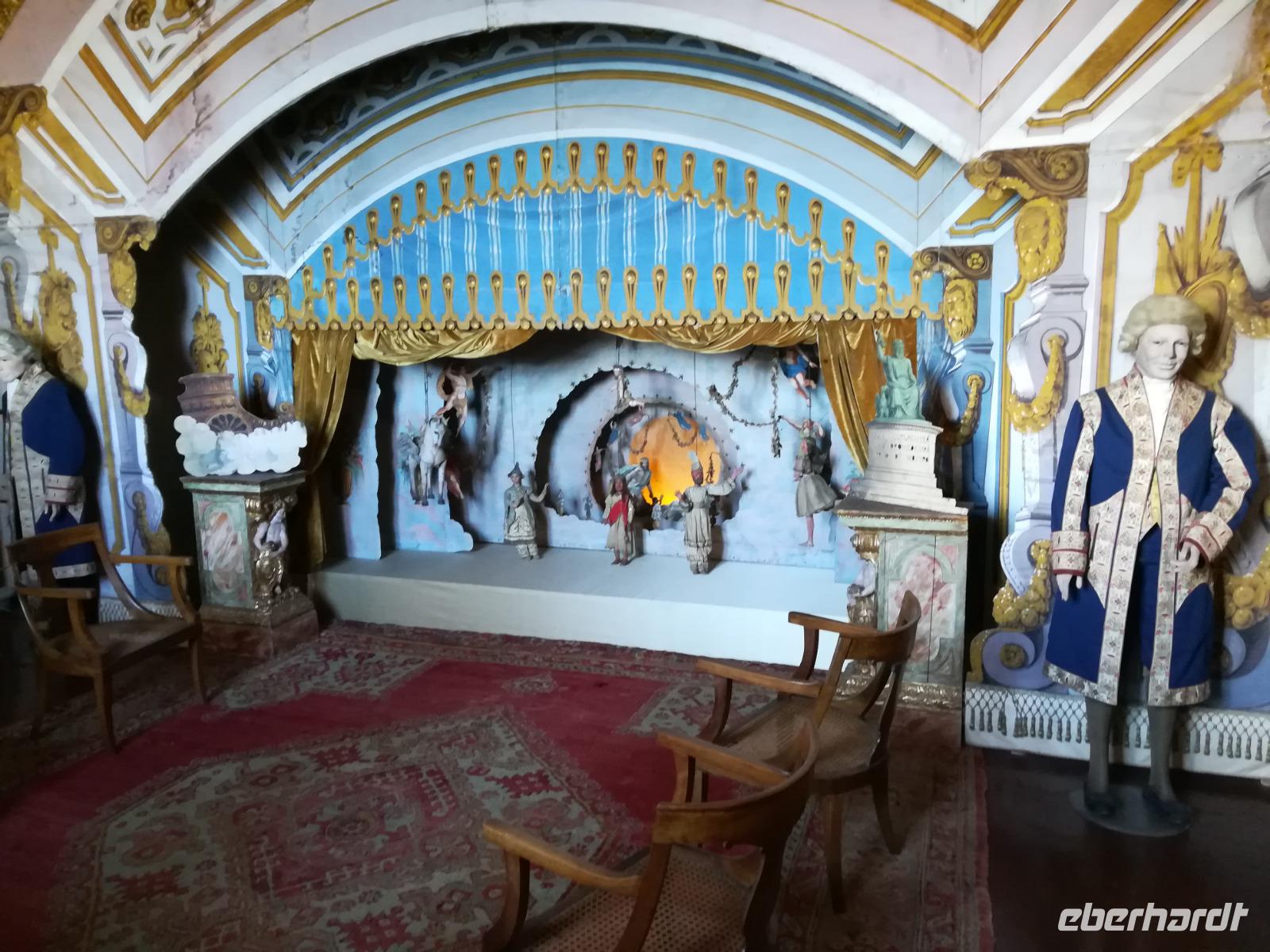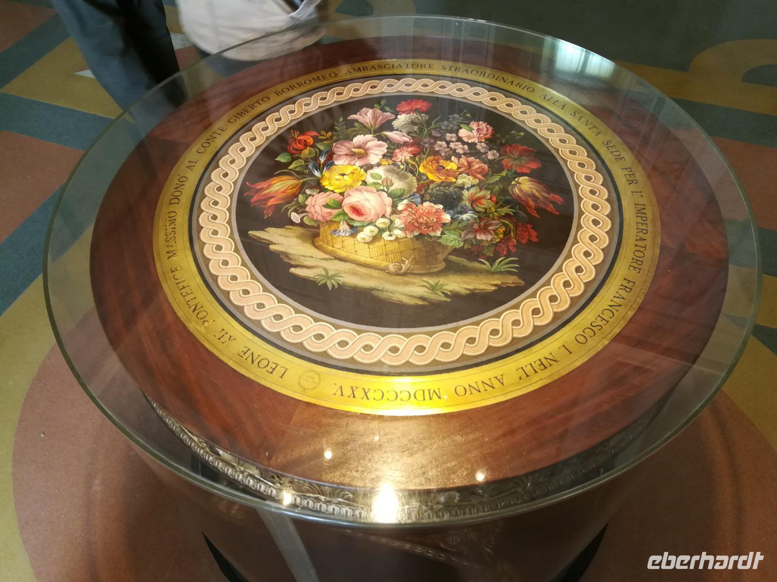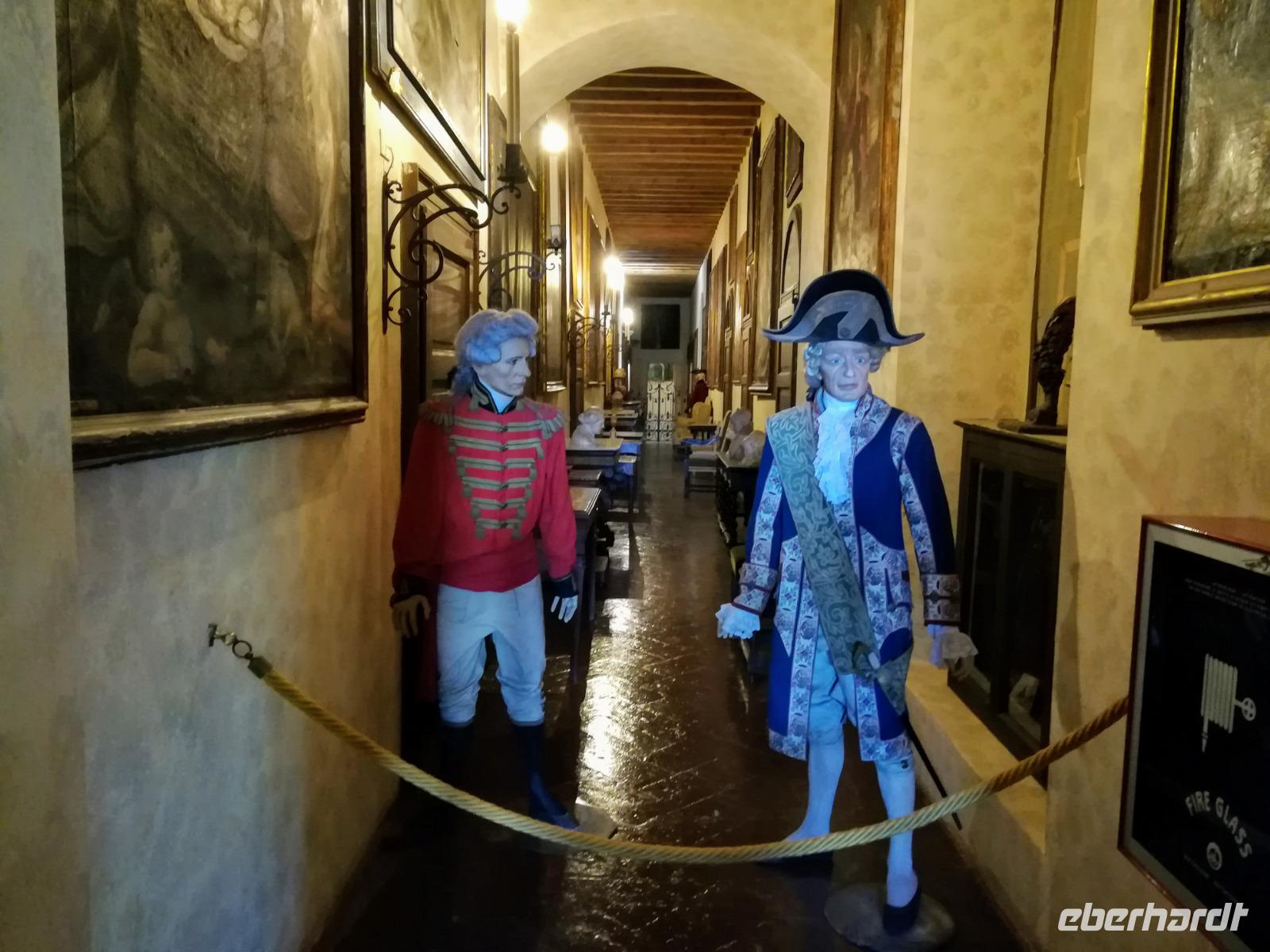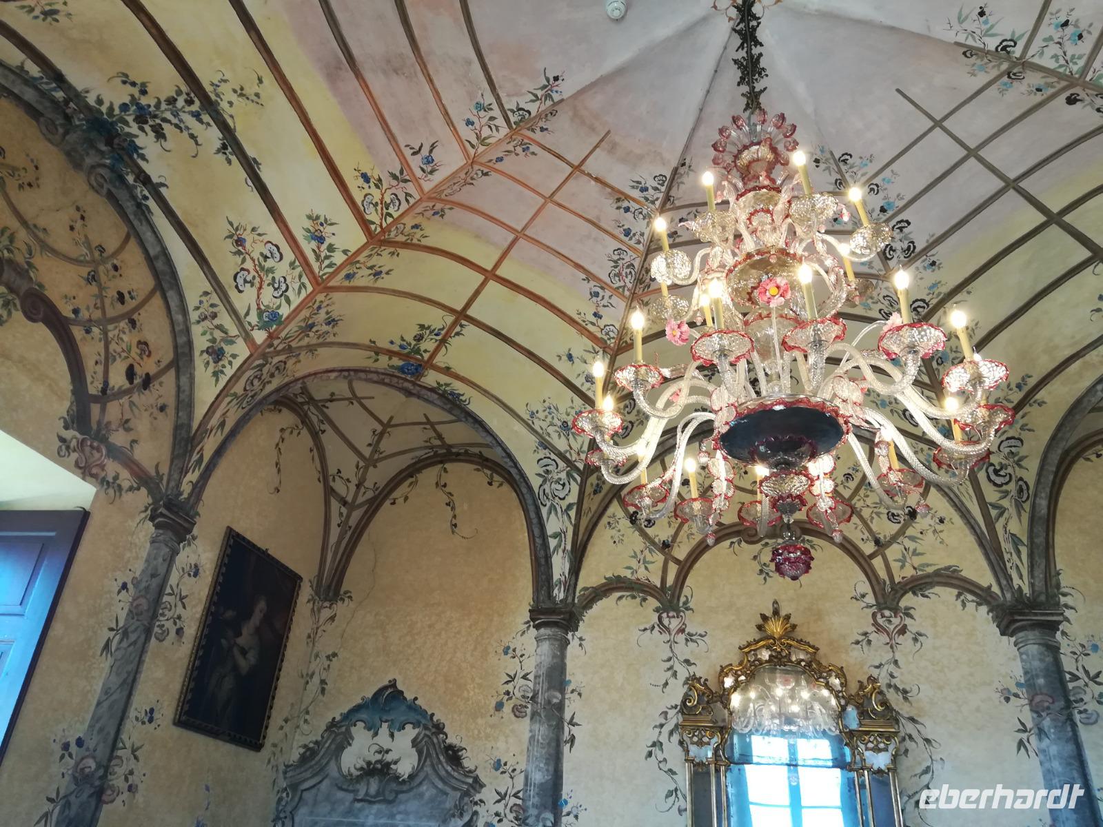 Einer großartigen Führung durch den barocken Palast schließt sich dann für unsere Gäste der Besuch des Gartens an, einer italienischen barocken Gartenanlage mit botanischen Kostbarkeiten und Sculpturen. Gleich zu Beginn beeindruckt ein 200 Jahre alter Kampferbaum, der durch Seilverspannungen am Leben gehalten wird.