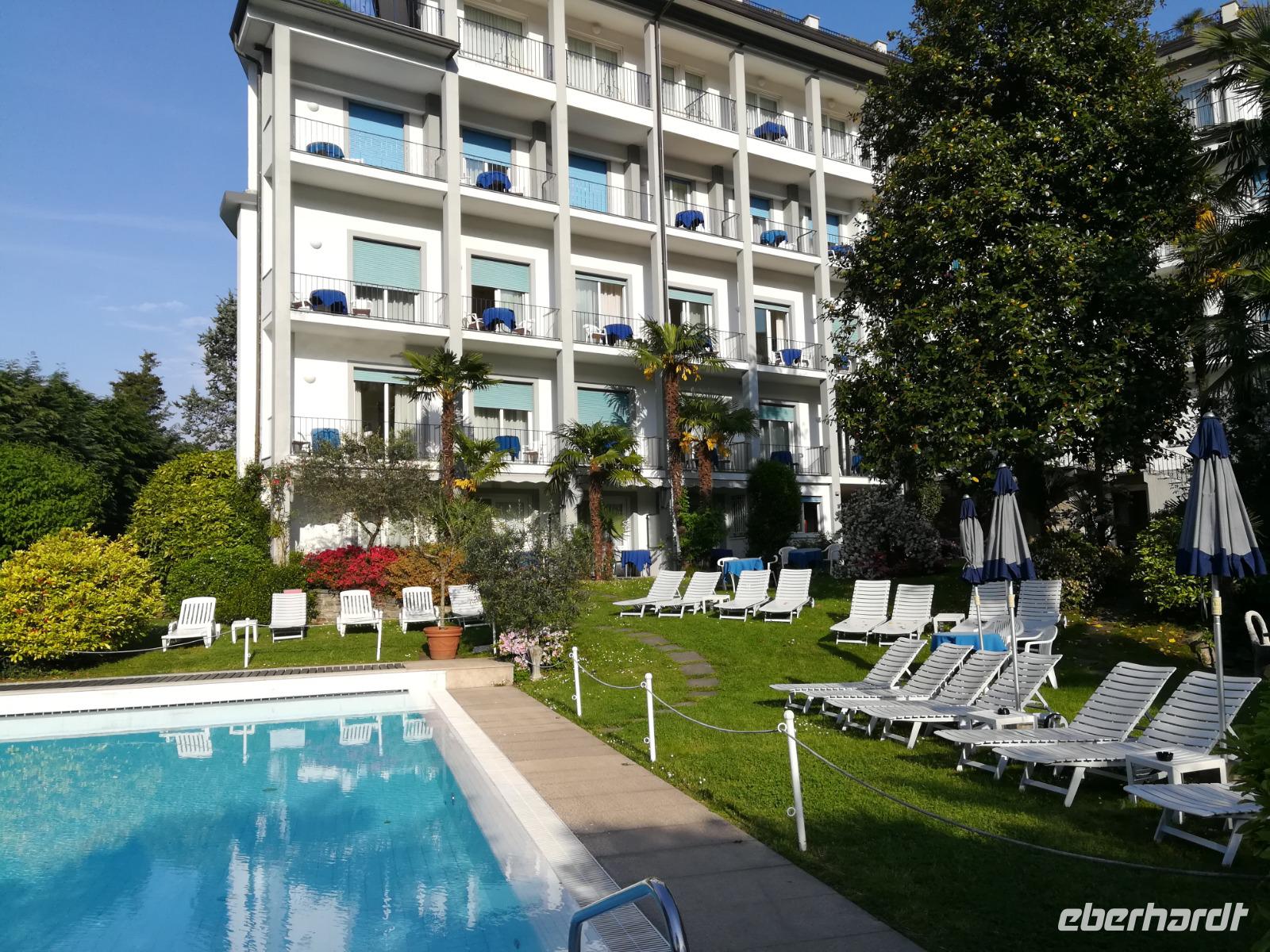 Durch Verbania, der größten Stadt am Lago Maggiore hindurch, erreichen wir nun nach einer langen, aber unbedingt interessanten Wegstrecke unser Ziel, das Hotel Royal in Stresa. Der gerechte Beifall gebührt unserem tadellos fahrenden Busfahrer, dem Maik, danke !