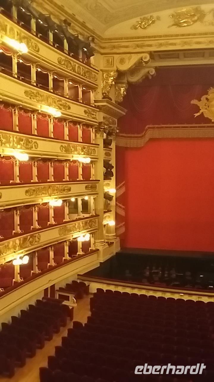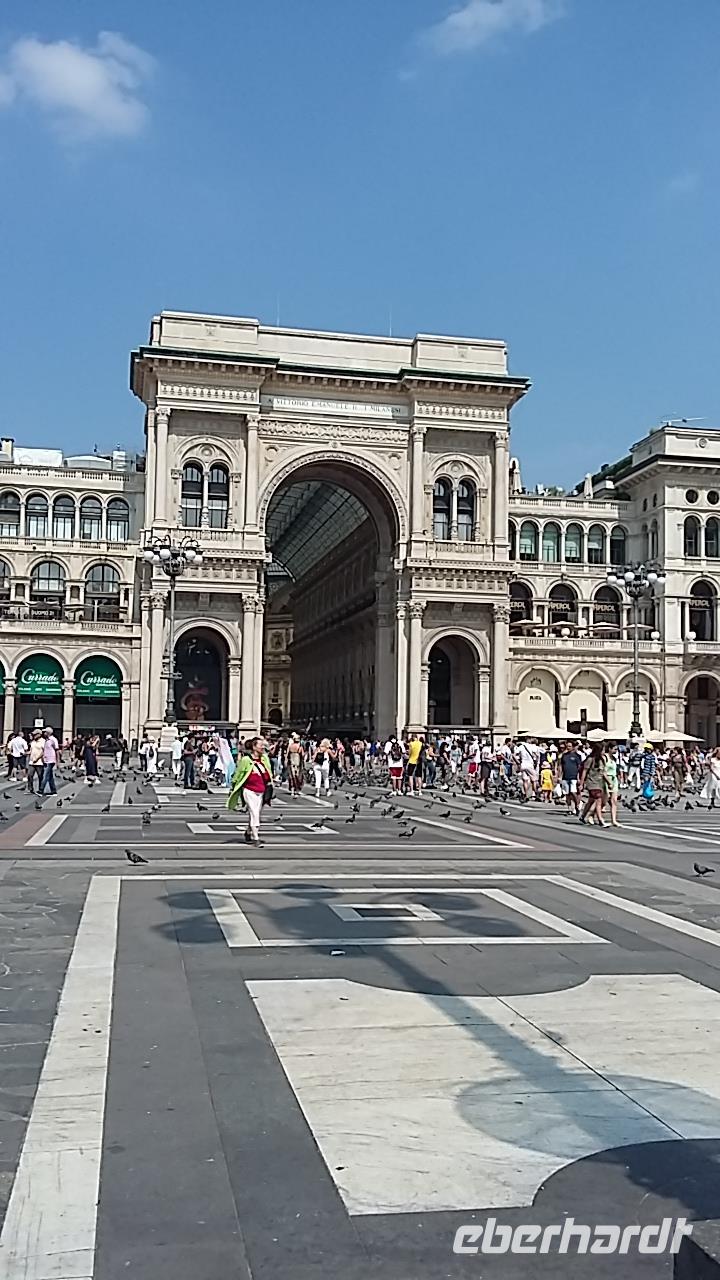 Mit dem Bus und dem örtlichen Reiseleiter starten wir zur kleinen Stadtrundfahrt. In Nähe der Mailänder Scala verlassen wir den Bus und gehen zu Fuß zum Piazza Della Scala, die Mailänder Scala ist der älteste im Original erhaltene Opernbau der Welt. Von außen etwas nüchtern das Bauwerk, begeistert uns die Scala mit einer prachtvollen Innenausstattung. Wir dürfen auch über die Balkone ins Allerheiligste der Scala, der Bühne und dem Zuschauersaal, blicken. Danach spazieren wir gemeinsam durch die edle Galleria Vittorio Emanuele II., prächtig mit Mosaiken ausgestattet und teuren Geschäften. Heute zum Sonntag sind nicht nur Touristen, sondern auch viele Einheimische hier unterwegs.