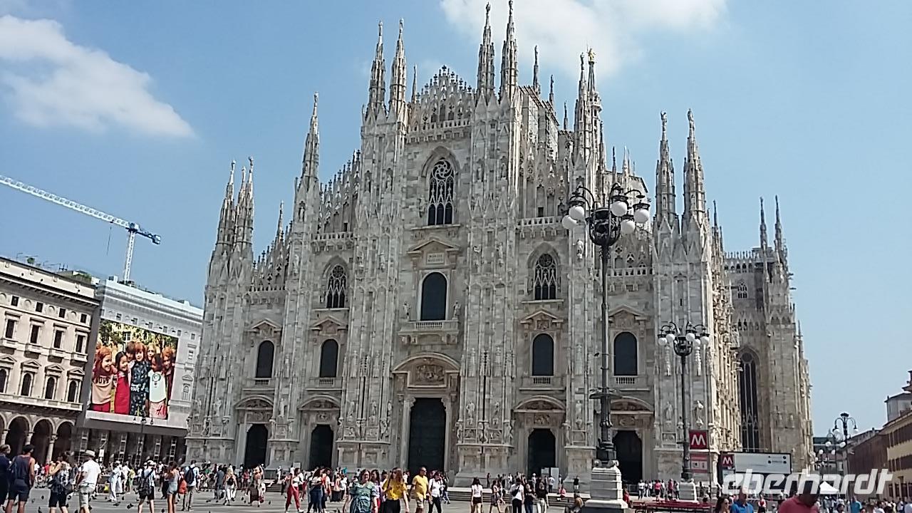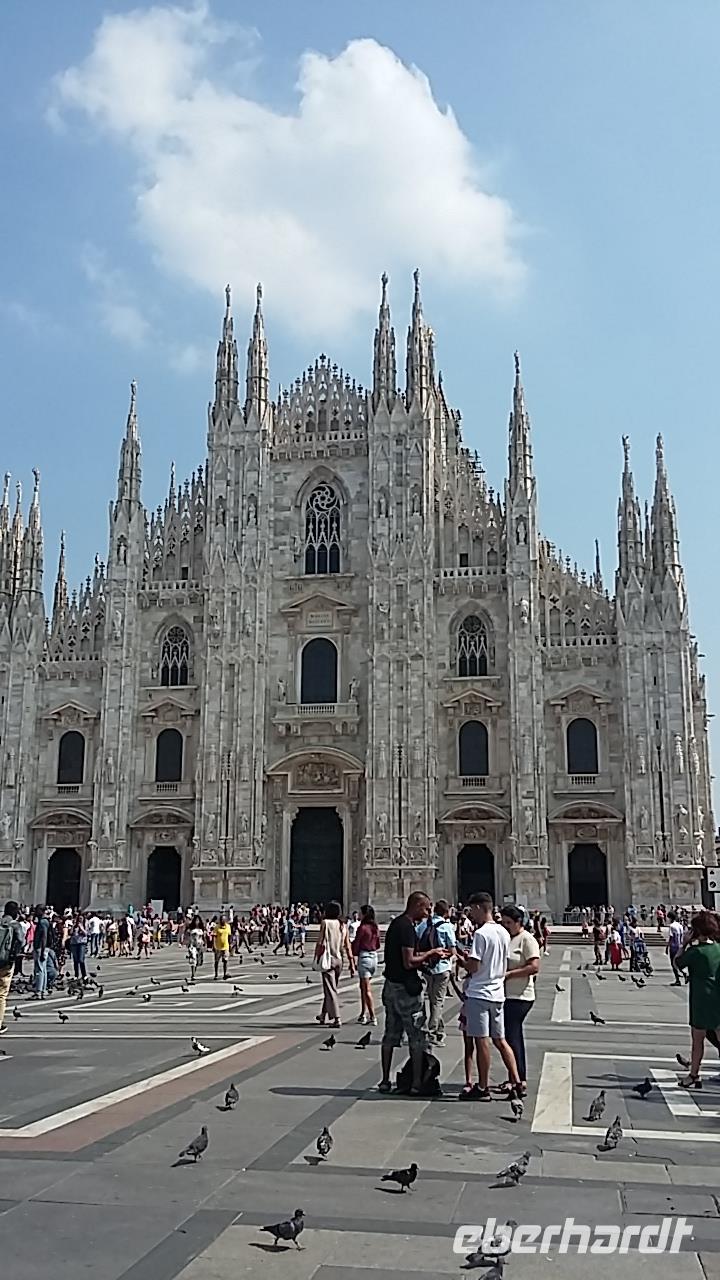 Wie Zuckerbäckerwerk wirkt der Duomo, auf seinem Vierungsturm in 108 m Höhe wacht die vergoldete Marienstatue als Symbolfigur Mailands über das Wohl der Stadt. Bis Anfang des 16. JH war der Mailänder Dom die größte Kirche der Welt. Die Freizeit nutzen wir zum Shoppen in der Modestadt Mailand, zum Bummeln und Genießen in gekühlten Restaurants und Geschäften bei der Hitze. In Nähe zur Scala werden wir wieder mit dem Bus abgeholt, Frank kommt pünktlich an. Nach Ankunft im Hotel, gehen einige Reisegäste in den Pool, die Abkühlung tut sehr gut