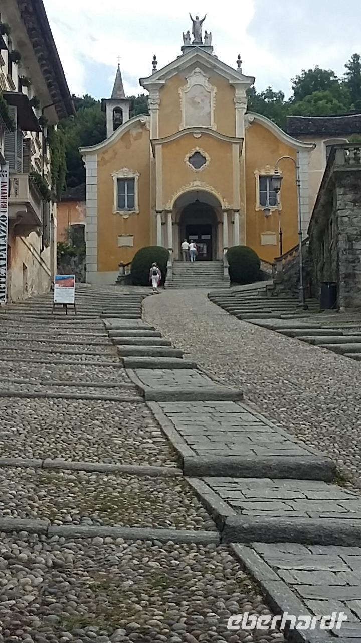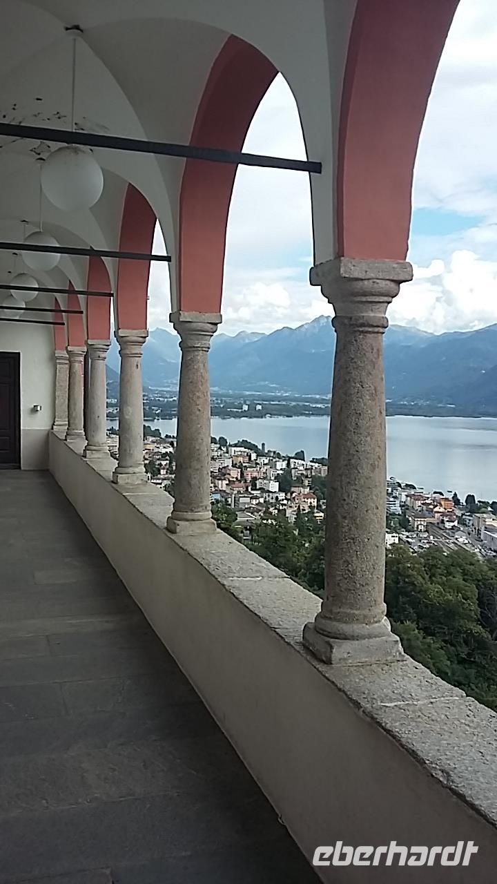 Anschließend erreichen wir Locarno, mit der Zahnradbahn fahren wir gemeinsam zur Wallfahrtskirche „Madonna del Sasso". Nur ein kleiner Spaziergang vom Ausstieg Santurio und wir sind in der Wallfahrtskirche. Man sagt, dass Bartolomeo, ein Franziskanerbruder, eine Andachtsstätte zur Würdigung der Jungfrau Maria auf dem „Felsen" Locarnos schaffen wollte. Unten in Locarno wieder angekommen nutzen wir die Freizeit zum Bummeln am Lago Maggiore, zum Eis essen und Kaffee trinken im noblen Ort.