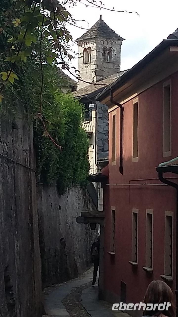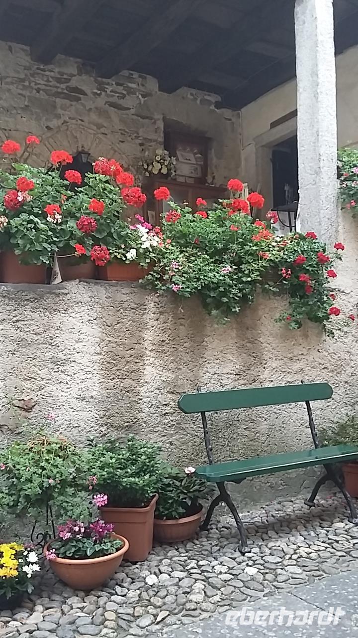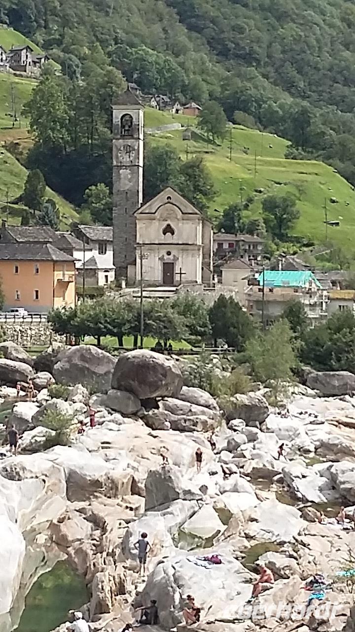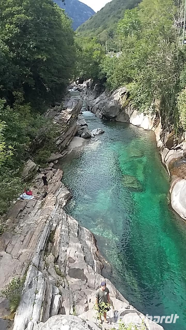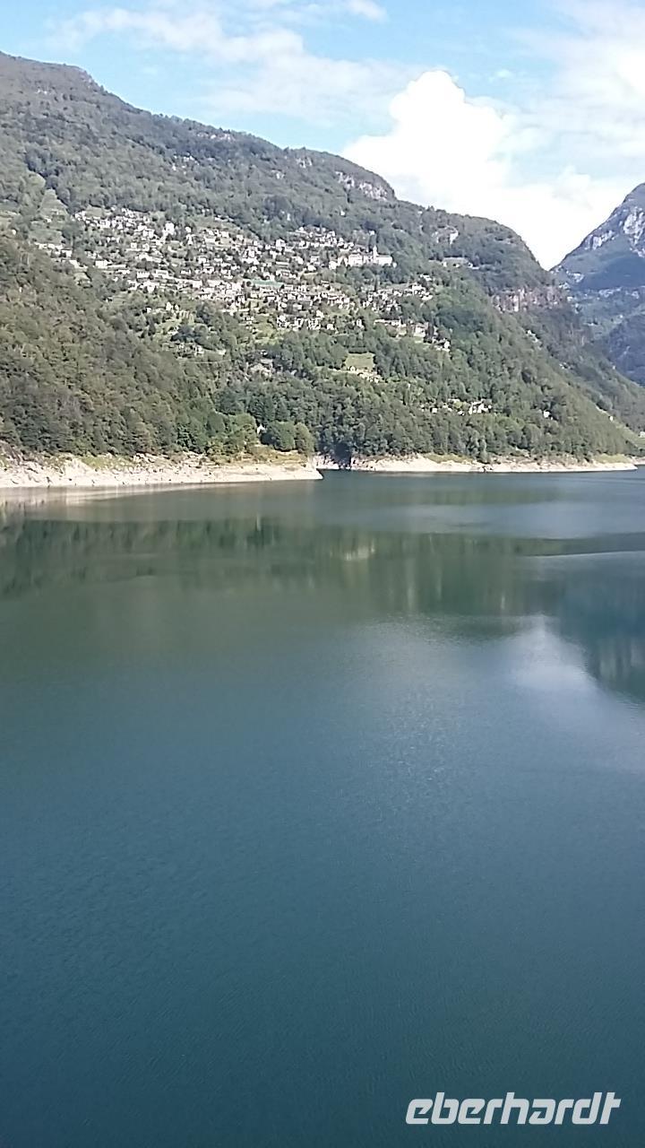 Wir sind hier am Lago Maggiore Glückskinder, verwöhnt mit tollem Wetter und die paar Regentropfen heute zwischendurch, haben nicht gestört. Entlang des Lago Maggiore fahren wir am Morgen, bei Brissagio passieren wir die Schweizer Grenze und fahren an Ascona und Locarno vorbei in das fantastische Verzascatal. Übersetzt heißt das Tal auch das grüne Wasser und das sehen wir zwischen sehr großen Steinen, die das Wasser glatt und rund gehobelt hat, dahinfließen. Unseren ersten Stopp legen wir an der Staumauer „La Selvatica" ein. Sie ist 220 Meter hoch und 380 m lang, wir spazieren auf ihr entlang. Von der Staumauer stürzte sich James Bond im Film „Golden Eye" in die Tiefe. Wir setzen unsere Fahrt im kurvenreichen Tal fort und der nächste Aufenthalt gilt dem Ort Sonogno auf 918 m Höhe auch das letzte Dorf des Tales. Typische Häuser im gut erhaltenen Ortskern und die schöne Bepflanzung mit Sommerblumen begeistert uns alle. Zurück auf Fahrt im Verzascatal kommen wir an der römischen 2 Bogen Brücke „Ponte die Salti" an. Diese schöne mittelalterliche Brücke aus Stein ruht auf einem natürlichen Granitpfeiler. Viele junge Leute tummeln sich am grünlich schimmernden Wasser zwischen den glatt geschliffenen Steinen und auch ein Reisegast unserer Gruppe testet bei einem Bad das eher frische Wasser im Fluß.