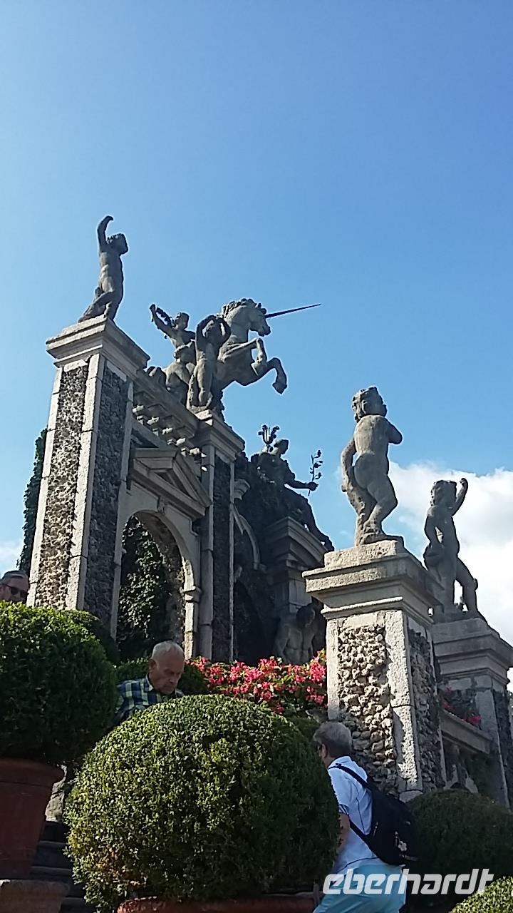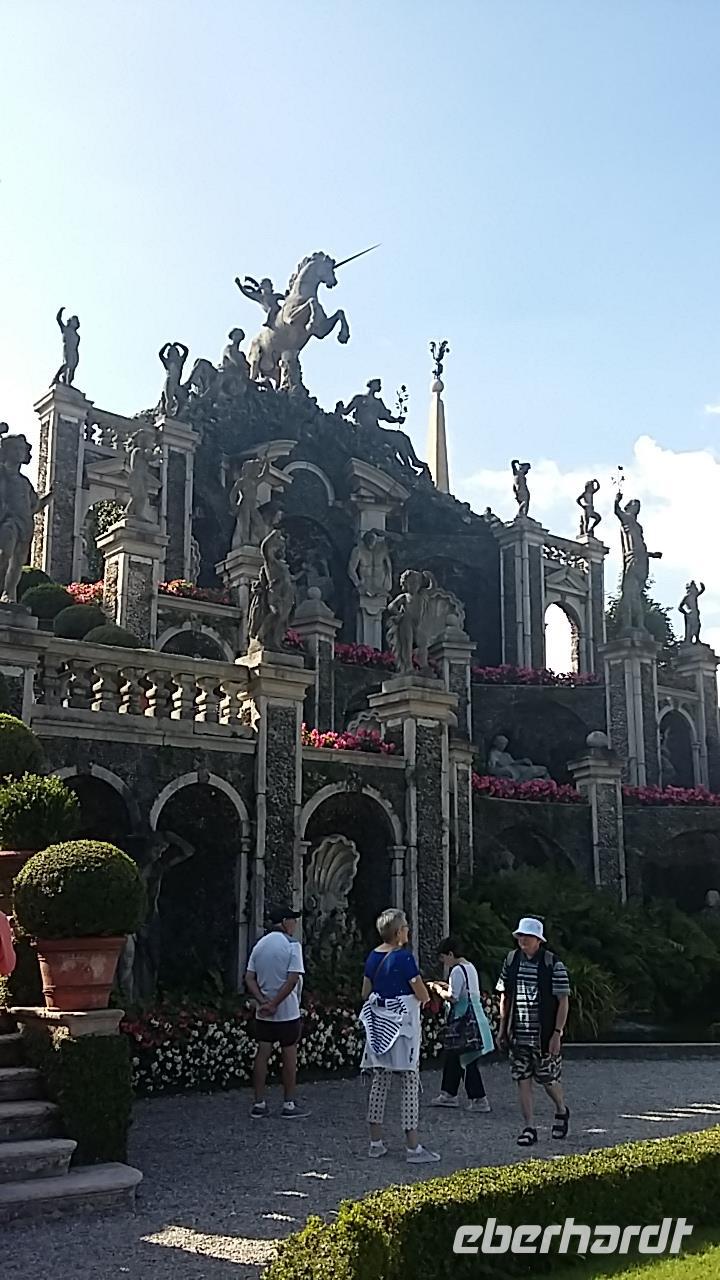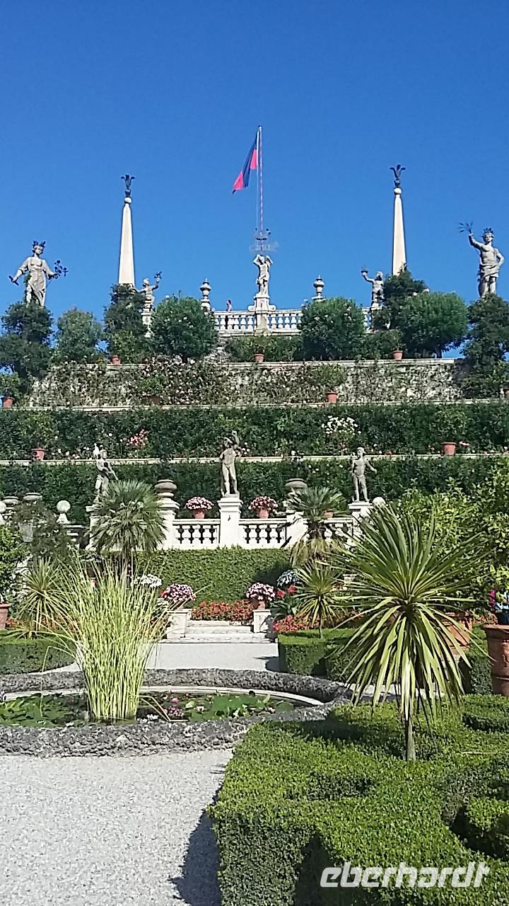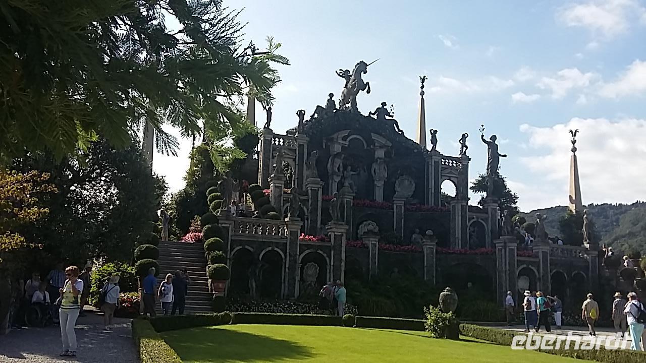 Herrlichen Sonnenschein und gute Laune haben wir wieder mit dabei und einen netten Kapitän mit Privatboot zur Überfahrt zur Isola Bella. Nach etwas Freizeit starten wir mit einer Führerin den Rundgang im Barocken Palast der Familie Borromeo, die Flagge ist zu sehen und das signalisiert das Dasein vor Ort der Familie. Krönen dürfen wir unseren Ausflug mit dem Besuch der Terrassengärten, die wie ein Schiff angelegt sind. Palmen, exotische Bäume und Statuen können wir beim Rundgang bewundern. Zurück am Anleger bringt uns das Boot zur Isola Pescatori, die Fischerinsel wollen wir zur Mittagszeit nutzen, um in den zahlreichen Restaurants typisch italienisch zu essen. Es lässt sich herrlich Bummeln auf dieser kleinen Insel. Sie ist die kleinste der drei Borromäischen Inseln, neben der kleinen Kirche stehen die alten Häuser der einfachen Leute, sie beherbergen heute Läden und viele Restaurants, die zum Verweilen einladen. Die Isola Madre, die Mutterinsel, erschließen wir uns mit Laura, sie führt uns über die Mutti Insel, wie sie die Insel bezeichnet. Das besonders milde Klima ermöglicht das Gedeihen einer erstaunlichen Pflanzenwelt, wir bewundern die teilweise sehr seltenen Pflanzen und alten Bäume aus den verschiedensten Ländern im Botanischen Garten. Im Palast des 16. JH. im Renaissancestil können über einhundert historisch wertvolle Gemälde und Einrichtungsgegenstände im Original bewundert werden. Unser netter Kapitän bringt uns zur vereinbarten Zeit wieder zurück an Land und fast all unsere Reisegäste fahren noch mit der Seilbahn hinauf auf den Hausberg von Stresa, den Mottarone. Es ist auch möglich, mit dem Sessellift bis hoch zum Gipfelkreuz zu fahren.