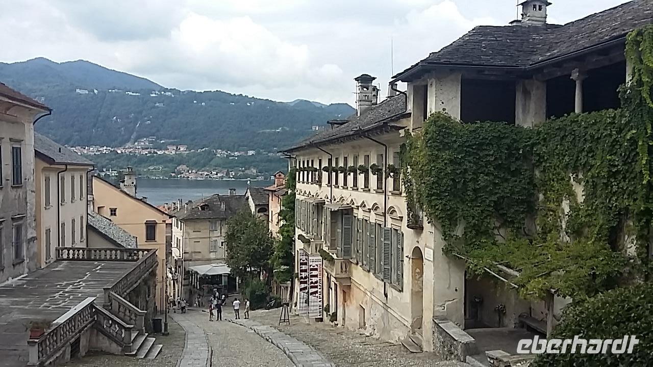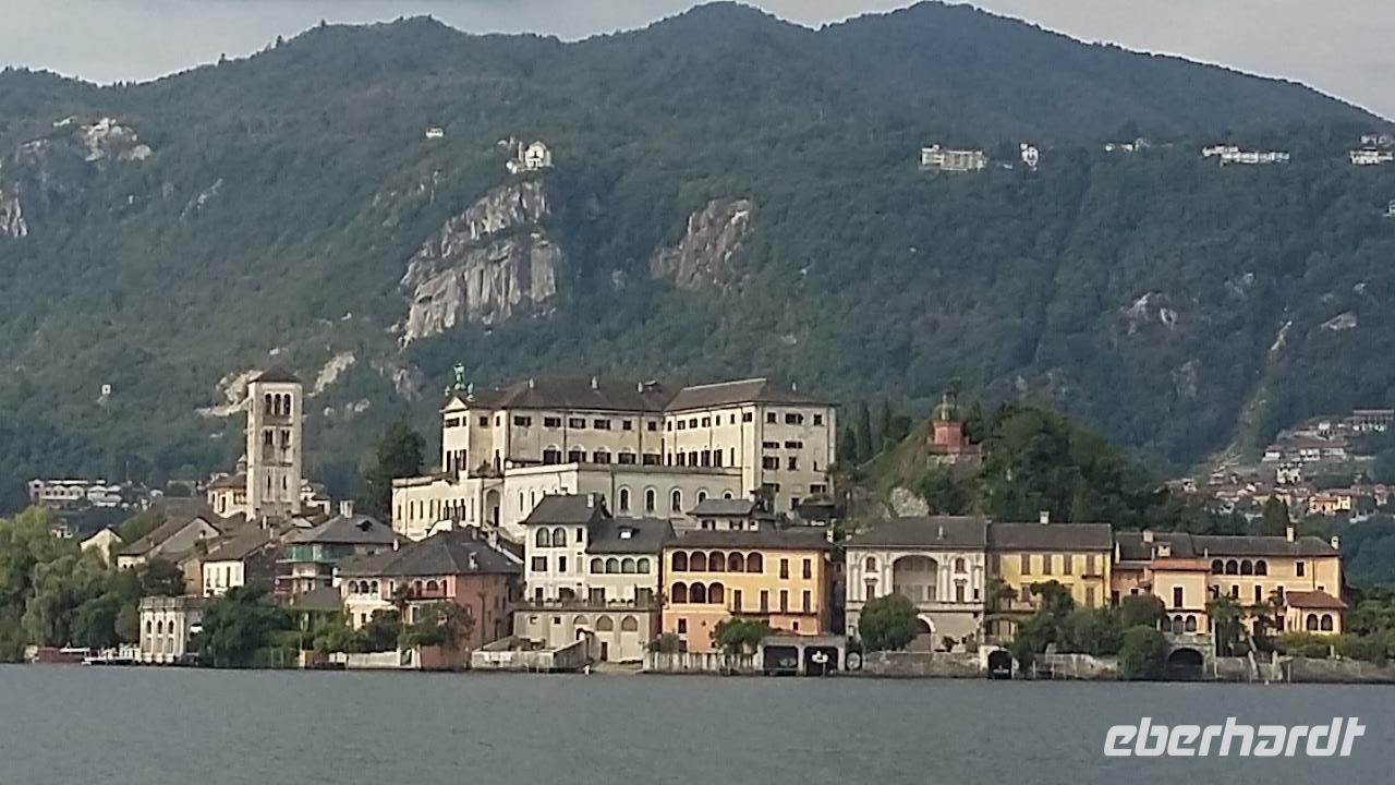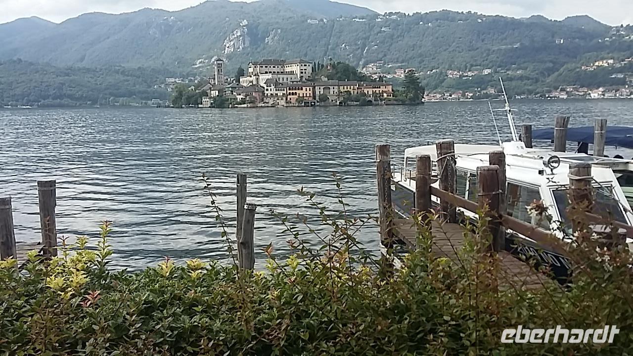 Unser erster Ausflug führt uns zum Ortasee, dieser See liegt westlich vom Lago Maggiore, ist dreizehn Kilometer lang und empfängt uns mit schönem Wetter. Mit dem Bus geht es bis nach Orta San Giulio, wir steigen am Parkplatz ins Zügli um und fahren bis hinein ins Zentrum des Ortes. In Nähe der Piazza Mario Motta steigen wir in ein Boot um, die Fahrt geht hinüber zur Isola San Giulio. Sie ist nach dem griechischen Diakon Julius, der hier im 4. JH lebte und eine kleine Kirche bauen ließ, benannt. Es ist die heutige romanische Basilika, sie hat in ihrem Inneren schöne spätmittelalterliche Fresken. Wir umrunden gemeinsam bei einem Spaziergang die kleine Insel. Zurück geht es wieder nach Orta mit dem Boot, hübsch das Zentrum, reich an Zeitzeugen der Vergangenheit, Palazzi und Kirchen können wir bewundern. Zurück zum Bus fährt uns wieder der kleine Zug, am Bus geben wir unseren Reisegästen noch einen Limoncello aus, ein typisch italienischer Likör. Am Nachmittag nutzen unsere Gäste ihre Freizeit zum Stadtbummel in Stresa, lokal sieht es nach Gewitter und Regen aus.