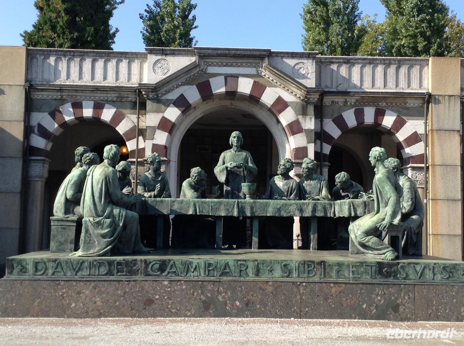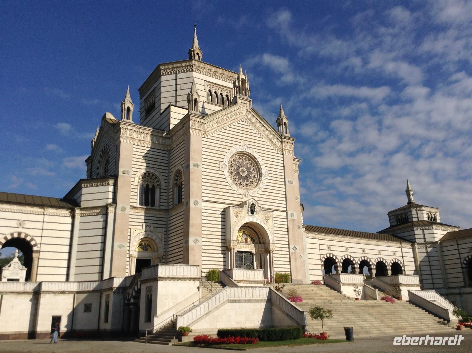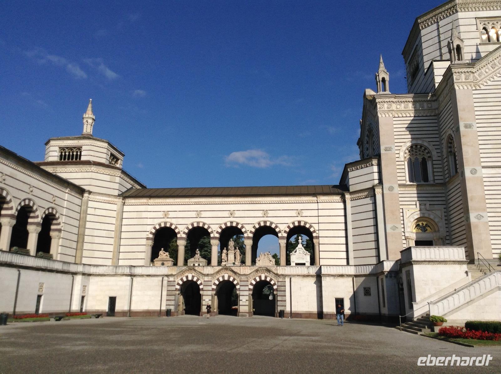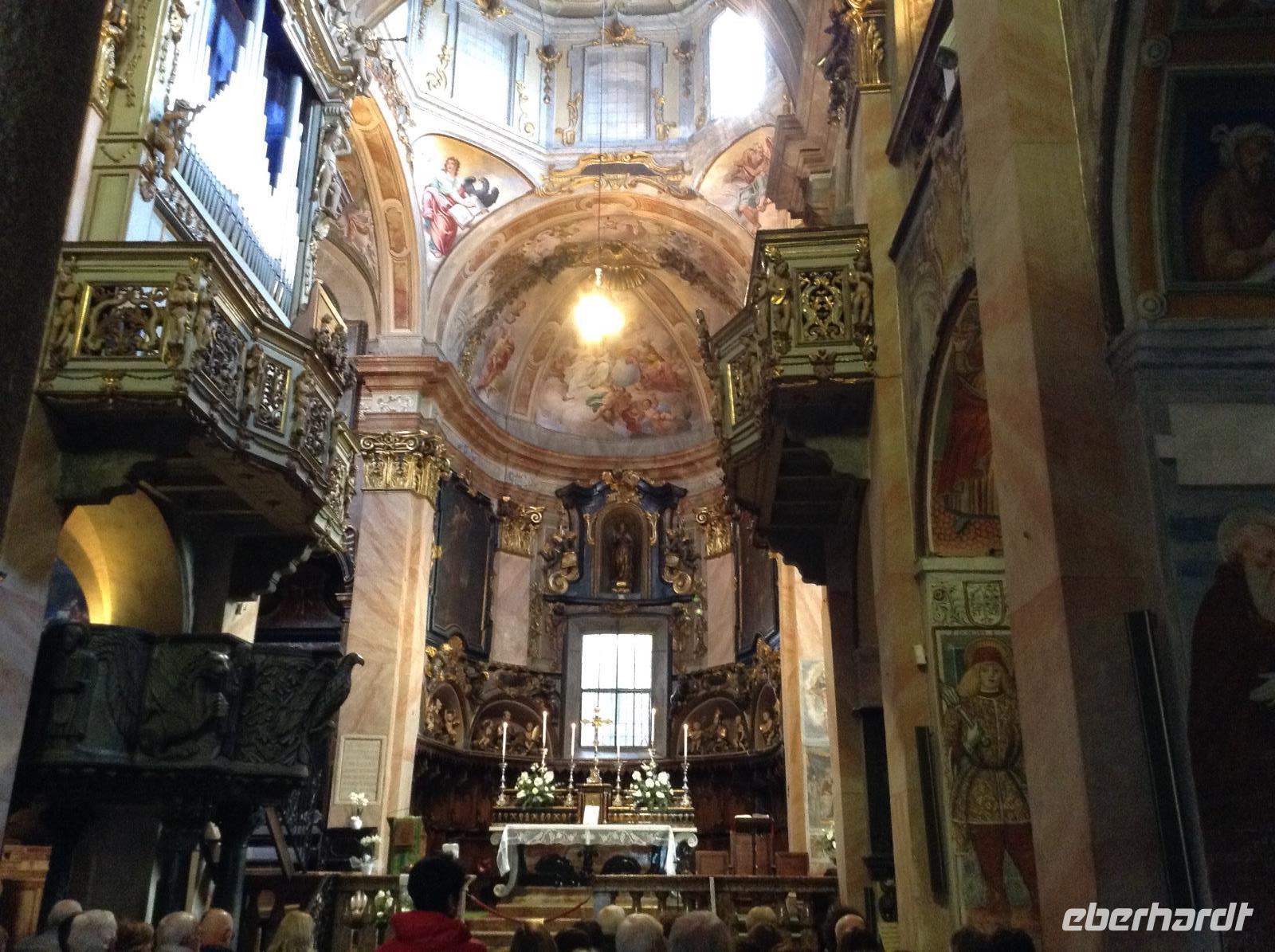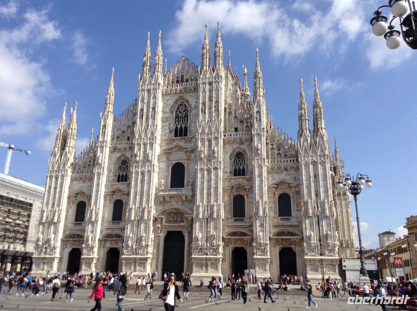 An diesem Morgen ging es nochmal etwas früher los, wir hatten die Hauptstadt der Lombardei auf dem Plan, Italiens Stadt Nummer 2: Mailand. Vor den Toren der Stadt gab es noch eine kurze Pause, dann stürzten wir uns ins Großstadtgewühl. Unser heutiger örtlicher Reiseleiter empfing uns am Monumentalfriedhof, etwas außerhalb des Stadtzentrums. Wir besuchten gemeinsam diesem durchaus sehr interessanten Friedhof mit gewaltigen Grabanlagen und einer mächtigen, schönen Gedächtnishalle und erfuhren so einige interessante Geschichten um die Grabstätten und ihre Eigentümer. Im Anschluß ging es mit dem Bus durch verschiedene Viertel der Stadt, ehe wir an der Mailänder Scala den Bus verließen. Ein Besuch dieser altehrwürdigen Hallen standen an und wir hatten Glück, auch einen Blick ins Innere des berühmten Opernhauses wagen zu dürfen. Später bummelten wir zu Fuß durch die wunderschöne Einkaufspassage Viktor Emanuele hin zum Mailänder Dom. Der Platz und die Außenfassaden waren überwältigend, wunderschön und einzigartig. Wir genossen den Anblick und bekamen noch diverse Details genau erklärt. Anschließend war Freizeit für alle, einige wollten den Dom natürlich auch von innen besichtigen und wir besorgten Eintrittskarten. Es gab viel noch anzuschauen, aber für alles in Mailand reichte die Zeit an diesem Tag nicht aus.