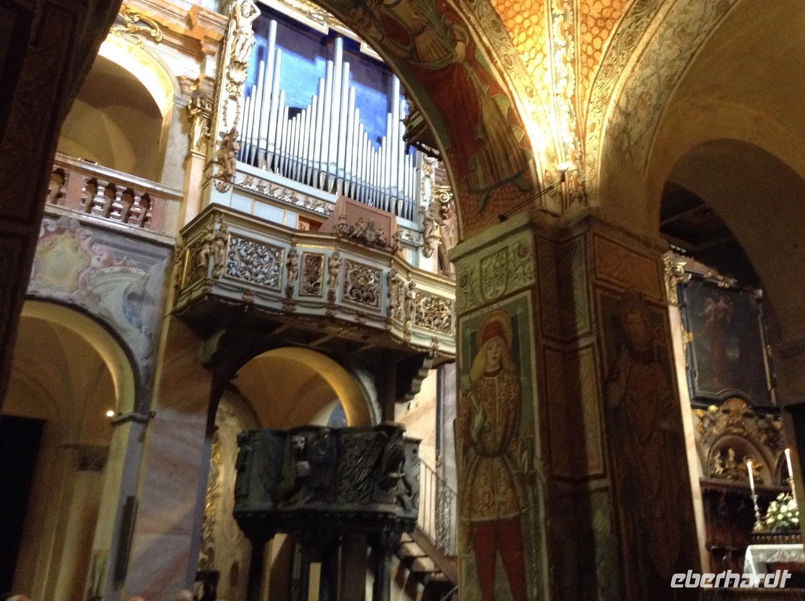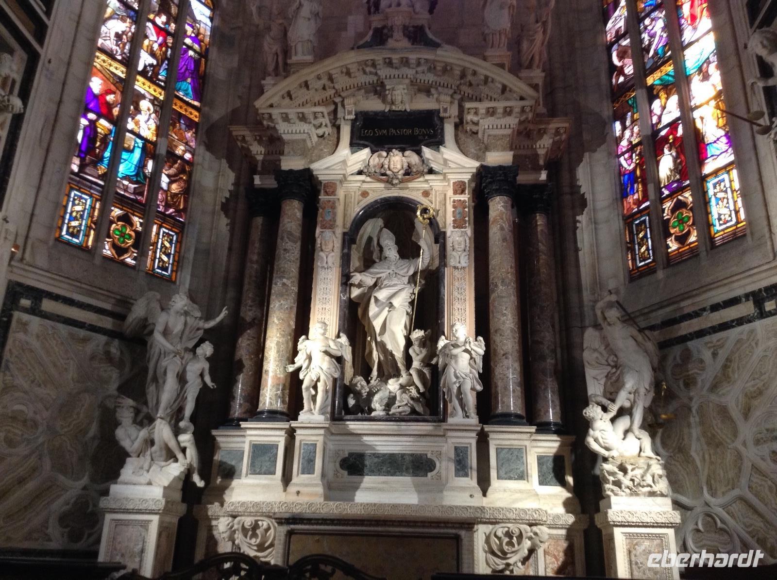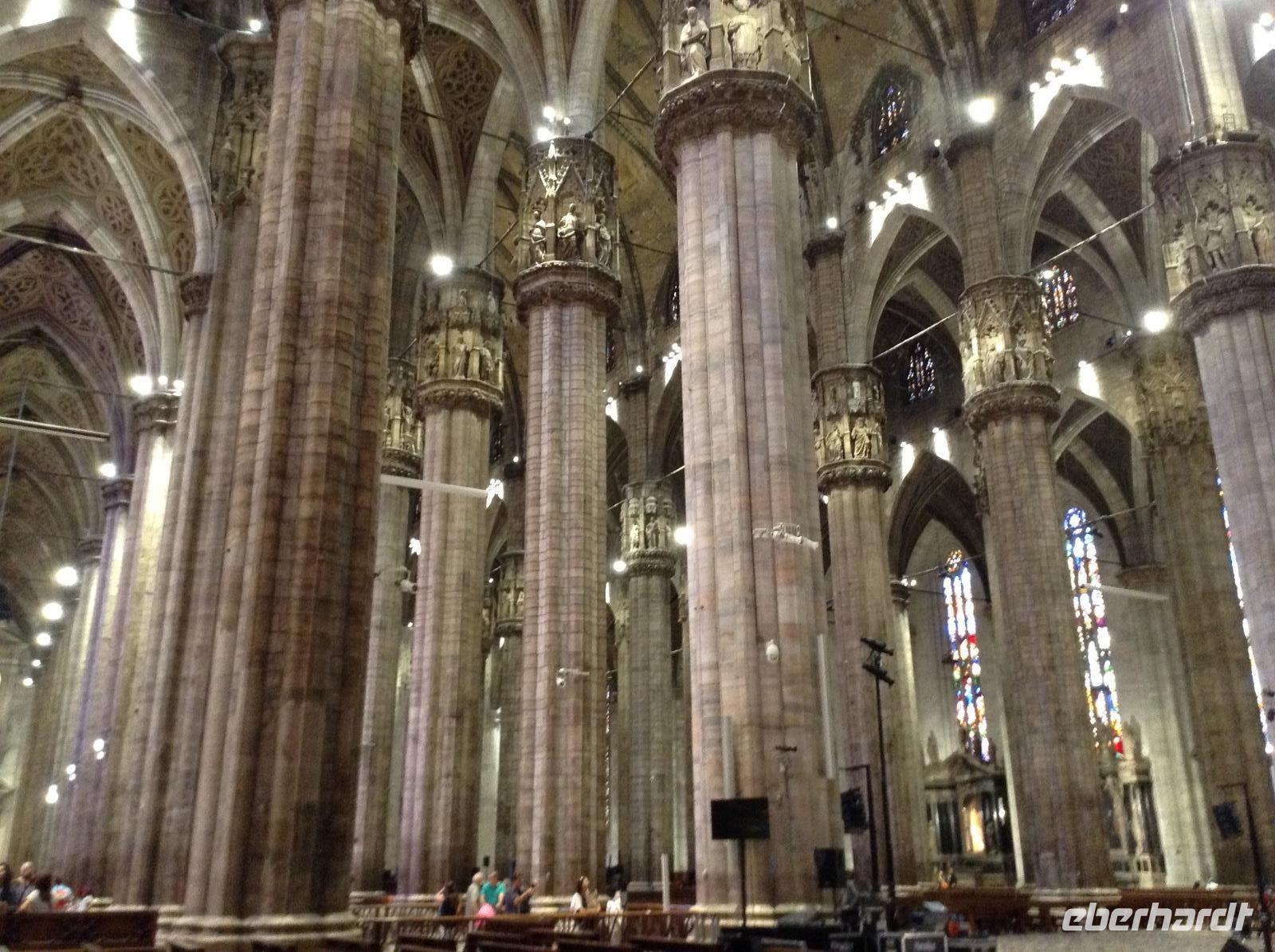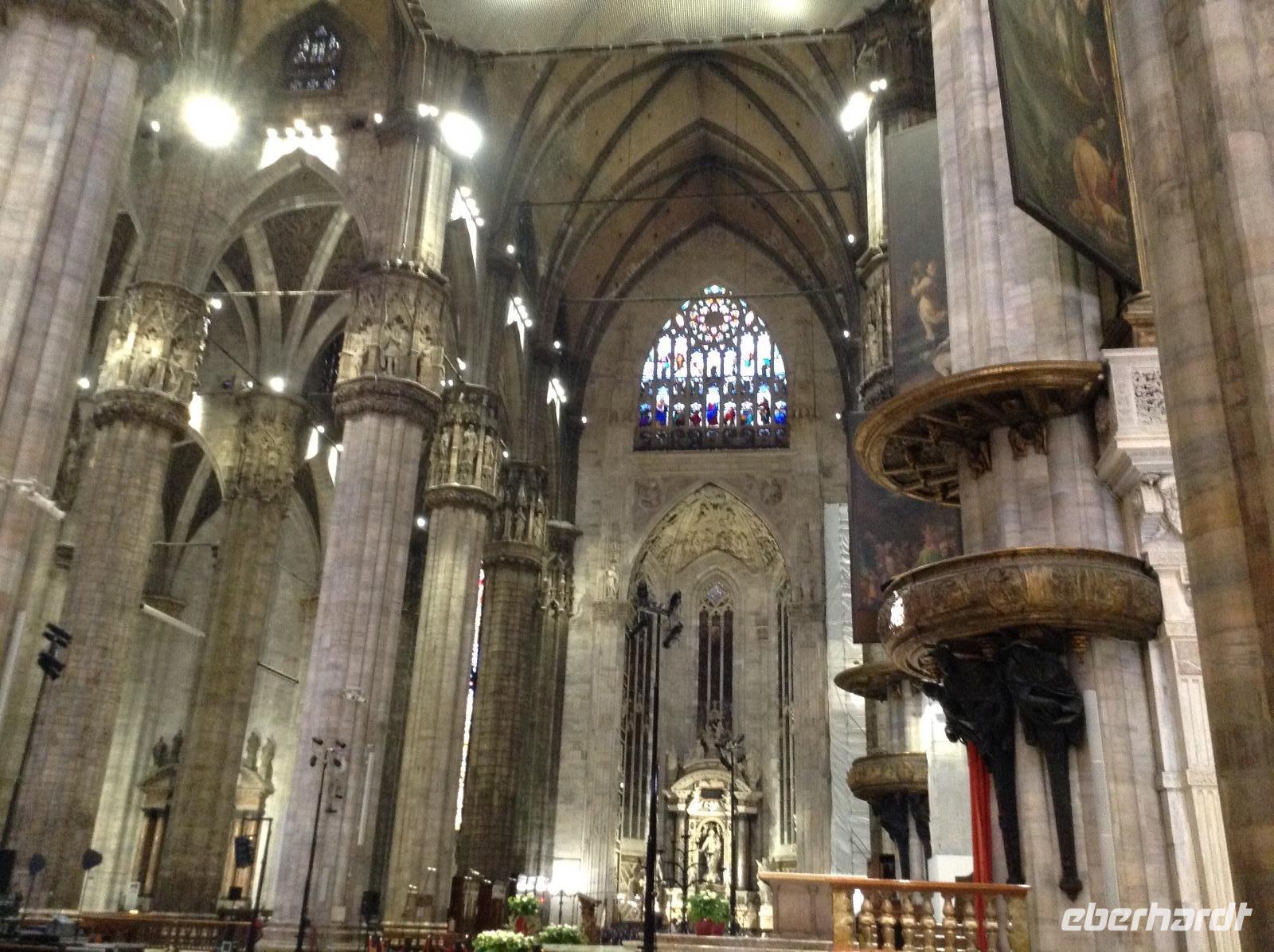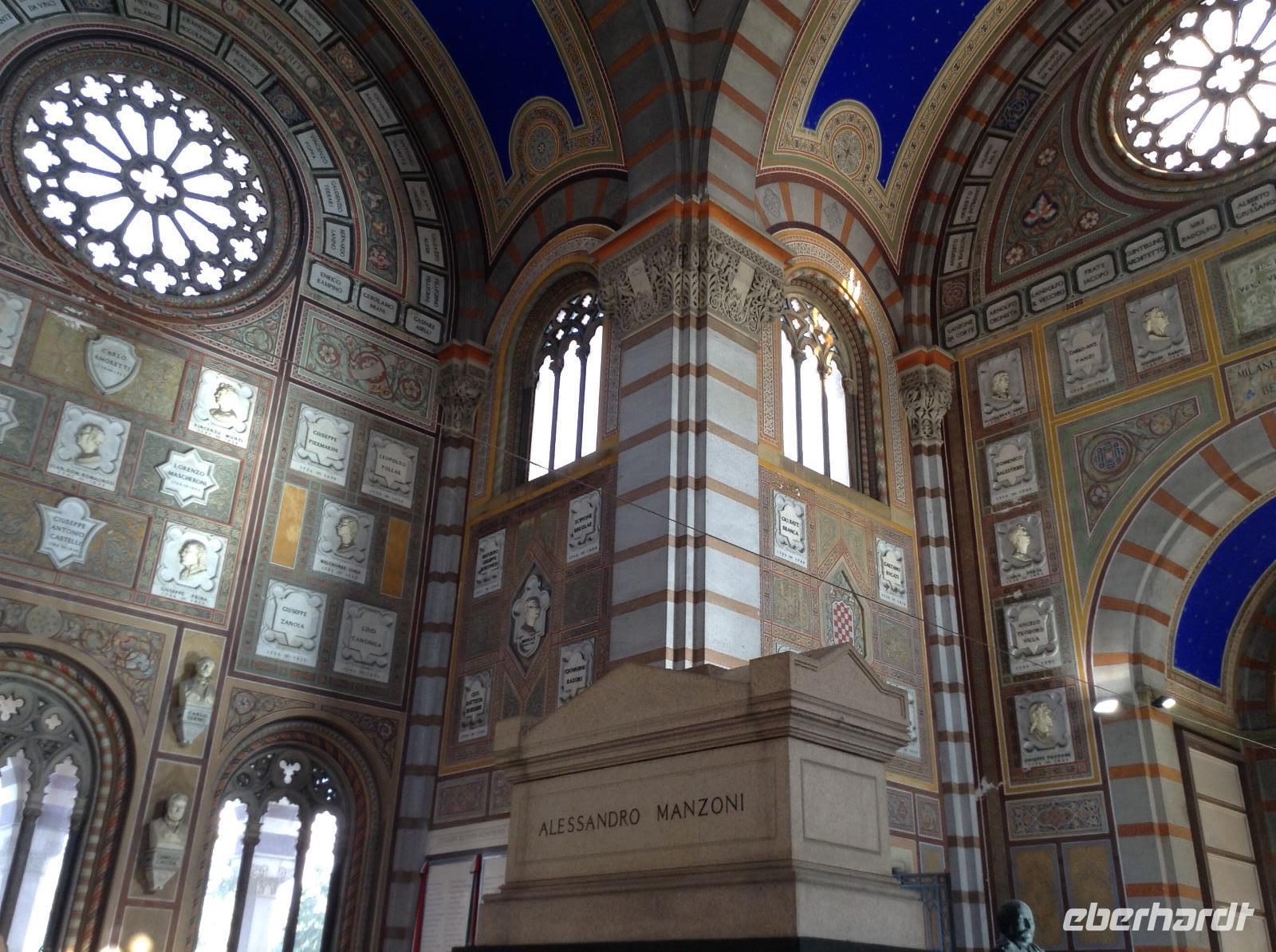 An diesem Morgen ging es nochmal etwas früher los, wir hatten die Hauptstadt der Lombardei auf dem Plan, Italiens Stadt Nummer 2: Mailand. Vor den Toren der Stadt gab es noch eine kurze Pause, dann stürzten wir uns ins Großstadtgewühl. Unser heutiger örtlicher Reiseleiter empfing uns am Monumentalfriedhof, etwas außerhalb des Stadtzentrums. Wir besuchten gemeinsam diesem durchaus sehr interessanten Friedhof mit gewaltigen Grabanlagen und einer mächtigen, schönen Gedächtnishalle und erfuhren so einige interessante Geschichten um die Grabstätten und ihre Eigentümer. Im Anschluß ging es mit dem Bus durch verschiedene Viertel der Stadt, ehe wir an der Mailänder Scala den Bus verließen. Ein Besuch dieser altehrwürdigen Hallen standen an und wir hatten Glück, auch einen Blick ins Innere des berühmten Opernhauses wagen zu dürfen. Später bummelten wir zu Fuß durch die wunderschöne Einkaufspassage Viktor Emanuele hin zum Mailänder Dom. Der Platz und die Außenfassaden waren überwältigend, wunderschön und einzigartig. Wir genossen den Anblick und bekamen noch diverse Details genau erklärt. Anschließend war Freizeit für alle, einige wollten den Dom natürlich auch von innen besichtigen und wir besorgten Eintrittskarten. Es gab viel noch anzuschauen, aber für alles in Mailand reichte die Zeit an diesem Tag nicht aus.