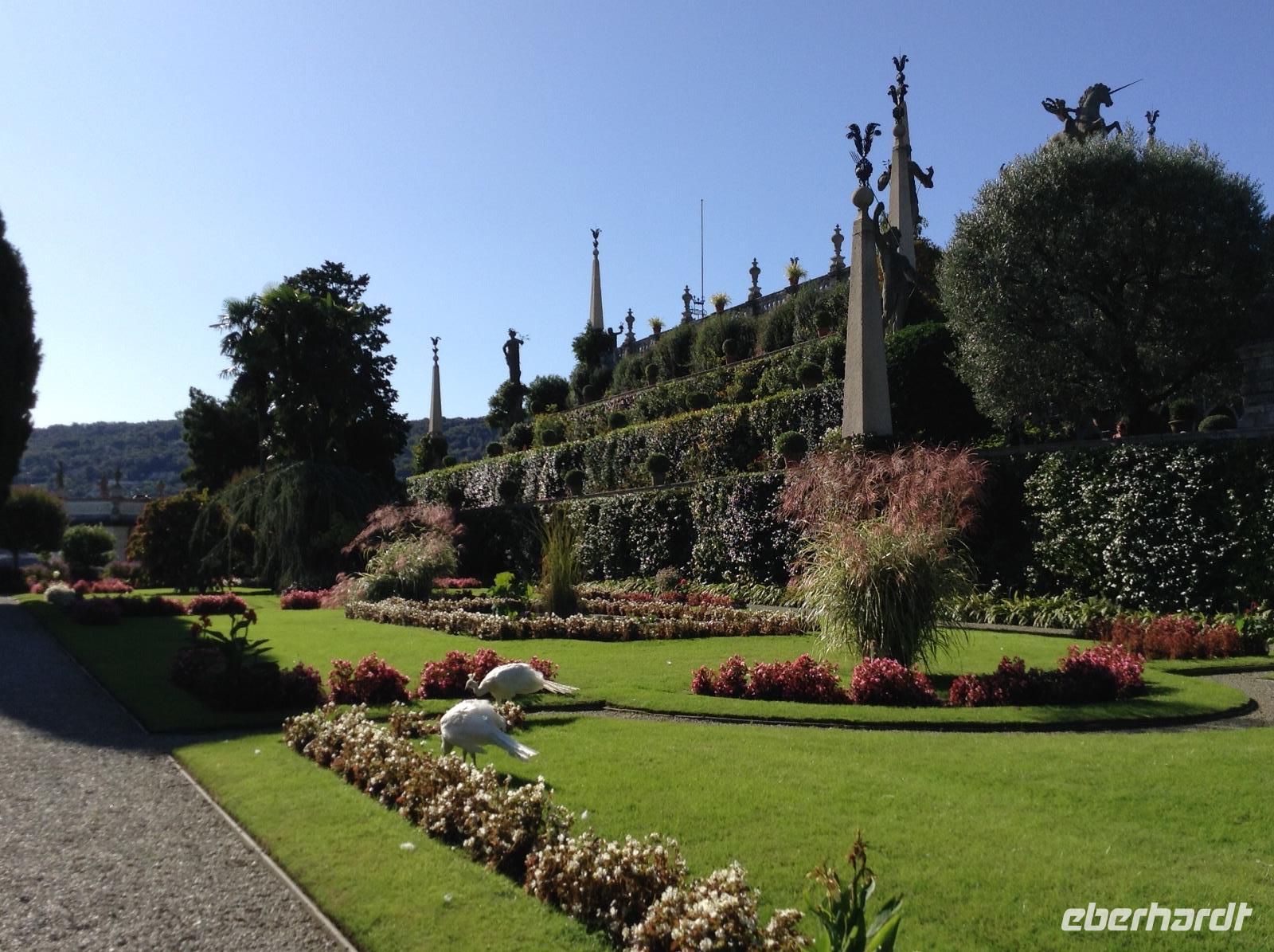 Auf Grund der sehr günstigen Lage unseres Hotel genau gegenüber der 3 Inseln wurde es ein völlig busfreier Tag für uns. Gemeinsam spazierten wir zur nahe liegenden Bootsanlegestelle. Unser Boot stand bereit, es ging hinüber zur Isola Bella. Noch war es sehr ruhig auf der Insel und wir genossen die herrliche Aussicht und die Morgensonne. Dann ging zur Besichtigung des ersten Anwesens der Familie Borromäo, sehr beeindruckend, voller Prunk und familiärer Reichtümer. Durch die einzigartigen Grotten des Hauses ging es hinaus in die bezaubernde Gartenanlage. Wir genossen die freie Zeit und schauten uns um. Später kam wieder unser Boot und zur Mittagsszeit legten wir auf der Insel der Fischer an. Auch da lohnten sich die kleinen Abstecher, es gab viel zu entdecken. Später ging es hinüber zur Insel Madre, die Mutterinsel und größte dieser 3 Inselchen im Lago Maggiore. Ein typischer Italiener stellte uns mit seinem Charme diese Insel und das Anwesen vor. Es war ein wunderschöner Besuch eines einzigartigen Gartens mit seltenen Vögeln, seltenen Pflanzen und einem weiteren Anwesen der Familie Borromäo. Auch da gab es noch Zeit für weitere Entdeckungen. Am Nachmittag holte uns unser Boot wieder ab und brachte uns an Land. Einige Gäste nutzen das perfekte Wetter an diesem Tag für eine Auffahrt auf den Monte Mattarone, dem Hausberg von Stresa. Alle, die oben waren, wurden mit einer gigantisch schönen Aussicht belohnt.