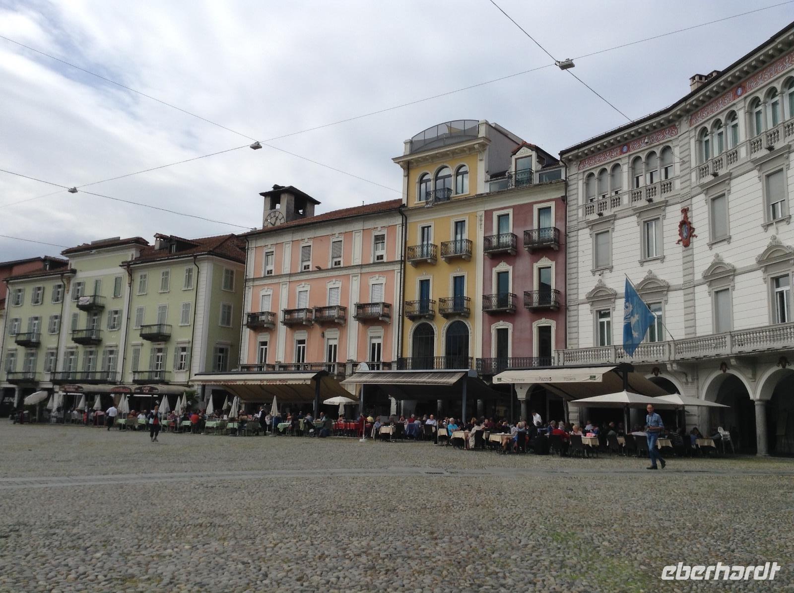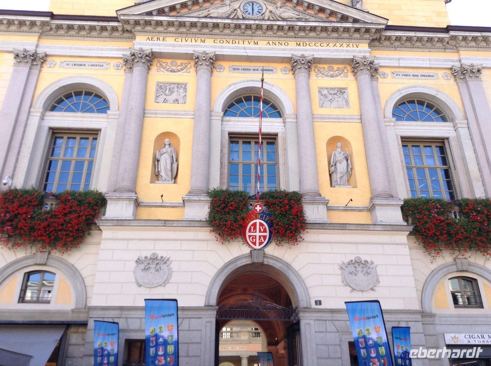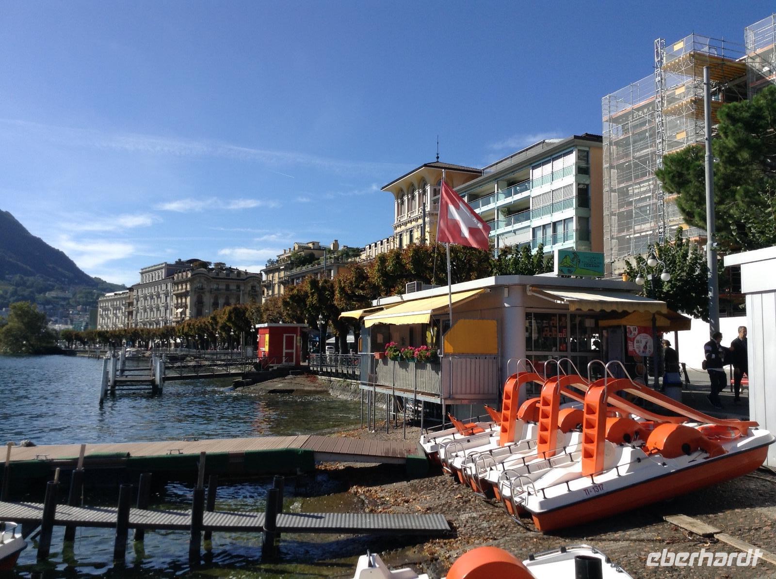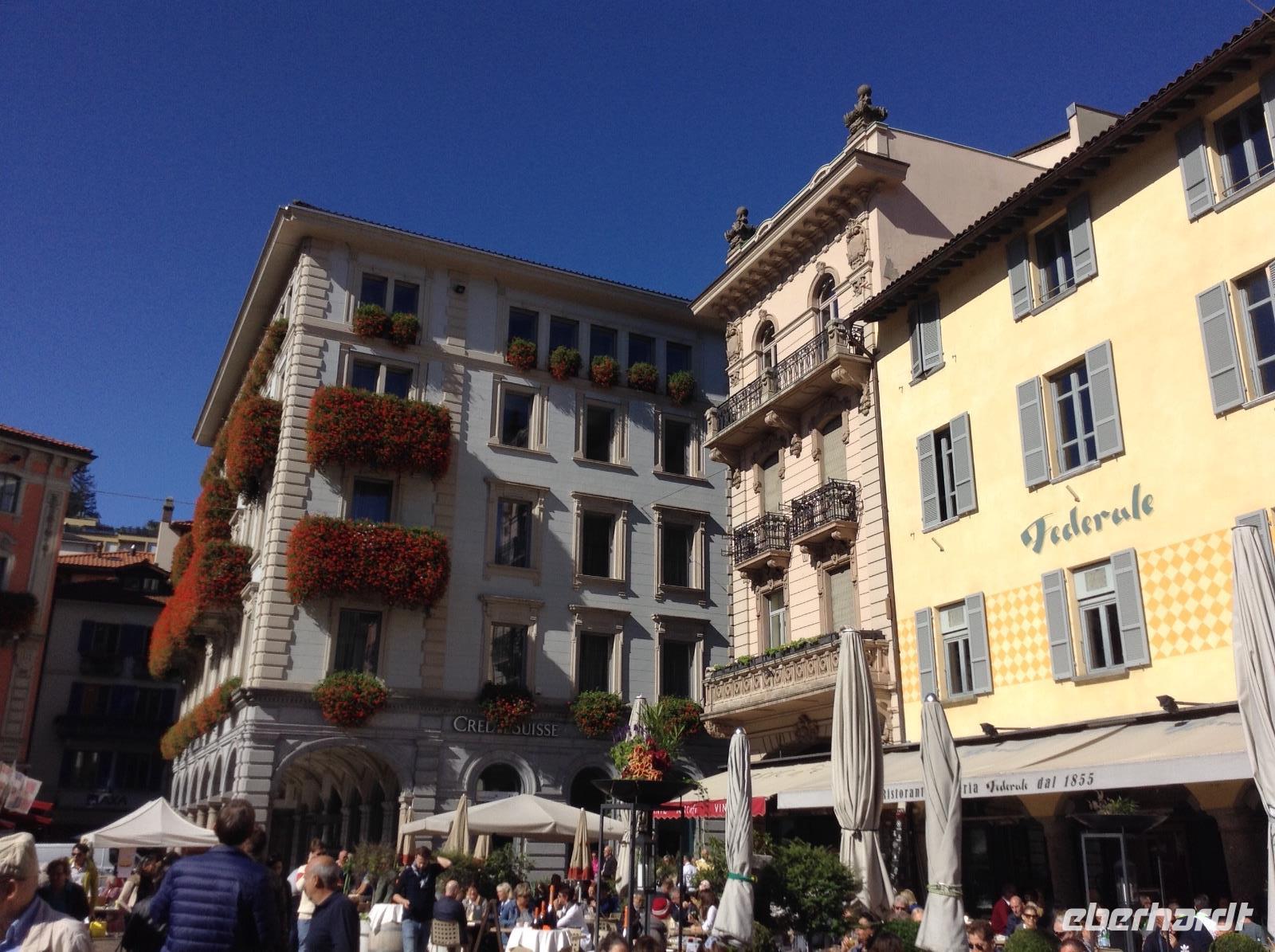 Wieder war es ein sonnenverwöhnter Tag, zwar früh noch etwas frisch, dann aber wunderschön. Wir fuhren in der Morgensonne den See entlang bis Locarno, die Strecke kannten wir nun schon, aber sie ist immer wieder bezaubernd. An Locarno und Bellinzona vorbei, ging es nach Lugano über die Autobahn. Unser Bus brachte uns bis zur Uferpromenade. In Lugano war Herbstfest und dieAltstadtgassen waren voller Stände und Besucher. Wir spazierten durch das Gedränge oder genossen die tolle Aussicht entlang der Uferpromenade. Später ging es wieder von der Schweizer Seite zurück nach Italien, Wir kamen am Comer See an und bei Caddenabbia hatten wir unsere Überfahrt nach Bellagio.