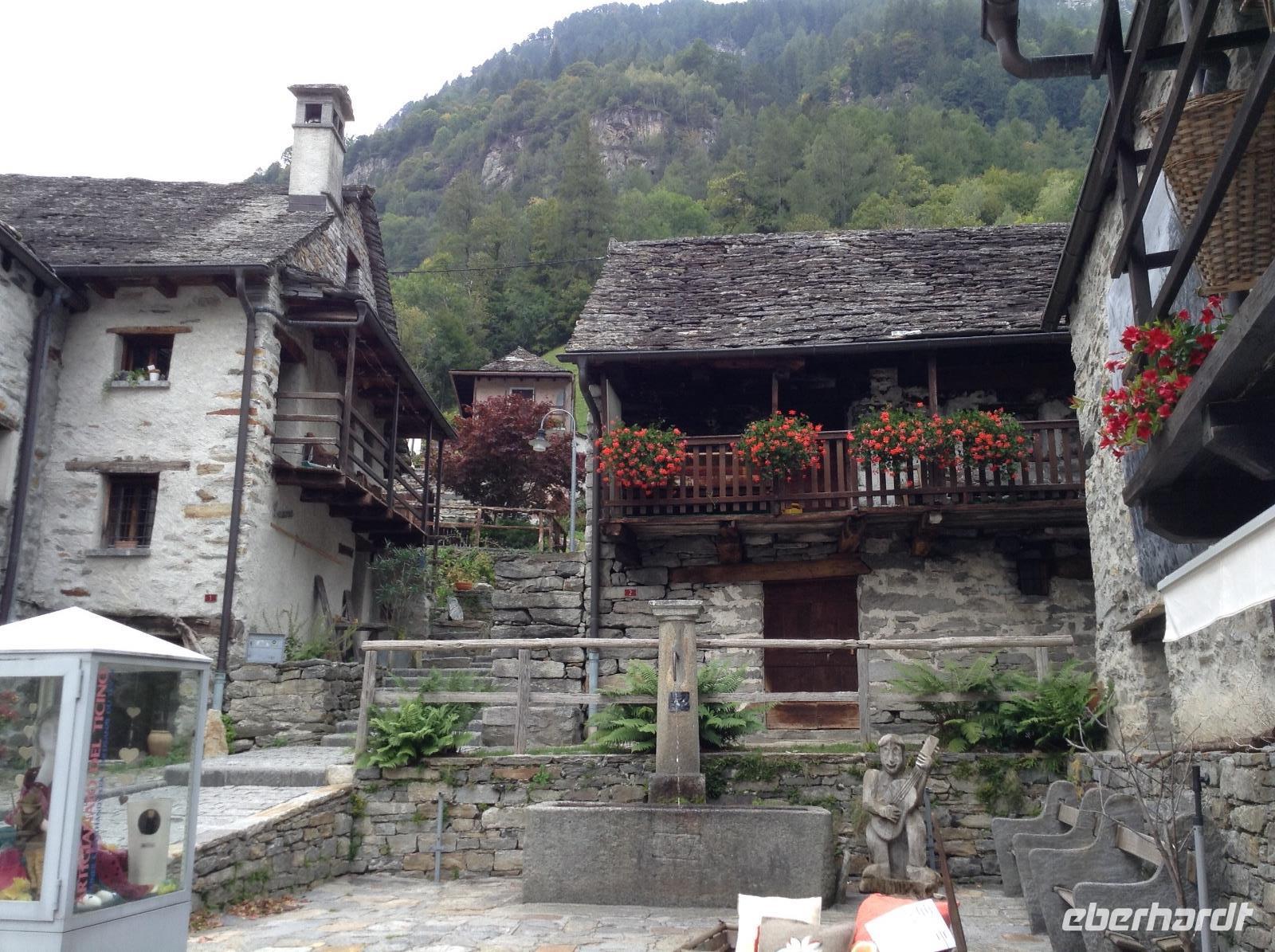 Bei herrlichem Wetter genossen wir die ins warme sonnige Morgenlicht getauchte Stimmung am See. Es ging in nördlicher Richtung nach Locarno. Auf der Schweizer Seite angekommen, war unser erstes Tagesziel nicht mehr weit. In der Nähe des Bahnhofes konnten wir parken und dann ging es zu Fuß zur Zahnradbahn, die uns hinauf brachte zum Kloster und Kirche Madonna del Sasso. Von oben bestaunten wir nicht nur die alte Franziskaner- Anlage, sondern auch die wunderschöne Kirche. Es gab eine tolle Aussichtsterasse mit Blick auf Locarno und den See. Später gab es freie Zeit, uns ein wenig in Locarno umzuschauen. Nach dem Mittag holte uns der Bus im Ortszentrum ab und wir fuhren in eines der schönsten Tessiner Täler, ins Verzascatal. Kleine hübsche Ortschaften aus grauen Granithäuschen durchquerten wir auf unserem Weg. Vorbei an der tiefsten Staumauer der Welt, vorbei an uralten Steinbrücken erreichten wir Sonogno, den Ort am Talende. Dort gingen wir ein wenig spazieren, schauten uns im hübschen Ort um, besuchten die kleinen Lädchen und Imbisstuben. Auf unserem Rückweg durchs Tal hatten wir dann doch noch kurz die Möglichkeit, am Staudamm zu halten für einen Fotostop. Später fuhren wir am See entlang zurück zum Hotel in Stresa.