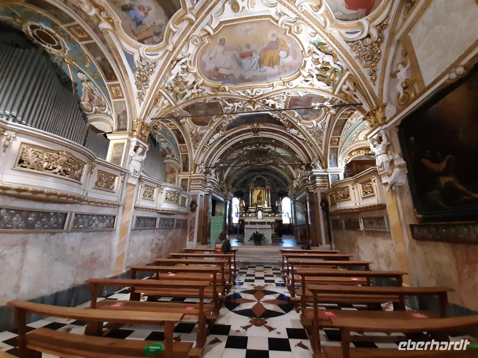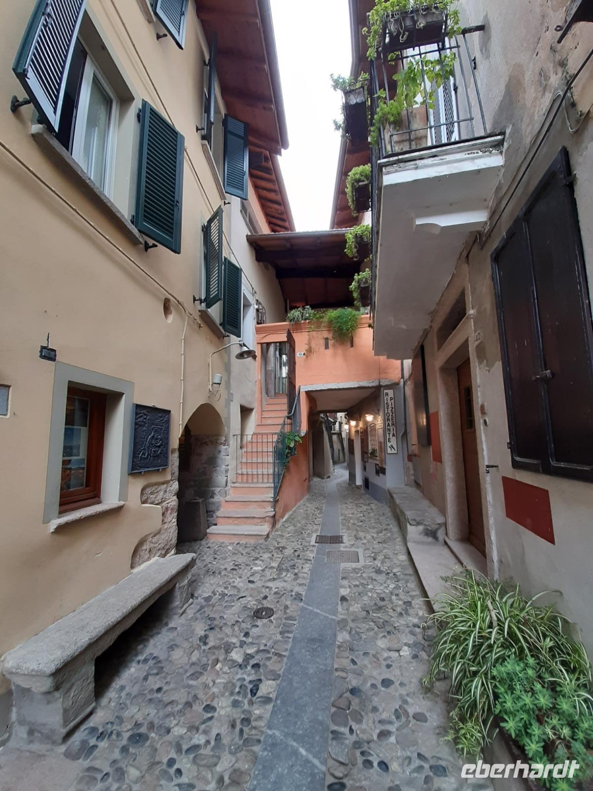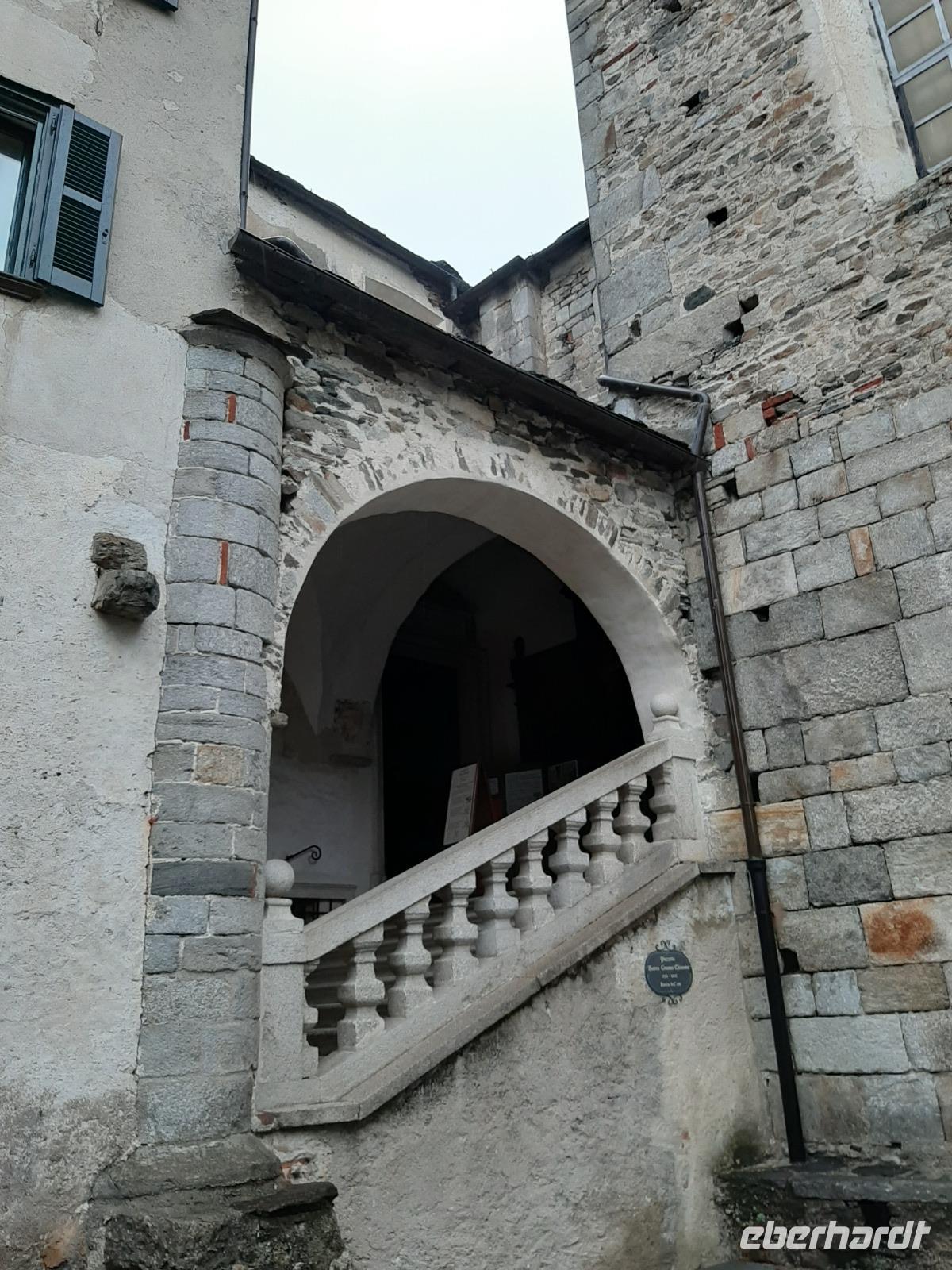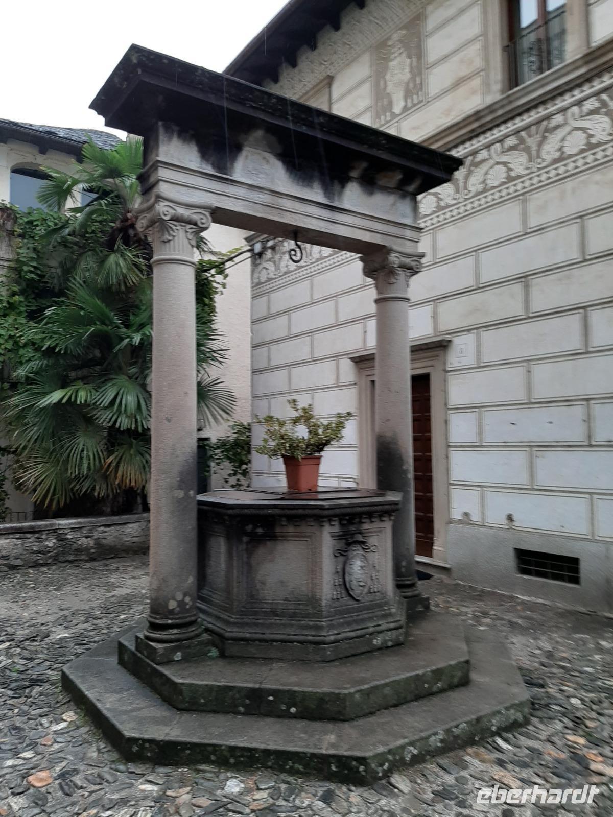 An unserem letzten Ausflugstag zeigte sich der Himmel wolkenverhangen und es regnete! Trotzdem brachen wir zum Ortasee auf, welcher westlich vom Lago Maggiore liegt und durch den Monte Mottarone vom Lago Maggiore getrennt ist. Es ist übrigens der einzige See in Norditalien, der keinen Abfluss nach Süden hat. Der von waldreichen Hügeln gerahmte See ist mit reichlich 18 Quadratkilometern zwar einer der kleinsten, aber auch einer der reizvollsten der Oberitalienischen Seen. Unsere Fahrt führte am Ostufer des Ortasees entlang zu der auf einer Landzunge gelegenen Siedlung Orta San Giulio. Mit einem kleinen Zug fuhren wir gemeinsam in die Stadt, denn unser Bus musste ziemlich weit außerhalb parken. Alle Treppenwege und Gässchen führen zur zentralen Piazza Motta, die von alten Palazzi mit Arkadengängen gesäumt wird und sich zum See mit Blick auf die kleine Isola di San Giulio öffnet. Wir hatten Glück, denn trotz der heftigen Windböen fuhren die kleinen Schiffe zur Insel hinüber! Diese wird beherrscht vom imposanten Bischofspalast, heute Priesterseminar und der Basilica di San Giulio. Der Legende zufolge wurde die Kirche im 4. Jahrhundert vom heiligen Julius gegründet, der das Eiland von Schlangen und Feuer speienden Drachen befreit hatte. Die dreischiffige romanische Emporenbasilika geht auf das 12. Jahrhundert zurück, im weitgehend barockisierten Inneren bewahrt sie mit der reich skulptierten schwarzen Marmorkanzel ein Meisterwerk romanischer Bildhauerei. Wieder zurück auf dem Festland hatten wir noch etwas Zeit für einen ausgiebigen Bummel durch Orta San Giulio, bevor es mit dem kleinen Zug zum Busparkplatz zurück ging. Den Nachmittag wollten wir eigentlich ganz gemütlich bei Kaffee und Eis in Stresa verbringen, aber es setzte ein unglaublicher Starkregen ein, der uns dazu zwang, vorzeitig nach Baveno zurückzukehren.