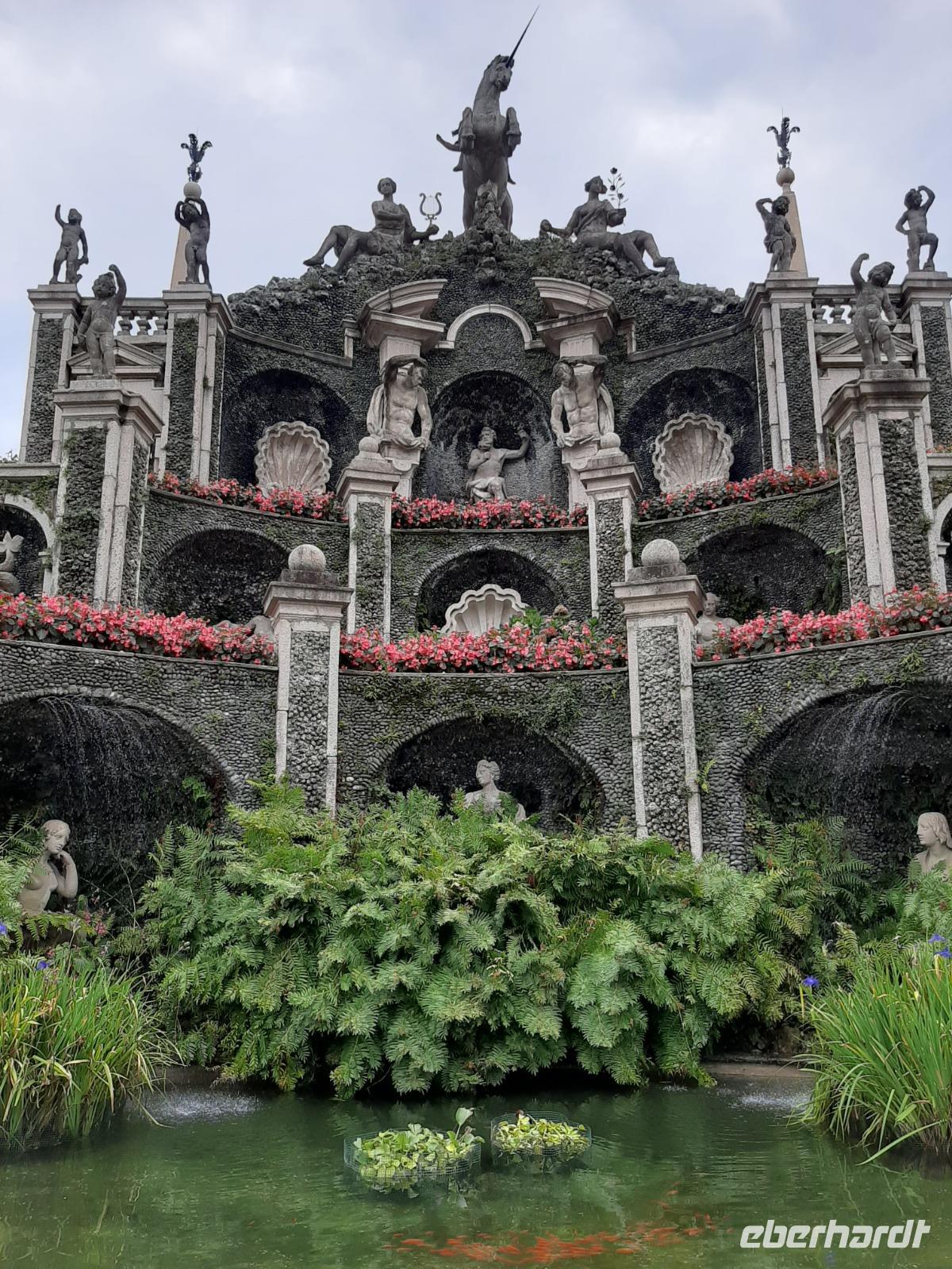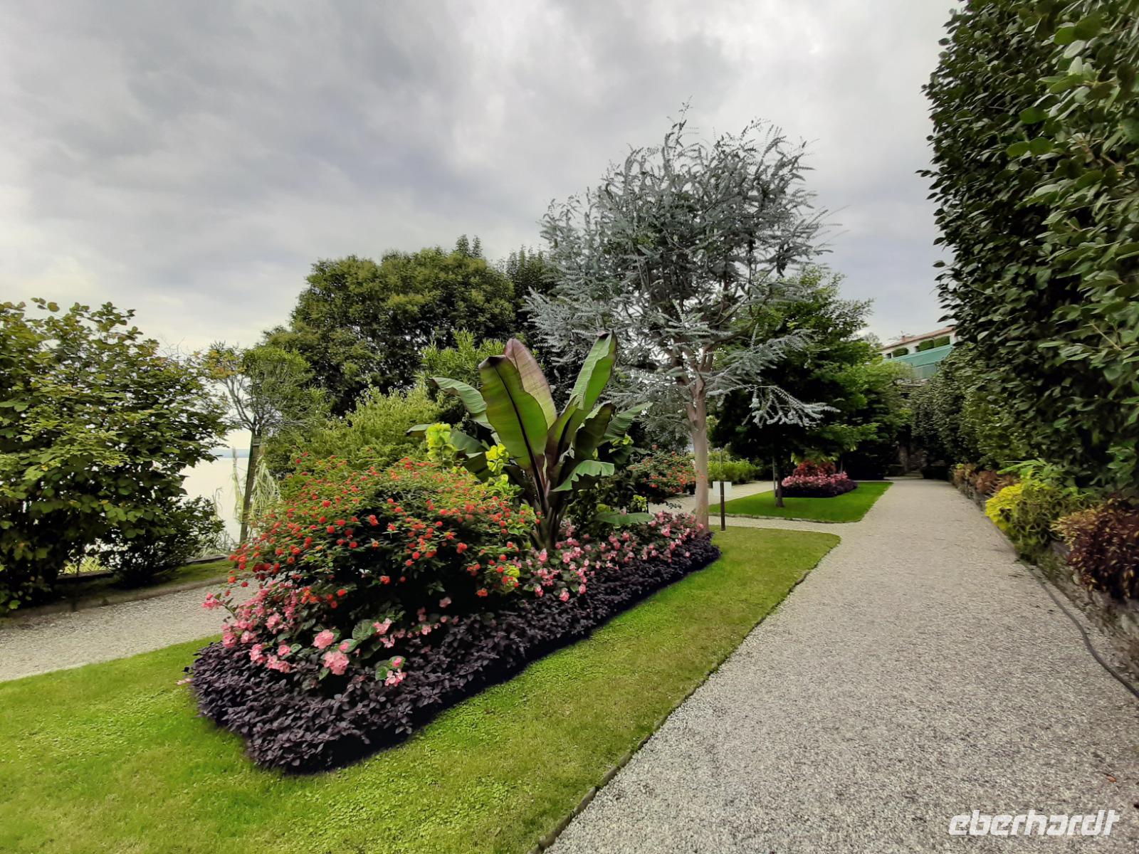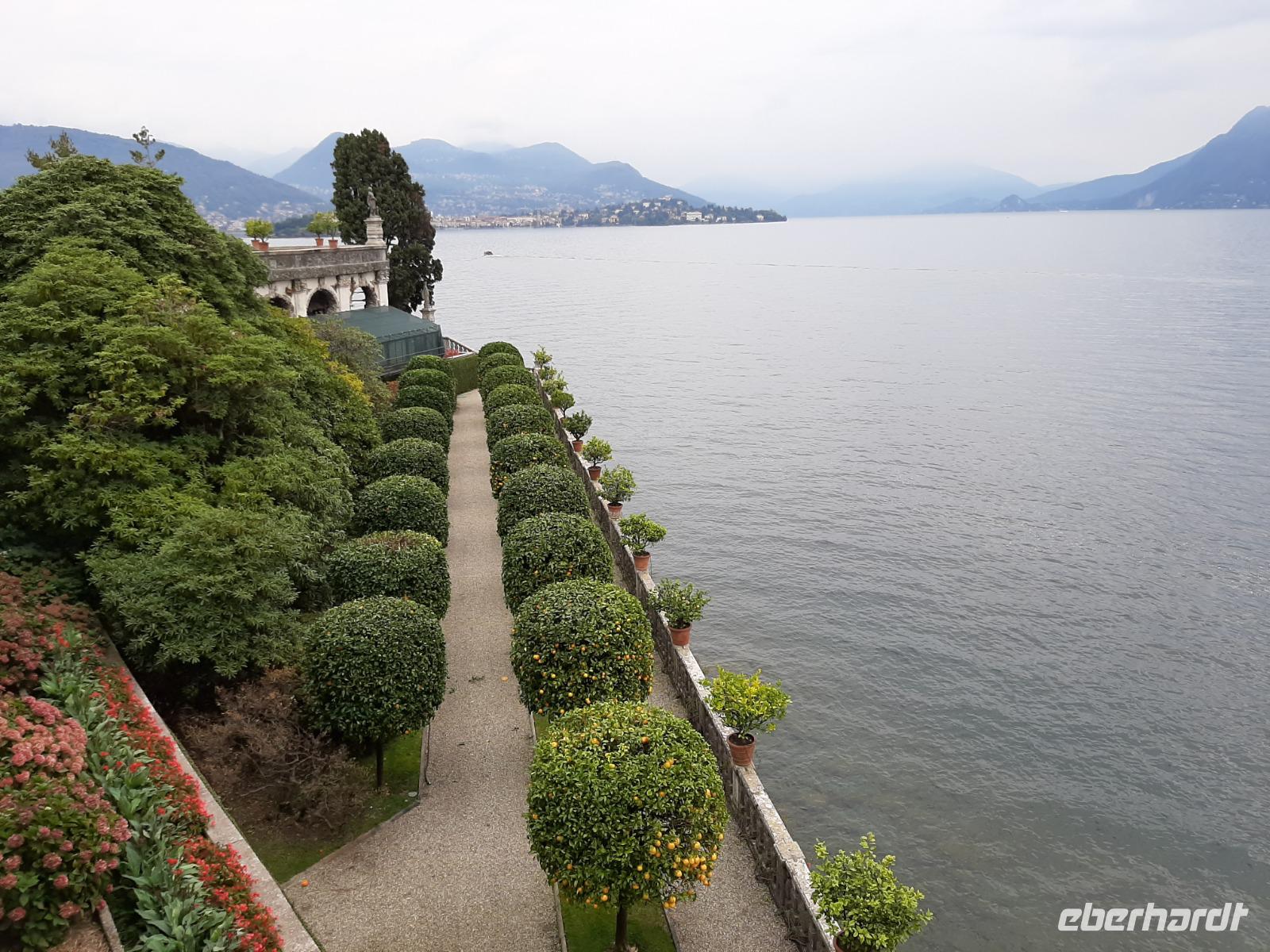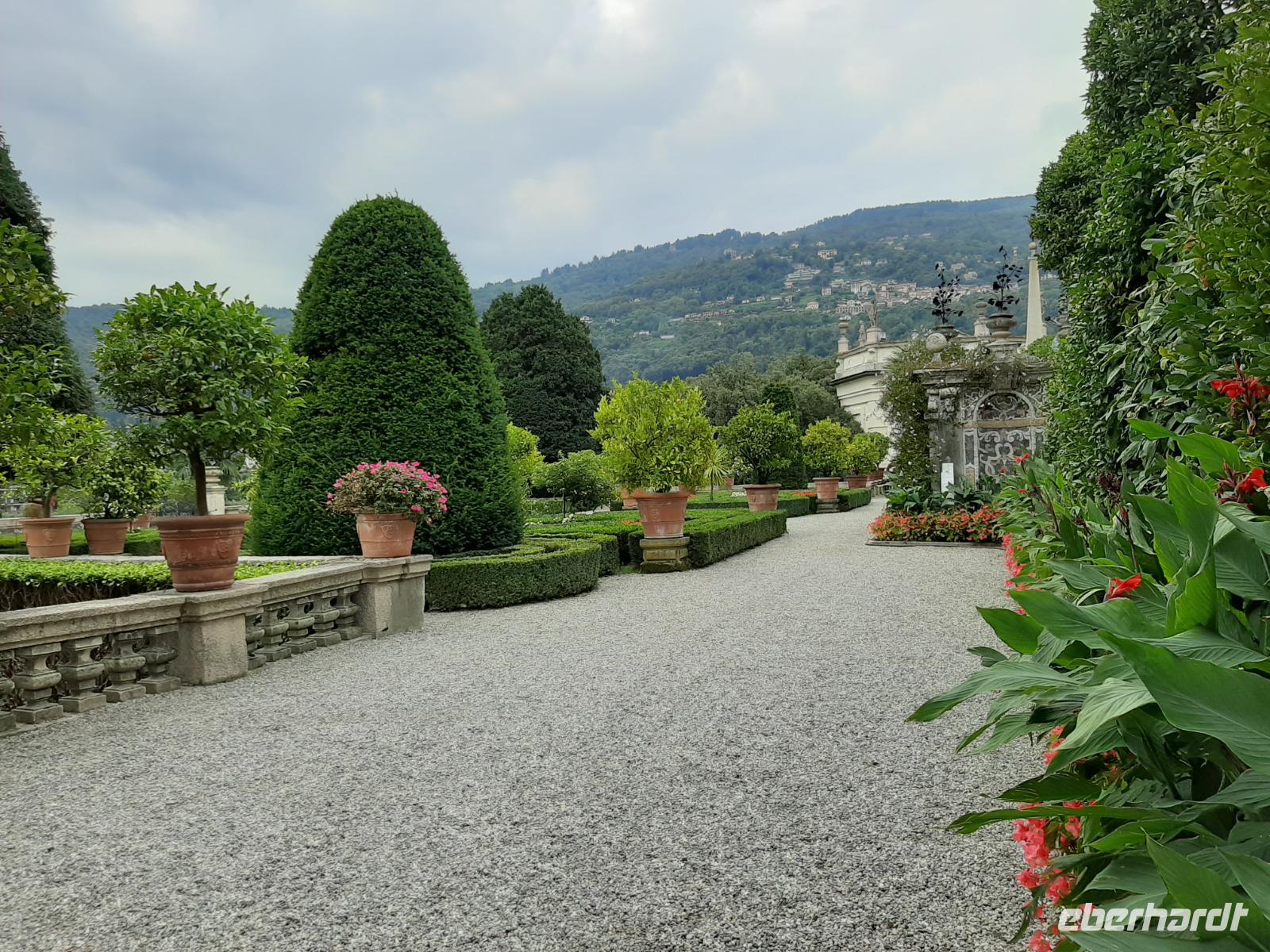 Heute unternahmen wir einen entspannten Ausflug auf die Borromäischen Inseln. Ihren Ruhm verdanken die Inseln im Westarm des Lago Maggiores der Familie Borromeo, die Mitte des 17. Jahrhunderts die Felseilande in ein barockes Gesamtkunstwerk verwandelte. Innerhalb von nur zehn Minuten setzten wir von Baveno aus mit einem Boot zur Isola Bella über. Diese Insel schmückt ein wunderbarer Barockgarten und in zehn großen Stufen steigen die Gartenterrassen vom Ufer pyramidenförmig an, oben bekrönt von der Statue eines Einhorns, dem Wappentier der Borromäer. Wir besichtigten auch den riesigen Palazzo, der außen mit großartigen Freitreppen und innen mit reich ausgestatteten Sälen, Spiegelgalerien und muschelgeschmückten Tuffsteingrotten prunkt. Die Mittagspause verbrachten wir auf der Fischerinsel, wo zahlreiche Restaurants mit tollen Fisch-Spezialitäten lockten. Anschließend ging es mit einem Privatboot zur größten, allerdings eher stillen Isola Madre (Mutterinsel). Auch hier steht ein barocker Palazzo Borromeo, dieser präsentiert unter anderem eine interessante Marionettensammlung. Hauptattraktion ist allerdings wiederum der Garten im englischen Stil mit Azaleen, Kamelien und Rhododendren, zwischen denen Fasane und Pfaue herumstolzieren.