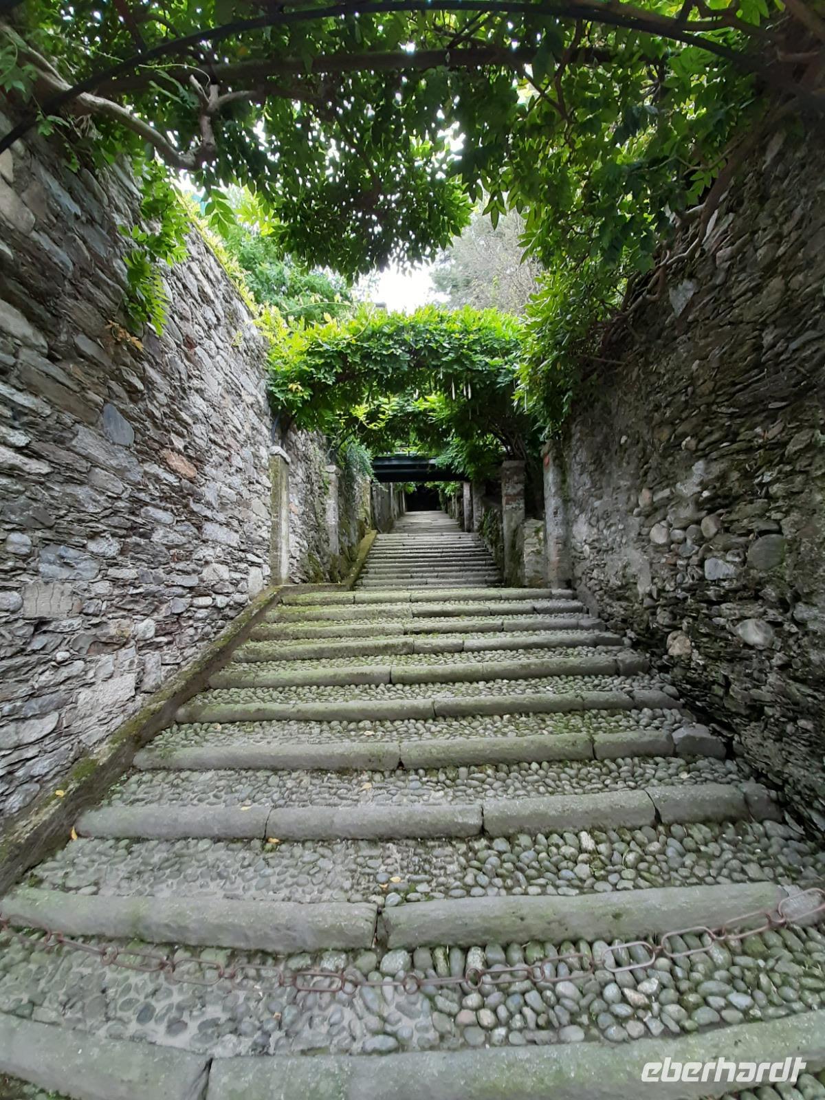 Am heutigen Vormittag stand ein erster Höhepunkt unserer Reise an, denn der Landschaftswechsel auf dieser kurzen Strecke vom Lago Maggiore bis hinein ins Verzascatal ist einfach unglaublich faszinierend! Von den lieblichen Ufern des Lago Maggiore steigt die Straße, zuerst zwischen herrlichen Weinbergen bis hinauf zum Verzasca-Stausee, welcher den höchsten Staudamm Europas aufweist (220 m). Von dort, dem See entlangfahrend, erreichten wir Vogorno. Gegenüber, hoch am Hang gelegen, sahen wir Corippo, das kleine typische Dorf, das infolge seiner architektonischen Einheit unter Denkmalschutz gestellt wurde. Auf der Strecke zwischen Corippo und Lavertezzo erfreute uns immer wieder der Anblick des Verzasca-Flusses, der hier übrigens seine ganze Schönheit entfaltet. Zwischen steilen, von der Erosionskraft polierten Steinen, die wunderbares Geäder aufweisen, strömt der Fluss in seiner unbeschreiblich grünen Farbe, die dem Tal den Namen gegeben hat (Verzasca, abgeleitet von „verde acqua" - grünes Wasser). Imposante, über 2.000 Meter hohe Berge umrahmen das ganze Tal. Typisch sind die Verzasca-Häuser aus grauem Stein mit weißen Umrandungen an den Fenstern und Steinplattendächern. Die vielen Kapellen entlang der Wege, zeugen vom tiefreligiösen Glauben der Talbewohner. Sehr bemerkenswert im Tal ist die doppelwölbige Brücke „Ponte dei Salti", wo wir einen Fotostopp einlegten. Schließlich erreichten wir den Ort Sonogno, am Ende des Tales gelegen. Den Nachmittag verbrachten wir in Locarno am Lago Maggiore. Diese Stadt erfreut sich an außergewöhnlich günstigen klimatischen Bedingungen, denn sie liegt in der Region mit den meisten Sonnenstunden der Schweiz. Die durchschnittliche Jahrestemperatur liegt hier bei stolzen 11 Grad Celsius, der nahe See dämpft zudem die Temperaturschwankungen und trägt zu einer erhöhten Luftfeuchtigkeit bei. Das Ausbleiben längerer Frostzeiten und der saure Boden sind weitere Faktoren, die hier zum kräftigen Gedeihen einer einmaligen, spontan wachsenden, dekorativen und variantenreichen Flora beitragen. Viele Gärten der Villen und Hotels aus dem 19. Jahrhundert sind erhalten geblieben, die dank reicher Leute angelegt werden konnten. Zunächst fuhren wir jedoch mit der Standseilbahn zur Wallfahrtskirche Madonna del Sasso. Diese schöne Kirche thront weithin sichtbar 150 Meter über der Stadt Locarno. Sie gilt als ein Wahrzeichen und hier soll einst einem Franziskanermönch die Mutter Gottes erschienen sein. Ursprünglich eine schlichte Kapelle aus dem Jahre 1487, entstand dann im 16. Jahrhundert die prächtige Kirche. Abschließend bummelten wir durch die Stadt und sahen unter anderem den Hauptplatz, den großartigen Piazza Grande. In den zahlreichen Café´s erlebten wir bei strahlendem Sonnenschein die Tessiner Lebensart und ließen es uns so richtig gut gehen!
