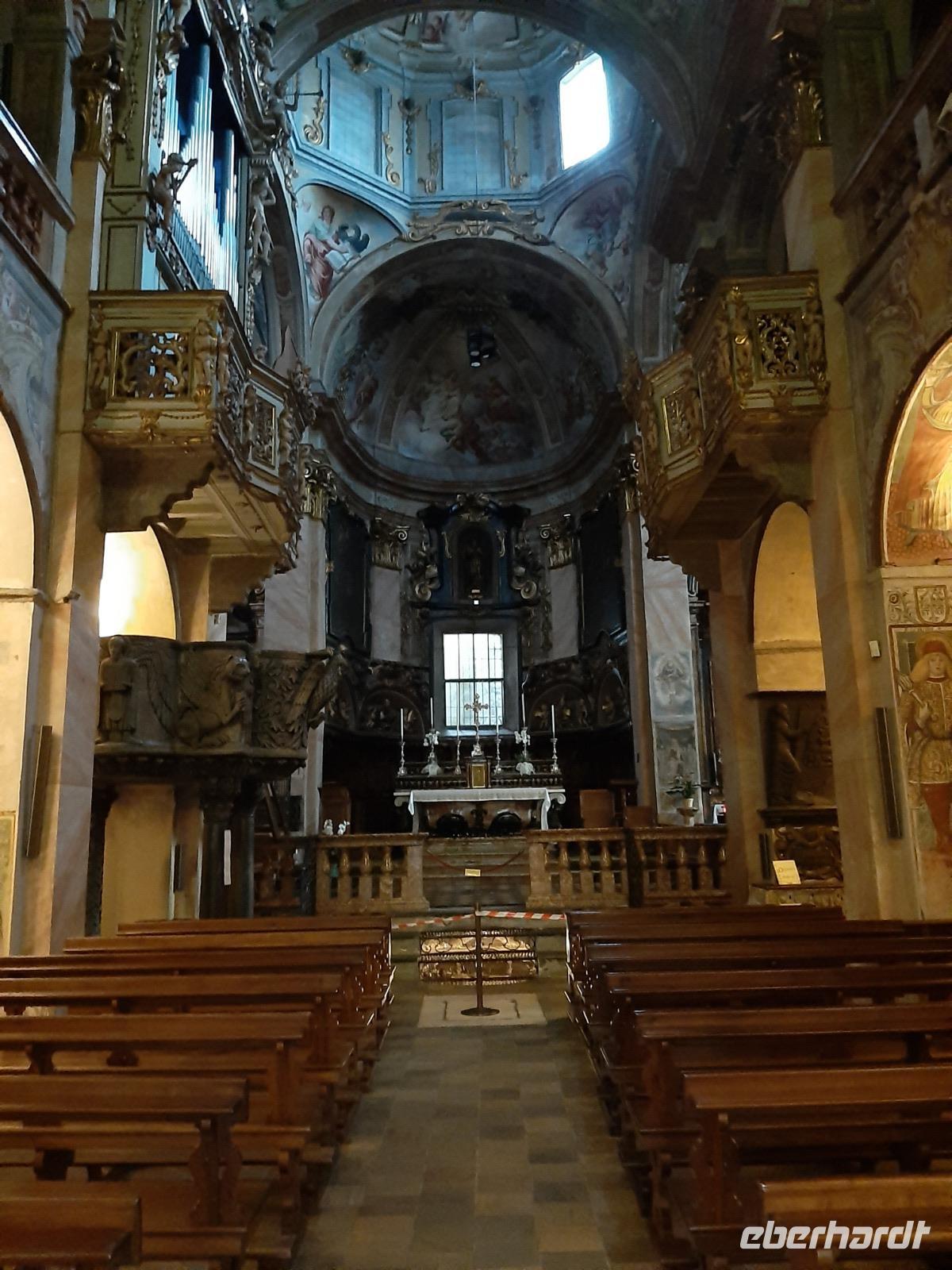 Am Morgen brachen wir nach Mailand auf. Die lombardische Metropole bezeichnet sich gern als „heimliche Hauptstadt Italiens". Unbestritten ist das in der Poebene gelegene Mailand das wirtschaftliche Zentrum des Landes. Am Monumentalfriedhof begrüßte uns unser sympathischer Stadtführer Giorgio und sogleich besichtigten wir gemeinsam diese Sehenswürdigkeit der Stadt. In der Friedhofsanlage aus dem späten 19. Jahrhundert konkurrierte das aufstrebende Mailänder Bürgertum mit möglichst aufwendigem Skulpturenschmuck selbst noch im Tod miteinander. Über dem Familiengrab der Panettone-Hersteller Motta etwa erhebt sich ein granitener Gugelhupf und über der Ruhestätte von Ferdinando Bocconi, Gründer der gleichnamigen Mailänder Wirtschaftsuniversität, ein 20 Meter hoher marmorner Baldachin. Tief beeindruckt fuhren wir von hier aus weiter durch den modernen Teil der Stadt mit seinen vielen Hochhäusern bis in die Nähe der Piazza della Scala, wo wir den Bus verließen und unsere Stadtführung zu Fuß fortsetzten. Wir besuchten das weltberühmte und doch erstaunlich nüchtern wirkende Teatro alla Scala. Im Auftrag der österreichischen Gouverneure erbaute Giuseppe Piermarini 1775-78 das klassizistische Theater, ihm musste die Kirche Santa Maria della Scala weichen. Auf der mit 780 Quadratmetern größten Bühne Europas erlebten unter anderem Giuseppe Verdis „Otello" sowie Puccinis „Madame Butterfly" ihre Uraufführung. Drei Jahre war die Oper während der aufwendigen Restaurierung der Räumlichkeiten sowie Modernisierung der technischen Ausstattung geschlossen, ehe sie im Dezember 2004 wiedereröffnet wurde. Die Stühle besitzen nun an der Rückseite Bildschirme, auf denen die Zuschauer die Opern in mehreren Sprachen verfolgen können. Die Piazza della Scala selbst ist mit einem Denkmal Leonardo da Vincis versehen und für uns dann der Ausgangspunkt für den Spaziergang durch die Galleria Vittorio Emanuele II. Die Stadtregierung wollte nach der Vertreibung der Österreicher 1859 ein „modernes" Zeichen setzen und nach nur zweijähriger Bauzeit wurde die imposante Glas-Stahl-Konstruktion eingeweiht. Die kreuzförmige Passage mit der 47 Meter hohen Glaskuppel avancierte rasch zum Salon der Mailänder bzw. zum politischen und gesellschaftlichen Treffpunkt. Zu guter Letzt standen wir dann auf dem Domplatz! Wie Zuckerbäckerwerk wirkt der Dom Santa Maria Nascente, auf dessen Vierungsturm in 108 Metern Höhe die vergoldete Marienstatue „La Madonnina" als Symbolfigur Mailands über das Wohl der Stadt wacht. Der Monumentalbau wurde Ende des 14. Jahrhunderts begonnen, im 16. Jahrhundert geweiht, allerdings erst Anfang des 19. Jahrhunderts auf Druck von Napoleon, der sich in der Kirche krönen ließ, mit der prächtigen, spitzgiebeligen Marmorfassade vollendet - einfach gigantisch! Wer wollte, konnte sich natürlich auch in das Innere des Domes anschauen. Später hatten wir im Anschluss an die Stadtführung noch etwas Freizeit, um uns das ein oder andere noch etwas genauer anzuschauen. Am Nachmittag trafen wir uns alle wieder und fuhren anschließend mit dem Bus über die Autobahn nach Baveno zurück.