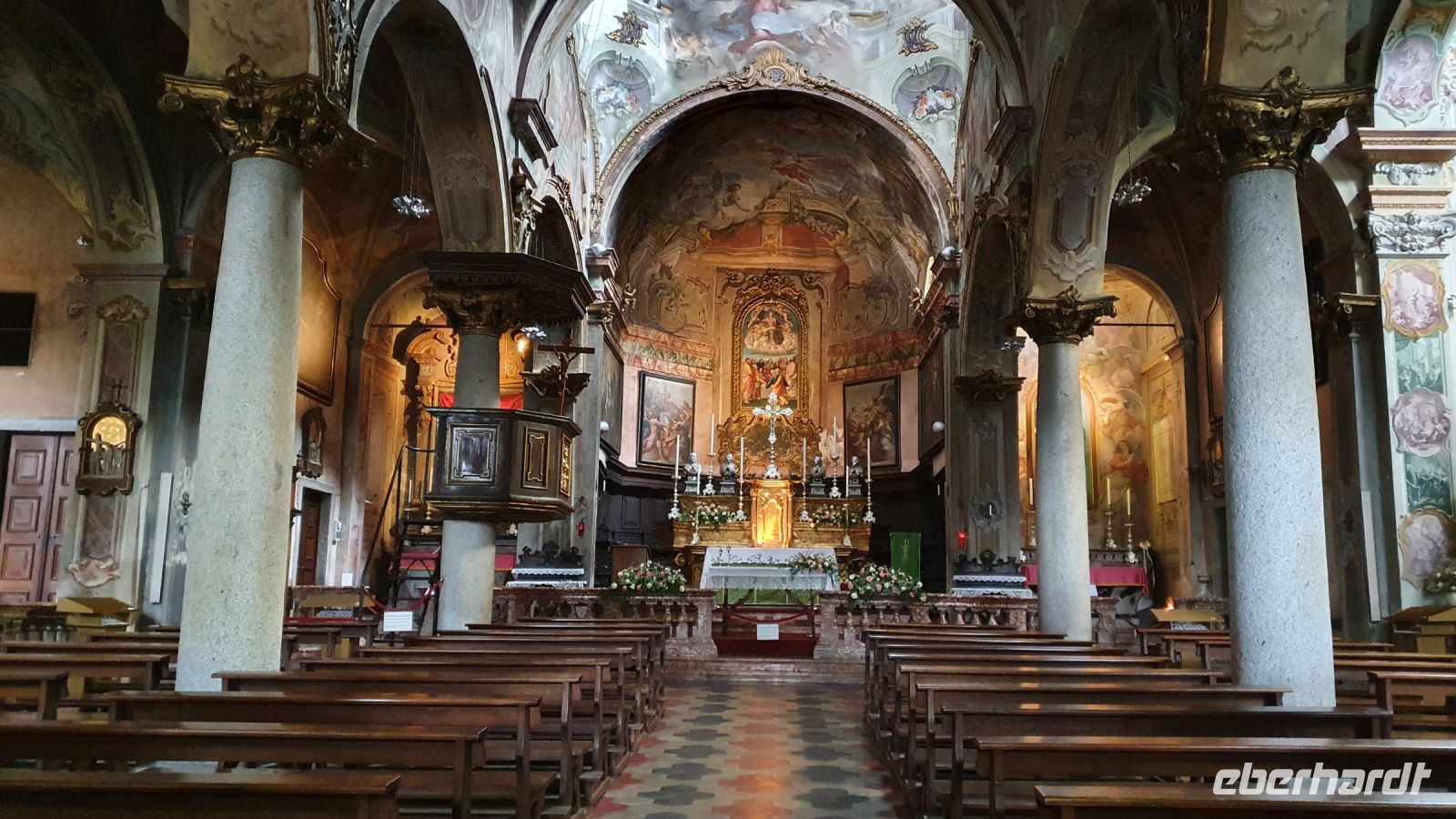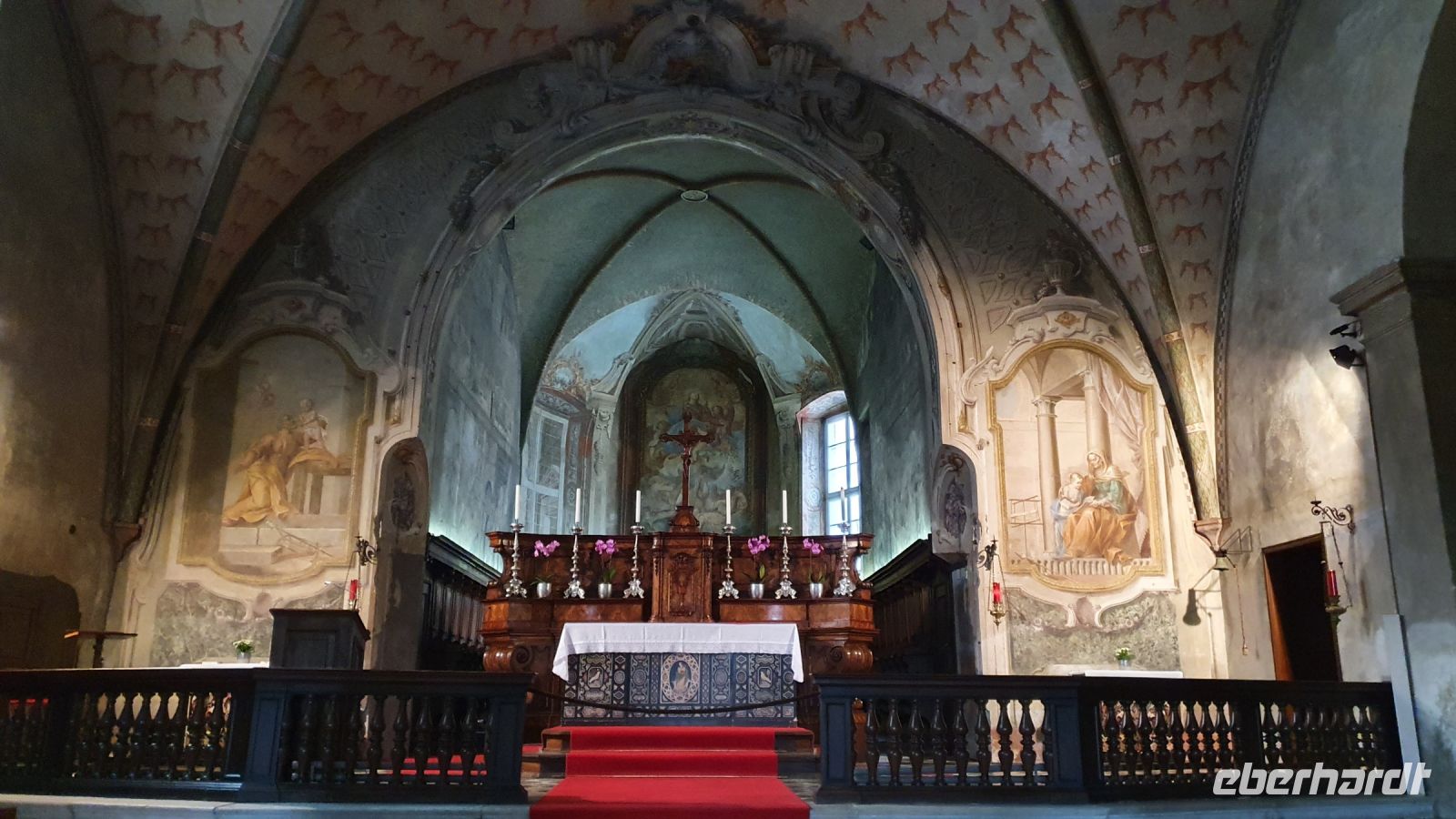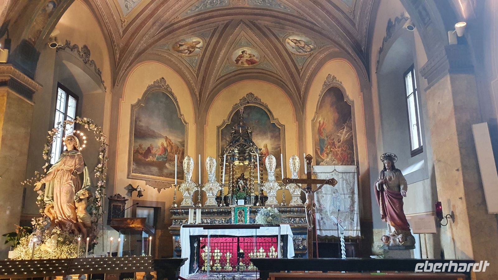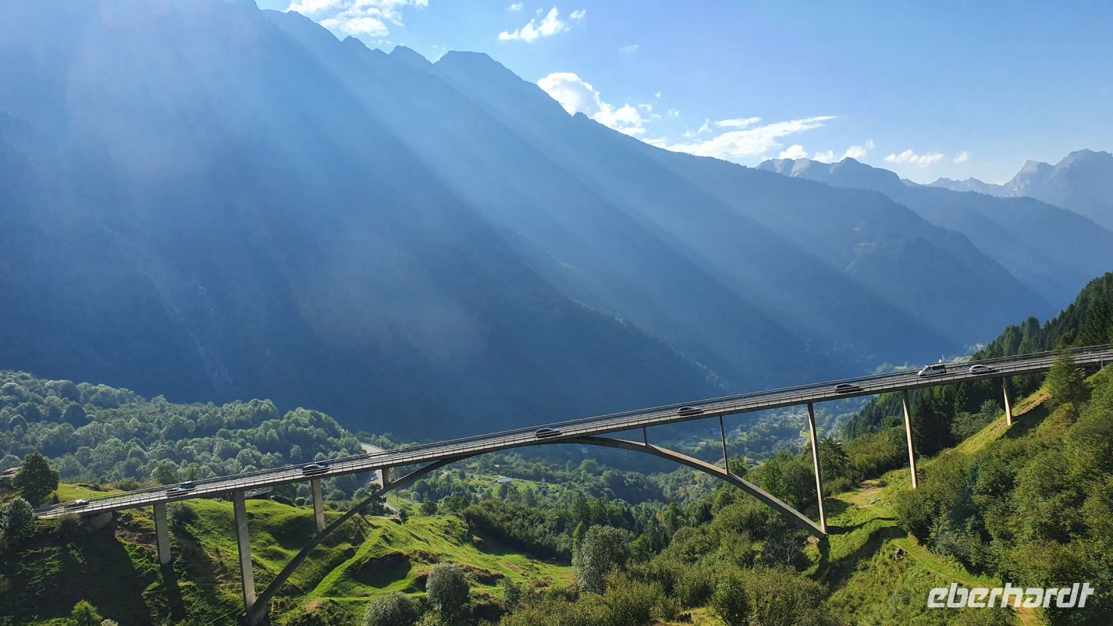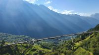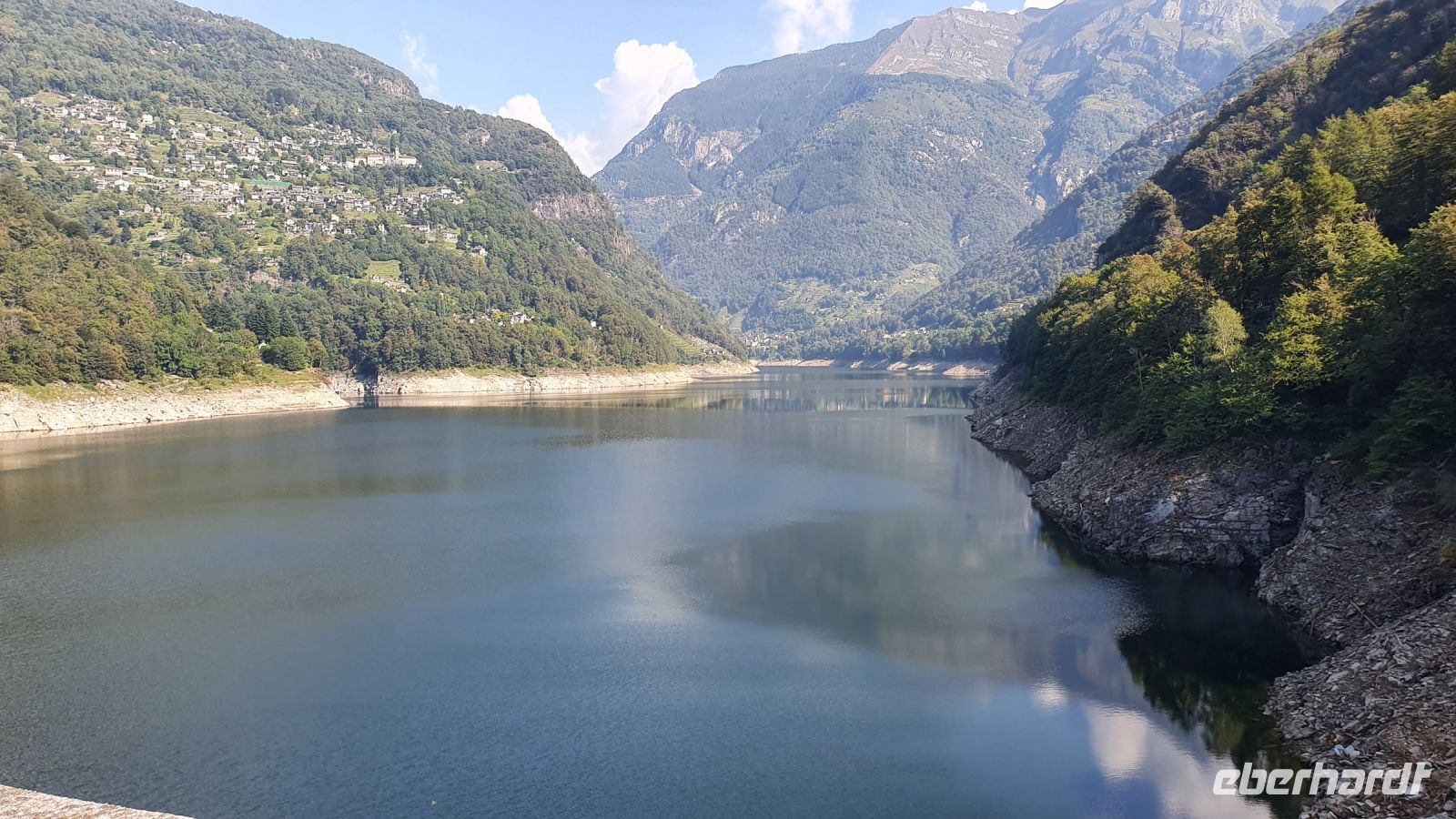 Nach einem guten Frühstück im Hotel starten wir gen Norden. Nun können wir bei Tageslicht die Fahrt am Ufer des Lago Maggiore genießen, schon mal einen Blick auf die Borromäischen Inseln werfen, die wir noch besuchen wollen, das futuristisch anmutende Veranstaltungszentrum in Intra bewundern und immer wieder den wunderschönen Blick auf den See genießen. Die Küstenstraße schlängelt sich hinauf und der aufsteigende Morgennebel verfängt sich an den Berghängen- ein toller Willkommensgruß hier am Lago Maggiore. In Brissago verlassen wir schließlich wieder Italien, fahren an Locarno vorbei und an der nördlichsten Spitze des Lago Maggiore biegen wir ab ins Valle Verzasca- ins Verzascatal. Das heißt : wir wollten, die Abfahrt für Busse war so schlecht einzusehen, dass wir sie kurzerhand übersehen hatten, die nächste Abfahrt erwies sich dann für unseren Bus schon nach kurzer Zeit als nicht fahrbar- Andreas hat ordentlich zu tun, wenden kann er nicht, also fahren wir rückwärts die Serpentinen wieder hinunter während ich versuche, die PkWs zu bewegen, uns vorbei zu lassen. Endlich auf der richtigen Straße angekommen werden wir schon bald von der Faszination dieses Tals überwältigt. Der Fluss Verzasca, der das Tal durchfließt wird am Talausgang hier gestaut- Lago di Vogorno heißt der Stausee und seine Staumauer zählt zu den höchsten in Europa. 220 Meter ist sie hoch und war Schauplatz eines James-Bond-Filmes. Den todesmutigen Sprung von der Staumauer kann man heute nachempfinden- mittels Bungee Jumping: 7,5 Sekunden freier Fall - nun, das wagten wir nicht sondern genossen den Spaziergang auf der Staumauer und den Blick über den Lago di Vogorno. Mit dem Bus ging es weiter, an Vogorno vorbei und der Kirche San Bartolomeo. Sie ist die älteste Kirche des Verzascatales, seit 1234 steht sie am Maultierpfad, der durch das Tal führt. Der Pfad ist heute eine Straße, nicht allzu breit, aber wir kommen mit dem Bus gut voran. Am Fluss geht es entlang und nun können wir auch sehen, warum das Tal Valle Verzasca heißt= verde aqua = grünes Wasser. Tatsächlich leuchtet das Wasser wie flüssige Jade. Ein magisches helles und dunkles Grün. Tief hat sich das Wasser in den Fels gegraben, die Berge, die das Tal umrahmen sind bis zu 2400 Meter hoch, an den steilen Hängen gibt es unzählige Wasserfälle- was für ein grandioses Schauspiel. In Lavertezzo halten wie wieder und bestaunen die Ponte di Salti. Die "Römerbrücke". Sie stammt aus dem Mittelalter und überspannt mit 2 Steinbögen den Fluss, 1868 wurde sie teilweise zerstört, ab 1960 aber wieder aufgebaut und so können wir heute auf ihr den Fluss überqueren und den Blick auf das klare, smaragdgrüne Wasser genießen. Viele zieht es hier her, sie baden im Fluss oder genießen ein Sonnenbad auf den Felsen. Das würden einige von uns jetzt auch gern tun, aber wir wollen ja noch ein wenig weiter. Also genießen wir die Fahrt, vorbei an unzähligen Kapellen entlang der Wege- ein Beleg für die tiefe Religiösität der Talbewohner. Immer wieder auch sehen wir die "Rustici", typische Verzascahäuser aus grauem Stein, viele mit weißen Umrahmungen um die Fenster und schweren Steinplatten-Dächern. Schon bald haben wir Sonogno erreicht. Ein wunderschönes Dorf am Ende des Tales. Hier bleiben wir für eine Mittagspause und genießen das einmalige Flair. Viel zu schnell vergeht die Zeit und wir müssen aufbrechen. Die Fahrt zurück durch das Tal genießen alle in vollen Zügen und am frühen Nachmittag erreichen wir die offiziell wärmste Stadt der Schweiz: Locarno. Immerhin stehen hier 2.300 Sonnenstunden pro Jahr zu Buche. Unser Bus parkt am Bahnhof und nach einem kleinen Irrweg erreichen wir die Talstation der Funicolare. Mit der Standseilbahn geht es hinauf bis nach Orselino- hoch oben über der Stadt haben wir einen traumhaften Blick auf Locarno und den Lago Maggiore. Unser eigentliches Ziel hier erreichen wir nach einem kleinen Abstieg: die Wallfahrtskirche Madonna dei Sasso. Sie geht auf eine Marienerscheinung zurück und wir haben Gelegenheit, uns in diesem religiösen Zentrum des Tessins- nicht nur für Pilger- umzusehen. Prachtvolle Ausstattungen der Kirchen wechseln sich mit der Schlichtheit der Kapellen ab, beeindruckend! Gemeinsam laufen wir dann zur Standseilbahn und fahren wieder hinunter in die Stadt. Locarno ist nicht nur wegen des Filmfestivals berühmt, die Piazza Grande, einer der größten Stadtplätze der Schweiz lockt mit seiner Weite und dem (sonst) so pulsierenden Leben. Corona sorgt für weniger Trubel, so genießen wir die Zeit hier und in den Cafes. Am späten Nachmittag geht es dann zurück nach Stresa und gerade rechtzeitig zum Abendessen sind wir wieder im Hotel. Ein Glas Wein als Begrüßungs-Drink wartet auf uns, dafür war es ja gestern leider zu spät. Für einen Wermutstropfen an diesem schönen Tag sorgte dann das Abendessen- leider. Das geht in Italien doch besser. Ab morgen sollte das dann auch so sein.