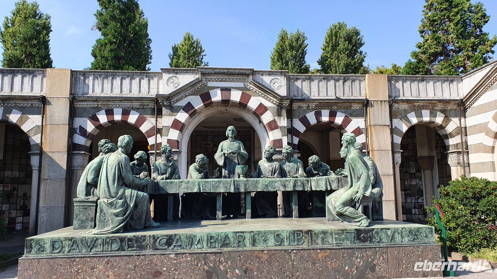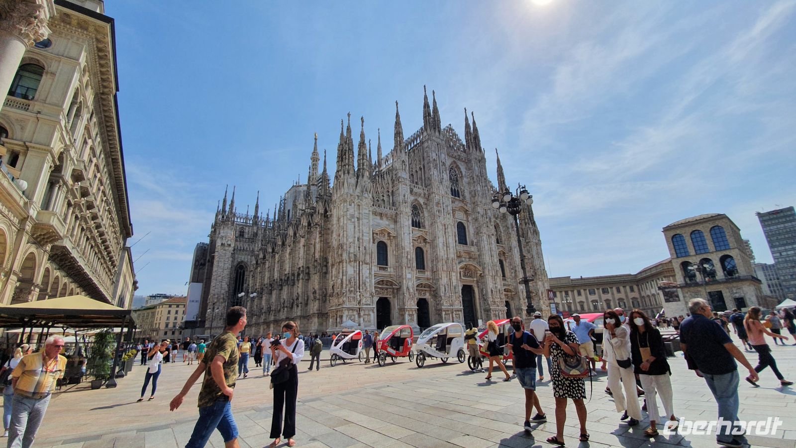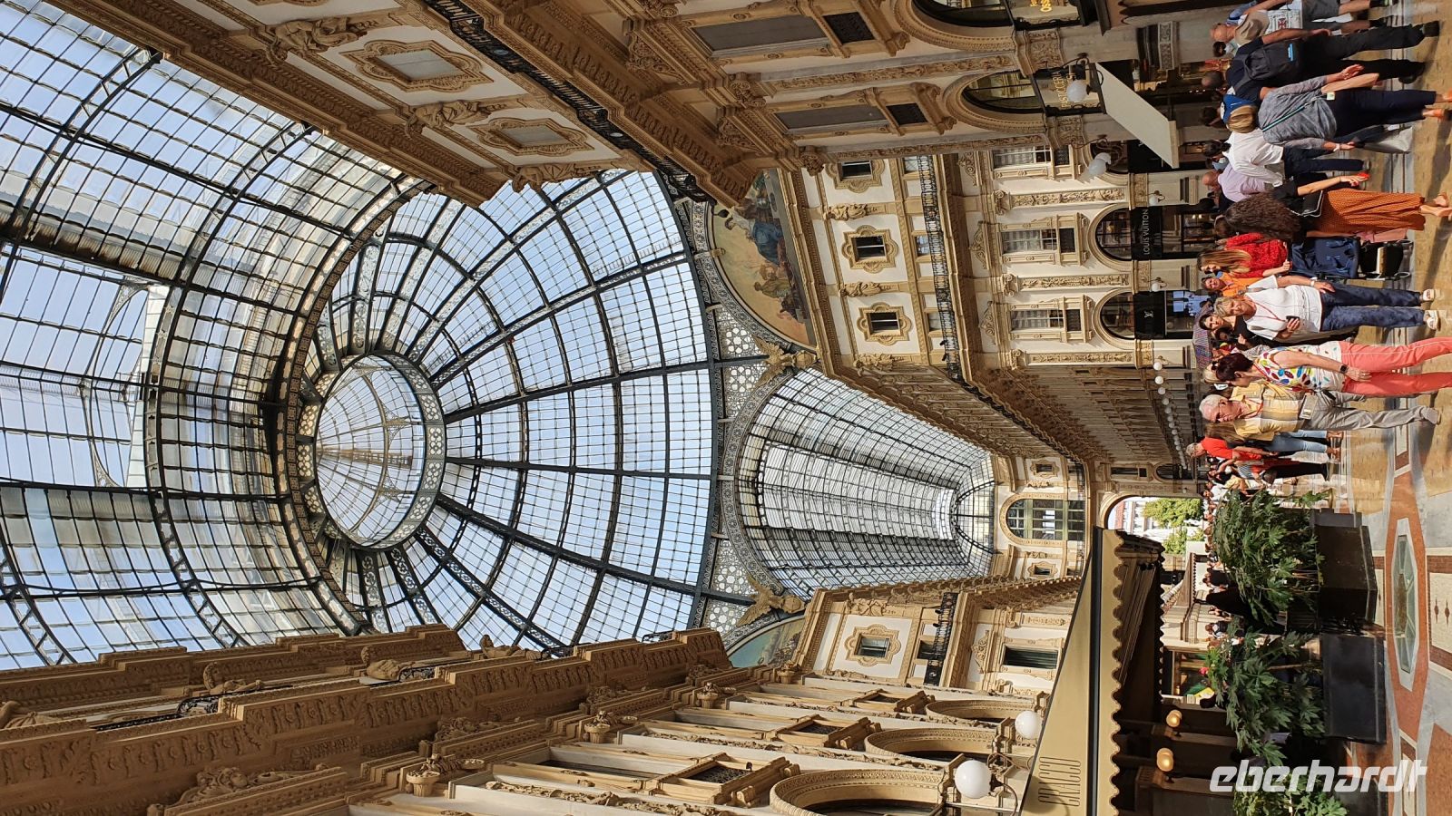 Heute heißt es zeitig aufbrechen: wir wollen nach Mailand. Die heimliche Hauptstadt Italiens erreichen wir nach ca. 2 Stunden Fahrtzeit. Am Monumentalfriedhof treffen wir Giorgio, unseren Guide. Er besorgt unsere Tickets und dann spazieren wir über und durch diese einmalige Anlage. Monumentale Grabanlagen zeugen vom Reichtum der mächtigen Adelsfamilien Sforza und Visconti, die die Stadt bis zum 16. Jahrhundert zum Zentrum der Renaissancekultur machten, die wirtschaftliche Blüte erreichte die Stadt nach 1861, als Italien eins wurde und bis heute ist Mailand eine dynamische Wirtschaftsmetropole. Wir schlendern durch die Hallen und Gänge, bewundern Grabmäler für Unternehmer, Dichter, Adel und Künstler. Monumentale Grabmäler wechseln sich mit künstlerischen, filigranen ab bis hin zu lichtdurchflutenden gläsernen Bauten. Giulio erzählt von den Besonderheiten, den Spuren des Krieges, die an Einschusslöchern immer noch sichtbar sind, den Bedeutungen der Darstellungen von Leben und Tod. Eines der Highlights natürlich das Grabmal der Familie Campari- an einem riesigen Tisch davor sitzen die Jünger um Jesus, der das Brot bricht- das Abendmahl. Wir haben noch ein wenig Zeit, das eine oder andere genauer anzusehen, dann geht es mit dem Bus zu einer kleinen Stadtrundfahrt weiter. Mailand als Industrie- Handels- und Finanzzentrum begrüßt uns mit den charakteristischen Hochhäusern und Wolkenkratzern, aber auch innovativen begrünten Wohngebäuden. In der Nähe der Mailänder Scala, an der Piazza della Scala steigen wir aus und spazieren gemeinsam zum Da Vinci- Brunnen, zur Galleria und natürlich zum Dom. Die gläsernen Kuppeldächer der Galleria Vittorio Emanuele II. beeindrucken, genauso wie die unglaublich kurze Bauzeit von nur 2 Jahren. Benannt ist die Galleria nach dem König Italiens, der das Land 1861 einte. Heute residieren hier berühmte und elegante Einkaufsmarken wie Prada, Gucci ... Und dann stehen wir vor dem Mailänder Dom. Was für ein Anblick! Mit Giulio spazieren wir um den Dom herum und entdecken die ältesten Bauten des Doms, erfahren von der Geschichte und den vielen Um- und Ausbauten. Mehr als 500 Jahre wurde an ihm gebaut, bis er seine heutige Ausgestaltung bekam. 135 Türmchen und unzählige Statuen schmücken das gotische Bauwerk, aber nur eines kann bis ins 14. Jahrhundert zurückverfolgt werden, alle anderen entstanden viel später. Ganz oben thront die Madonnina, die ihre Hände schützend über die Stadt hält. Und schon ruft das nächste Highlight: Wir können die berühmte Mailänder Scala besuchen. Giulio hatte geschickt unser Programm so gebaut, dass wir zur Proben-Pause kommen und daher auch das Haus von innen besichtigen können. Natürlich müssen wir unsere 3-G-Nachweise vorzeigen, Fieber wird gemessen und dann dürfen wir hinein. Wir schlendern durch die Ausstellungsräume und natürlich auch hinauf. Jeder möchte einmal in einer Loge sitzen und den Blick auf die weltberühmte Bühne werfen. WOW! Nun aber verabschieden wir uns von Giulio, danken ihm herzlich für seiner erfrischende Art, uns seine Stadt zu zeigen. Die Freizeit nutzen viele, um auf die Aussichtspromenade des Doms hinaufzufahren. Andere schlendern durch die Galleria, entdecken auch den Stier im Bodenmosaik. Eine kleine Vertiefung im Boden zeigt an, wo man mit dem Absatz hineindrückt um sich dann 3 Mal um die eigene Achse zu drehen. Das soll Glück bringen. Für andere ist auch ein kleiner Spaziergang durch die Stadt bis zur Börse ´drin- wie jeder wollte. Die Skulptur dort mit dem gestreckten Mittelfinger ist umstritten, darf aber stehenbleiben. So verging der Nachmittag in Mailand und es war Zeit für die Rückfahrt. Das Abendessen im Hotel heute entschädigte für das gestrige- es war super und so lassen wir einen schönen Tag langsam ausklingen.