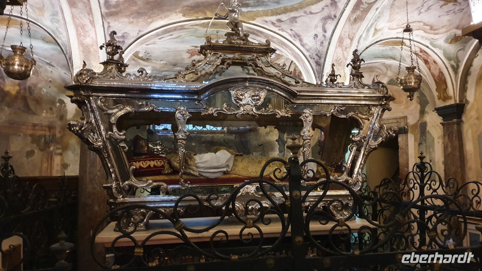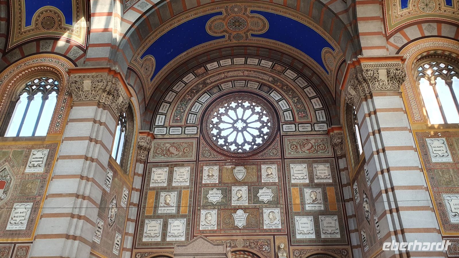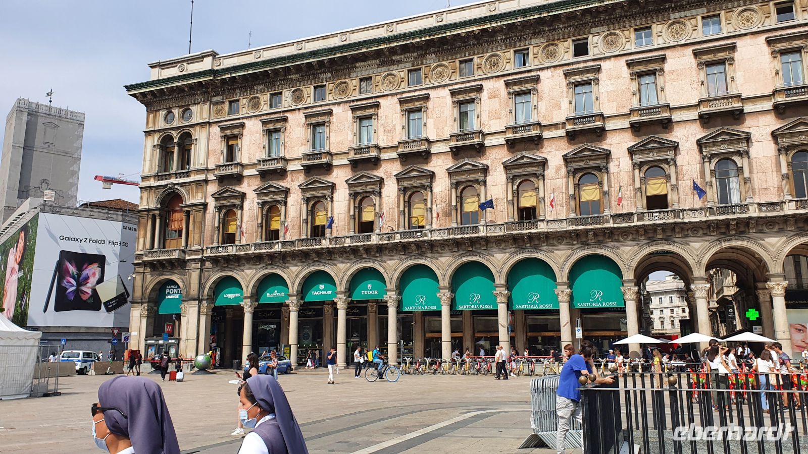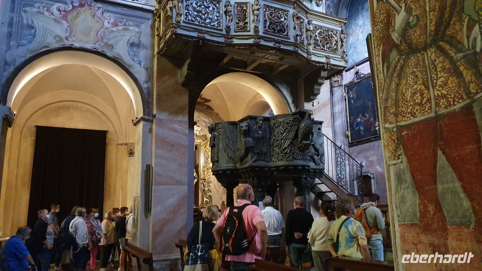 Heute heißt es zeitig aufbrechen: wir wollen nach Mailand. Die heimliche Hauptstadt Italiens erreichen wir nach ca. 2 Stunden Fahrtzeit. Am Monumentalfriedhof treffen wir Giorgio, unseren Guide. Er besorgt unsere Tickets und dann spazieren wir über und durch diese einmalige Anlage. Monumentale Grabanlagen zeugen vom Reichtum der mächtigen Adelsfamilien Sforza und Visconti, die die Stadt bis zum 16. Jahrhundert zum Zentrum der Renaissancekultur machten, die wirtschaftliche Blüte erreichte die Stadt nach 1861, als Italien eins wurde und bis heute ist Mailand eine dynamische Wirtschaftsmetropole. Wir schlendern durch die Hallen und Gänge, bewundern Grabmäler für Unternehmer, Dichter, Adel und Künstler. Monumentale Grabmäler wechseln sich mit künstlerischen, filigranen ab bis hin zu lichtdurchflutenden gläsernen Bauten. Giulio erzählt von den Besonderheiten, den Spuren des Krieges, die an Einschusslöchern immer noch sichtbar sind, den Bedeutungen der Darstellungen von Leben und Tod. Eines der Highlights natürlich das Grabmal der Familie Campari- an einem riesigen Tisch davor sitzen die Jünger um Jesus, der das Brot bricht- das Abendmahl. Wir haben noch ein wenig Zeit, das eine oder andere genauer anzusehen, dann geht es mit dem Bus zu einer kleinen Stadtrundfahrt weiter. Mailand als Industrie- Handels- und Finanzzentrum begrüßt uns mit den charakteristischen Hochhäusern und Wolkenkratzern, aber auch innovativen begrünten Wohngebäuden. In der Nähe der Mailänder Scala, an der Piazza della Scala steigen wir aus und spazieren gemeinsam zum Da Vinci- Brunnen, zur Galleria und natürlich zum Dom. Die gläsernen Kuppeldächer der Galleria Vittorio Emanuele II. beeindrucken, genauso wie die unglaublich kurze Bauzeit von nur 2 Jahren. Benannt ist die Galleria nach dem König Italiens, der das Land 1861 einte. Heute residieren hier berühmte und elegante Einkaufsmarken wie Prada, Gucci ... Und dann stehen wir vor dem Mailänder Dom. Was für ein Anblick! Mit Giulio spazieren wir um den Dom herum und entdecken die ältesten Bauten des Doms, erfahren von der Geschichte und den vielen Um- und Ausbauten. Mehr als 500 Jahre wurde an ihm gebaut, bis er seine heutige Ausgestaltung bekam. 135 Türmchen und unzählige Statuen schmücken das gotische Bauwerk, aber nur eines kann bis ins 14. Jahrhundert zurückverfolgt werden, alle anderen entstanden viel später. Ganz oben thront die Madonnina, die ihre Hände schützend über die Stadt hält. Und schon ruft das nächste Highlight: Wir können die berühmte Mailänder Scala besuchen. Giulio hatte geschickt unser Programm so gebaut, dass wir zur Proben-Pause kommen und daher auch das Haus von innen besichtigen können. Natürlich müssen wir unsere 3-G-Nachweise vorzeigen, Fieber wird gemessen und dann dürfen wir hinein. Wir schlendern durch die Ausstellungsräume und natürlich auch hinauf. Jeder möchte einmal in einer Loge sitzen und den Blick auf die weltberühmte Bühne werfen. WOW! Nun aber verabschieden wir uns von Giulio, danken ihm herzlich für seiner erfrischende Art, uns seine Stadt zu zeigen. Die Freizeit nutzen viele, um auf die Aussichtspromenade des Doms hinaufzufahren. Andere schlendern durch die Galleria, entdecken auch den Stier im Bodenmosaik. Eine kleine Vertiefung im Boden zeigt an, wo man mit dem Absatz hineindrückt um sich dann 3 Mal um die eigene Achse zu drehen. Das soll Glück bringen. Für andere ist auch ein kleiner Spaziergang durch die Stadt bis zur Börse ´drin- wie jeder wollte. Die Skulptur dort mit dem gestreckten Mittelfinger ist umstritten, darf aber stehenbleiben. So verging der Nachmittag in Mailand und es war Zeit für die Rückfahrt. Das Abendessen im Hotel heute entschädigte für das gestrige- es war super und so lassen wir einen schönen Tag langsam ausklingen.