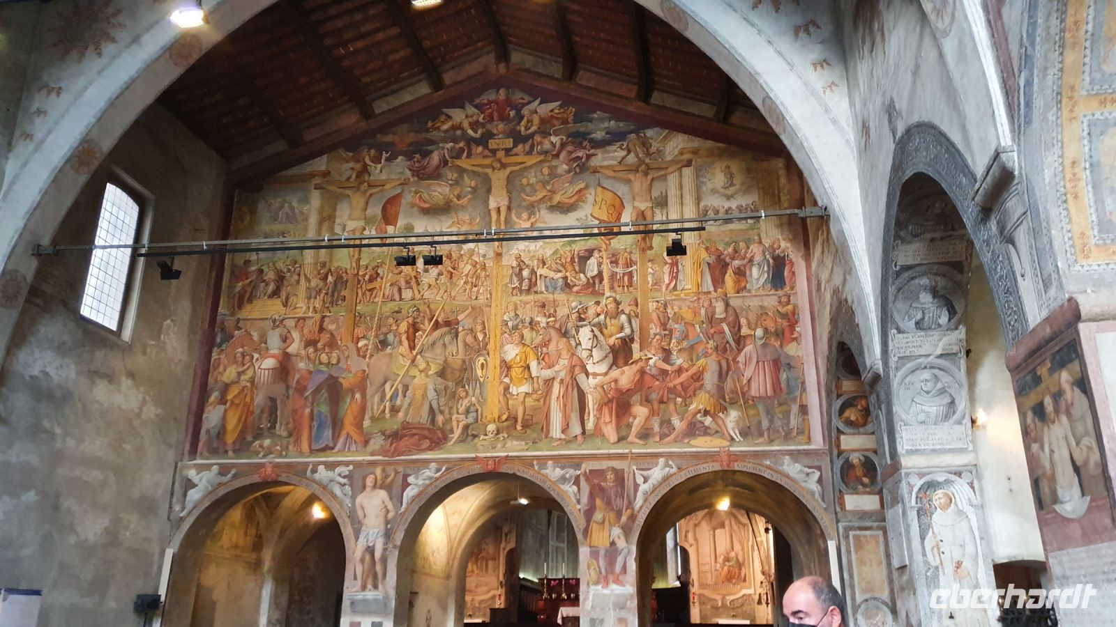 Heute starten wir wieder etwas eher, umrunden quasi das Südende des Lago Maggiore, überqueren bei Gaggiolo die Grenze zur Schweiz und erreichen bei Capolago das Südende des Luganer Sees. Erstes Hihlight im Bus dann die Überquerung des Seedamms vom Melide. Aufgrund seiner Form heißt dieser See in Italien auch "Ceresio" = der Gehörnte. Aber mehr als 50% liegen im schweizerischen Tessin, insgesamt erstreckt sich dieser Bergsee in den Luganer Voralpen über ca. 50 Quadratkilometer. In einer Bucht am Nordufer erreichen wir unser erstes Ziel für heute: Lugano. Einst ein einfaches Bauern- und Fischerdorf entwickelte es sich zu einem Handels- und Marktstädtchen und ist heute der drittgrößte Finanzplatz der Schweiz und die größte Stadt des Tessin. An der Piazza A. Manzoni steigen wir aus und spazieren gemeinsam am Ufer des Sees entlang zur Kirche Santa Maria degli Agnioli, um ihre weltberühmten Fresken anzuschauen. Sie stammen u.a. von Bernardino Luini, einem Schüler da Vincis und gelten als schönste und berühmteste der Schweiz. Die kurze Freizeit nutzen viele zu einem Bummel zur Piazza della Riforma, hier laufen alle Gassen der Altstadt zusammen, Cafes laden ein und es ist ein beschaulicher Platz. Er lenkt auch von den vielen Bausünden ringsherum ab, die auf Spekulationen zurückzuführen sind...Aber wie sagte schon der berühmte Architekt Mario Botta: "Die Landschaft- der See mit dem Monte Brè und dem Salvatore-hat eine Kraft, die auch die Spekulation nicht hat zerstören können". Unsere Fahrt führt uns dann am Ufer des Sees entlang nach Osten, Tunnel und Straßen werden teilweise bedrohlich eng, aber wohlbehalten erreichen wir Tremezzo am Ufer des Comer Sees. Ein Boot wartet bereits auf uns und wir fahren ein Stück unserem Busfahrer entgegen, der den Bus erst ziemlich weit entfernt parken konnte. Gemeinsam geht es dann nach Bellagio. Ein Spaziergang bringt uns zum Aussichtspunkt Punta Spartivento. Hier trennt sich der Comer See in seine zwei Arme: Lecco und Como. Die Sonne verwöhnt uns und wir genießen die Zeit hier. Ein Bummel durch die herrlichen Gassen und an der Promenade entlang - wie schön es hier ist. Das denken Viele und so haben etliche Stars und Sternchen dieses Fleckchen für sich entdeckt, wir haben aber keinen von ihnen getroffen ;-). Unser Boot brigt uns dann wieder zurück nach Tremezzo und via Com fahren wir zurück zu unserem Hotel. Wieder sind die Straßen arg eng und Gegenverkehr eine ordentliche Herausforderung. Also bekommt Andreas heute ein besonders großes Dankeschön und dann treffen wir uns zum Abendessen im Hotel wieder.