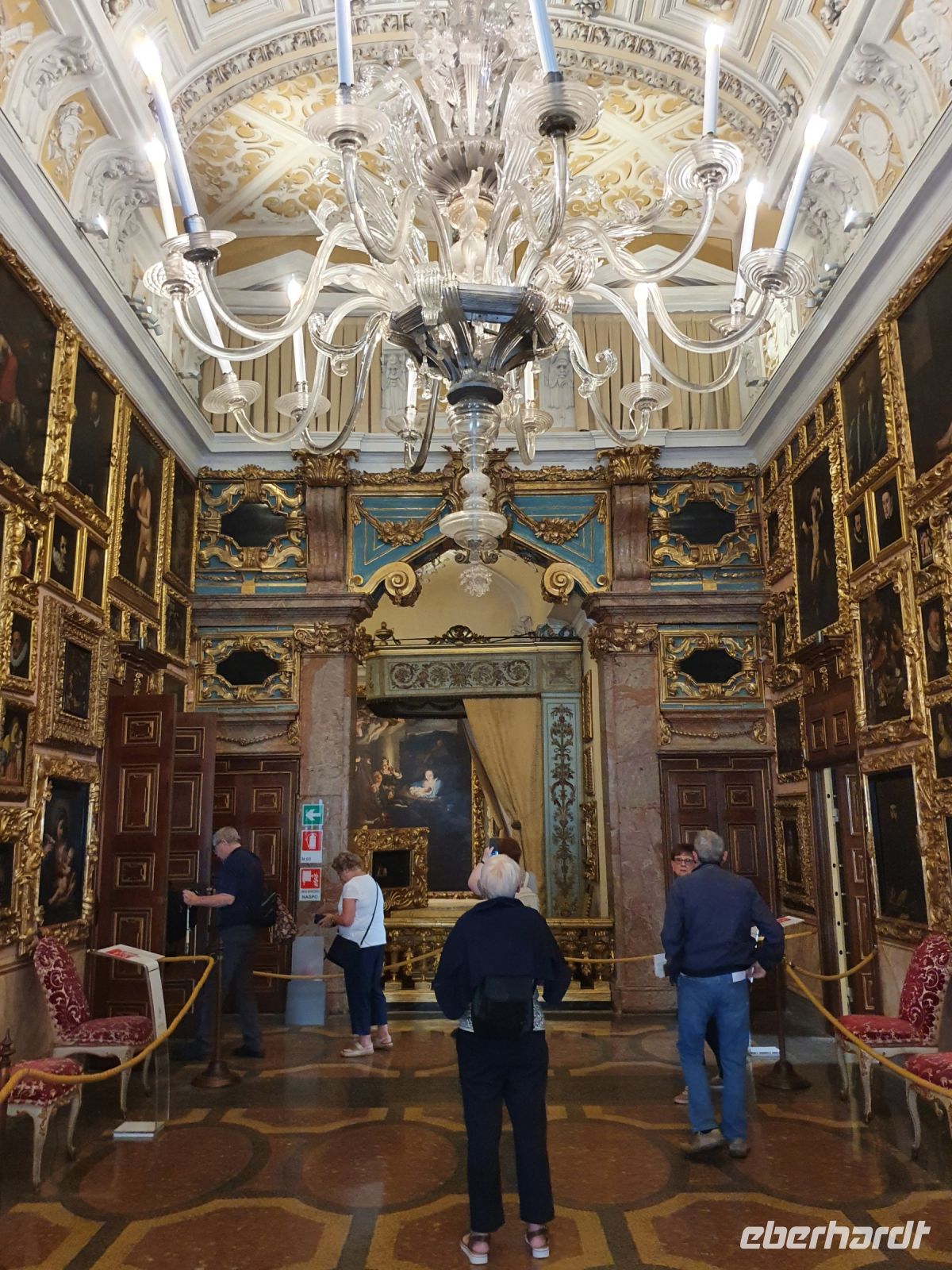 Wir lassen uns, wie jeden Morgen, das Frühstück gut schmecken und machen uns anschließend – dank der nunmehr perfekten Wetterlage – gut gelaunt auf den Weg zur Schiffsanlegestelle. Dort werden wir bereits erwartet, besteigen das Boot und bevor wir uns versehen, legen wir schon wieder an, auf der ersten Insel, der Isola Bella, die einem Blütenschiff gleich, im Wasser liegt. Im Palast werden wir herzlich von Frederica, die uns mit herzerfrischenden Worten durch den Palast führen wird, begrüßt. Von ihr erfahren wir sehr viel Wissenswertes über die Familie Borromeo, die ursprünglich aus der Toskana stammend, sich hier am Lago Maggiore niedergelassen und „schrittweise eingekauft“ hat. Der berühmteste Spross der Familie ist zweifelsohne der in Arona geborenen Carlo Borromeo, der es später bis zum Mailänder Kardinal gebracht hat.