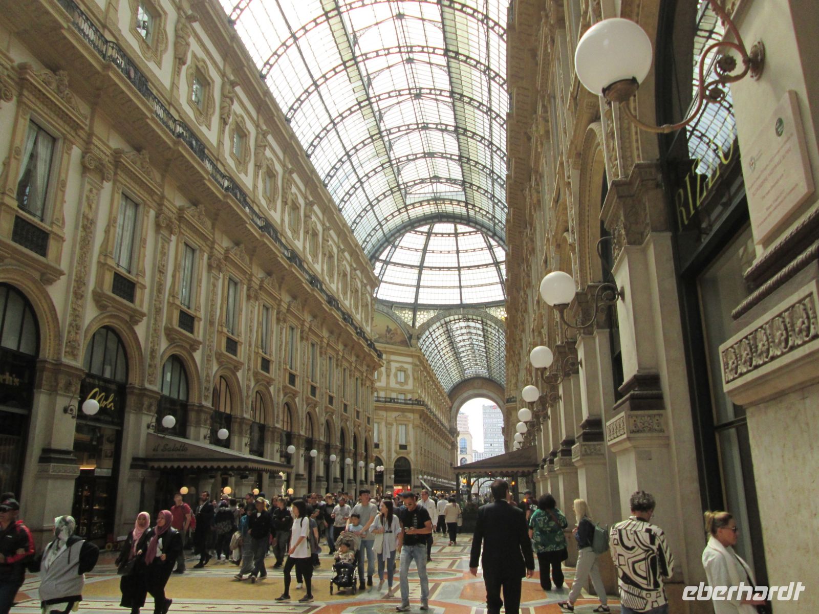Den Domplatz verbindet die Galerie Vittorio Emanuele II. mit dem Opernplatz. In dieser Einkaufspassage, im 19. Jahrhundert ganz aus Glas und Eisen in Kreuzform errichtet, haben sich heute namhafte Modegeschäfte ihren Platz gesichert, aber auch Restaurants, Bücherläden und die Bar "Camparino". Einen Campari in der Stadt seiner Entdeckung trinken-fast ein Muss.
