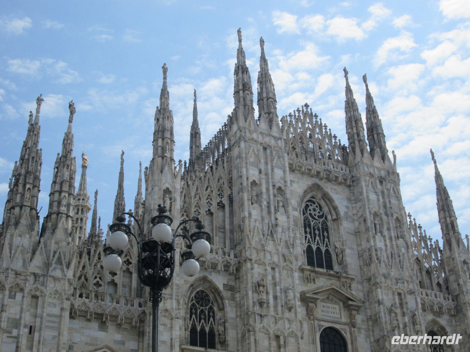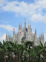 Mailand ist Regionshauptstadt der Lombardei, Messe- und Modestadt sowie Wirtschaftsmetropole. Aber auch kulturell bietet die Stadt einiges. Das sind z.B. das Schloss der Familie Sforza, Leonardo da Vincis "Abendmahl" im Refektorium der Dominikanerkirche Santa Maria delle Grazie, der Monumentalfriedhof mit den Gräbern illustrer Norditaliener, wie Campari, Manzoni oder Feltrinelli und der stattliche Dom im Herzen der Stadt mit seiner außergewöhnlichen Fassade. Der weiß /rosa farbene Candoglia-Marmor, der übrigens nahe des Toce Flusses abgebaut wurde, den wir während unserer Reise immer wieder überquert haben, verziert das gesamte Gotteshaus, auf dem über 3000 Statuen zudem das Dach verzieren. Auf der höchsten Spitze thront die 4,16 m hohe "Madonnina", die kleine Madonna, ganz aus Gold.