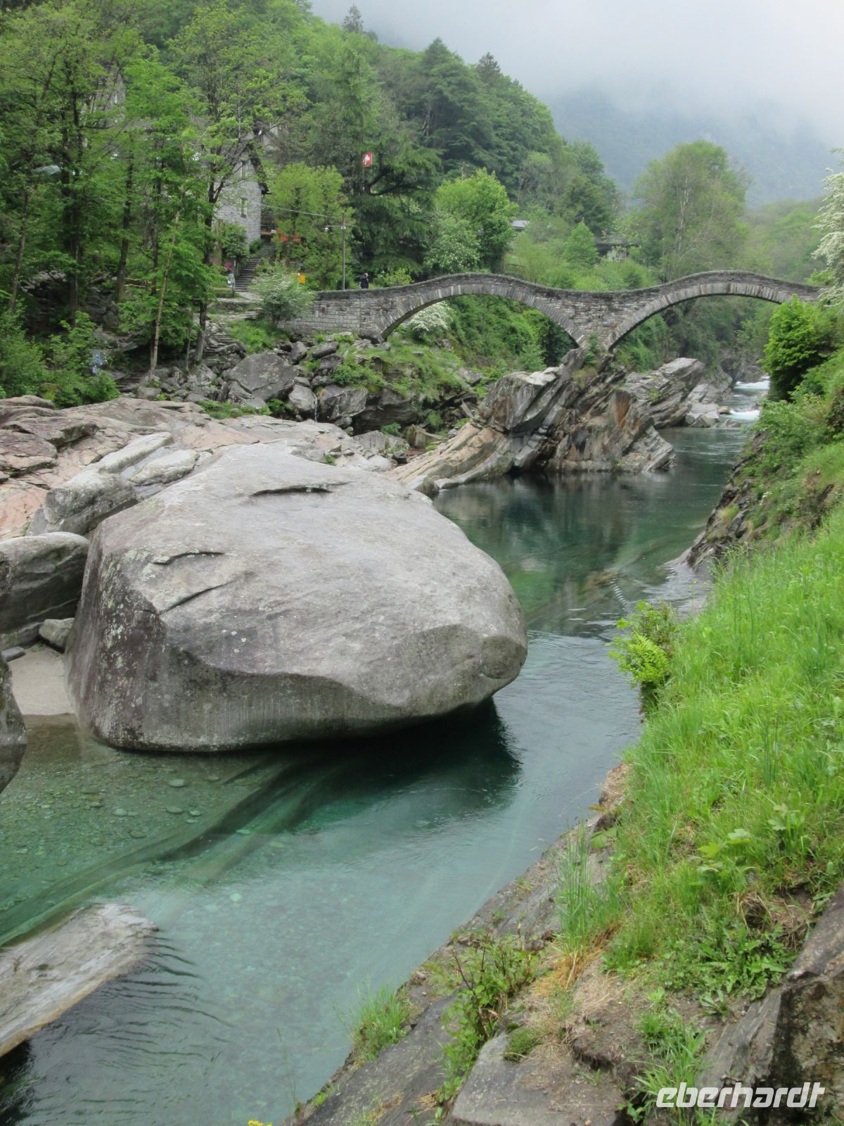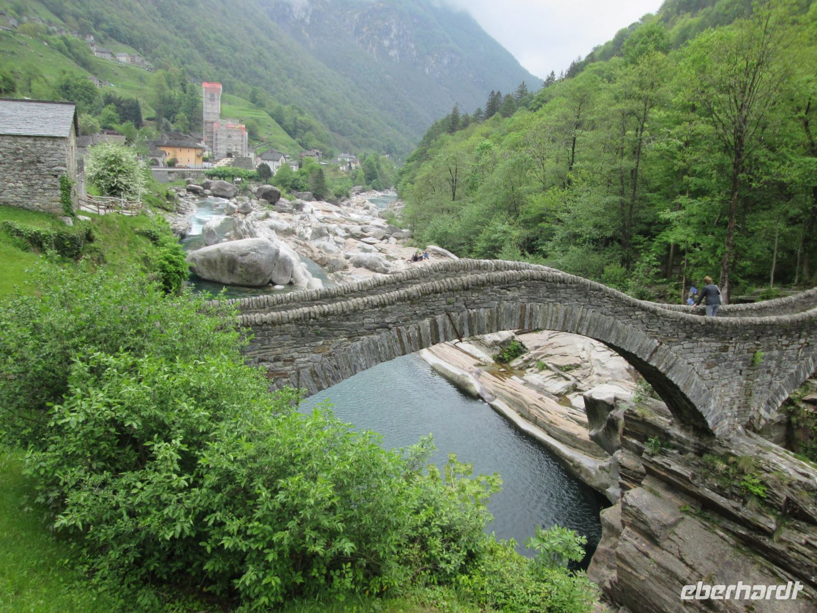 Das Tal hat eine landschaftliche und kulturelle Schönheit, die uns faszinierte. Da sind die bis zu 2000 m hohen Berge links und rechts, da ist das kristallklare, smaragdgrüne Wasser der Verzasca, die kleinen mit einer langen Geschichte versehenen Dörfer, deren Verwaisung droht, wäre da nicht der Tourismus, da gibt es Mühlen und Brücken. Die bekannteste Brücke befindet sich nahe des Dorfes Lavertezzo. Sie besteht aus 2 Bögen, von denen man wiederum ins kühle Nass der Verzsaca in den heißen Sommermonaten springen darf.