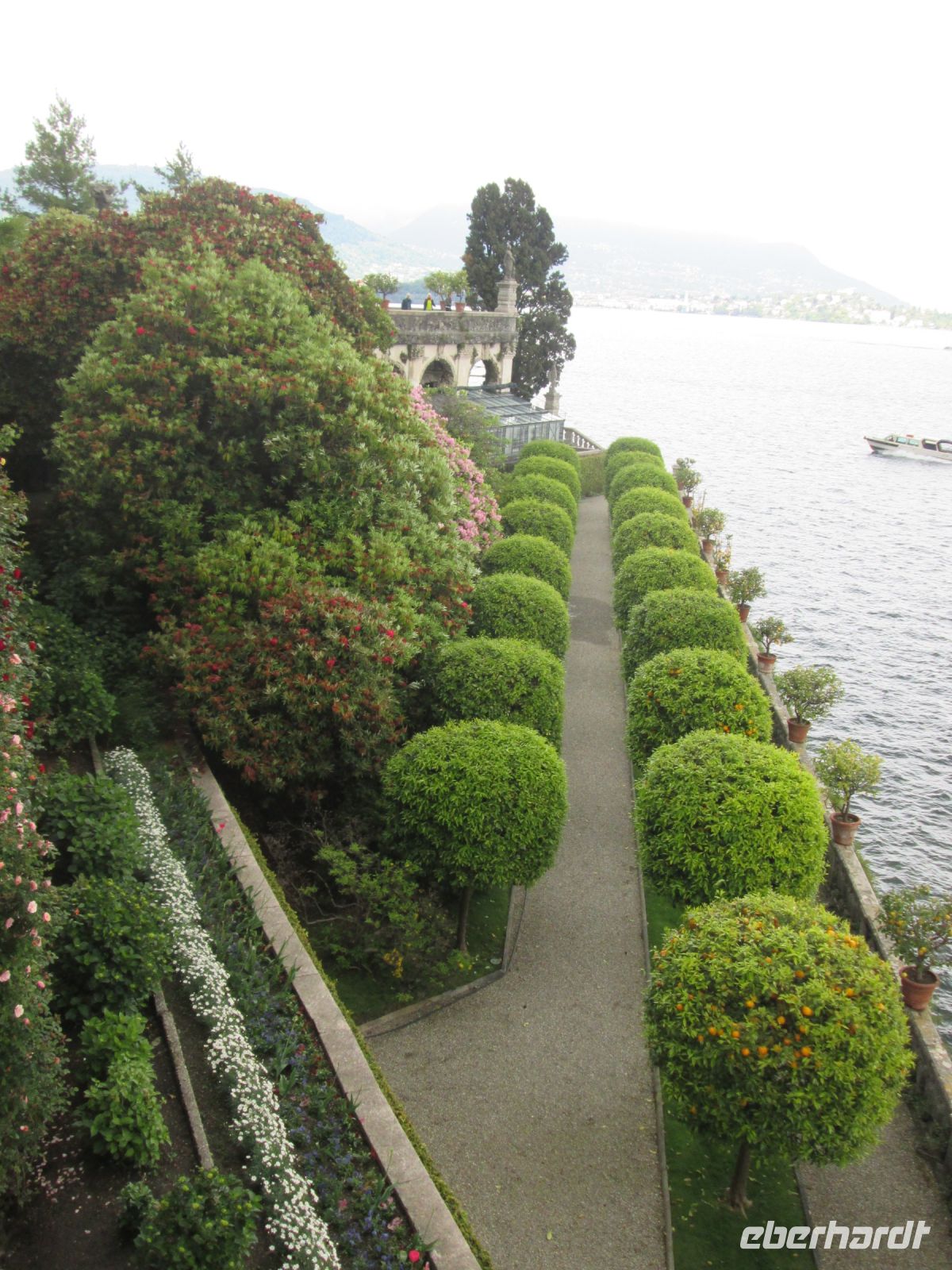 Dem Schloss schließt sich direkt der Garten an. Er ist ein herrliches Beispiel italienischen Barocks und besteht aus 10 Terrassen. An höchster Stelle thront das Wappentier der Familie Borromeo, das Einhorn.