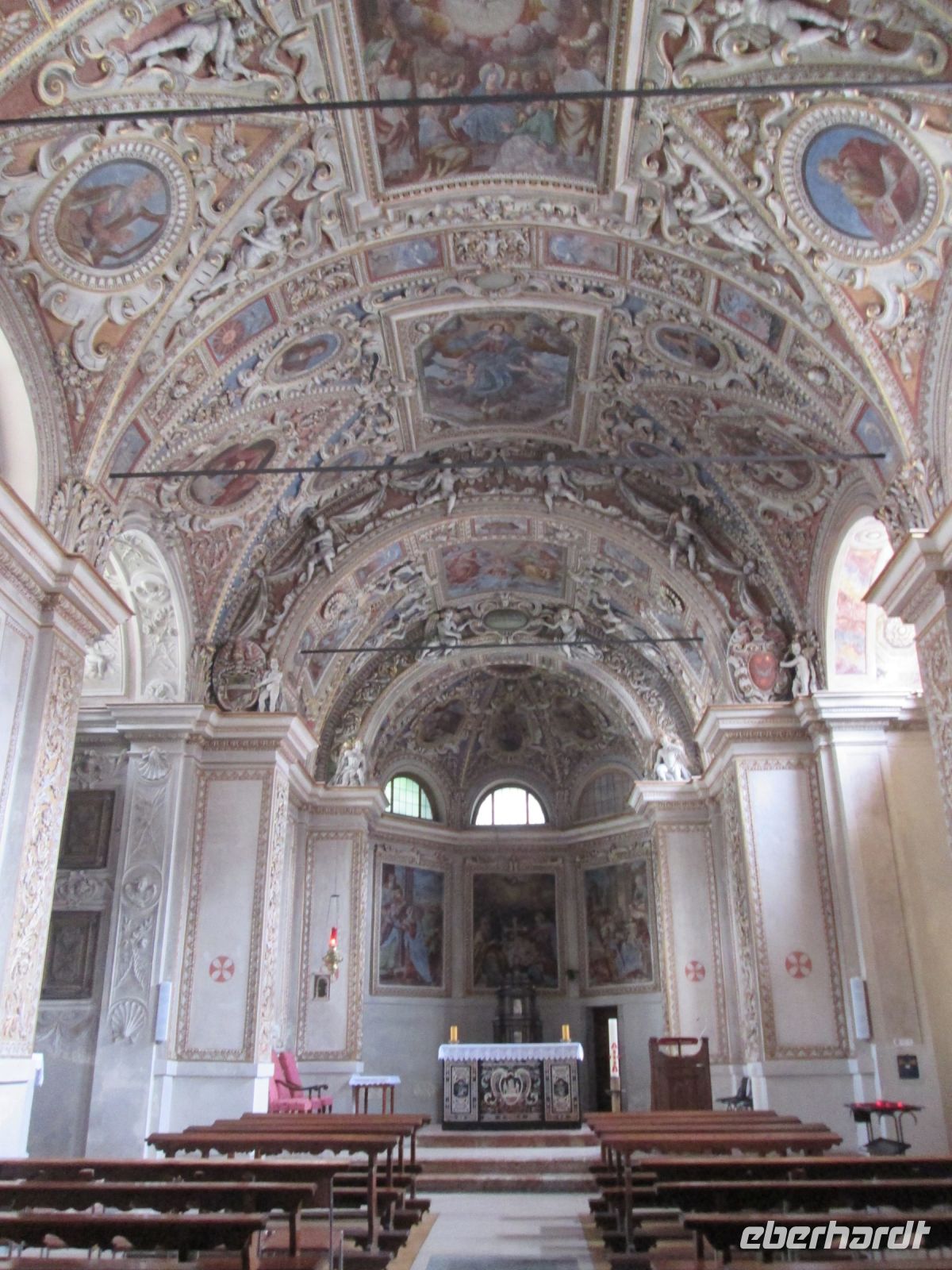 Bei unserem Aufenthalt in Bellagio erkundeten einige den Garten der Villa Melzi, andere spazierten gemütlich durch den Ort und besuchten die Pfarrkirche St. Jakob. Ende des 12. Jahrhunderts wurde diese erbaut, dann, wie so viele andere, auch in den kommenden Jahrhunderten verändert. Auch Einkaufsmöglichkeiten gab es, befanden wir uns doch relativ nahe der Seidenstadt Como.